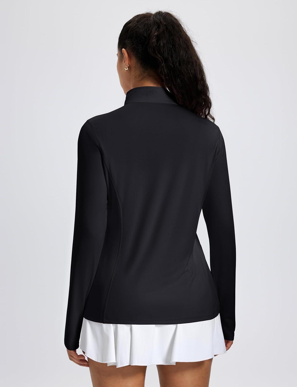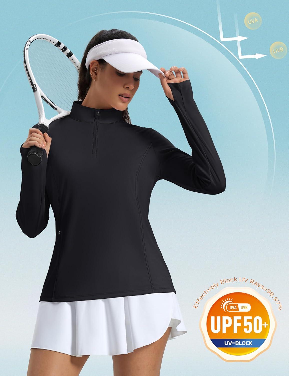 MAGCOMSEN 1/4 Zip Pullover Women Long Sleeve Quarter Zip UPF 50+ Sun Shirts with Pocket Quick Dry Athletic Workout Tops(Black)