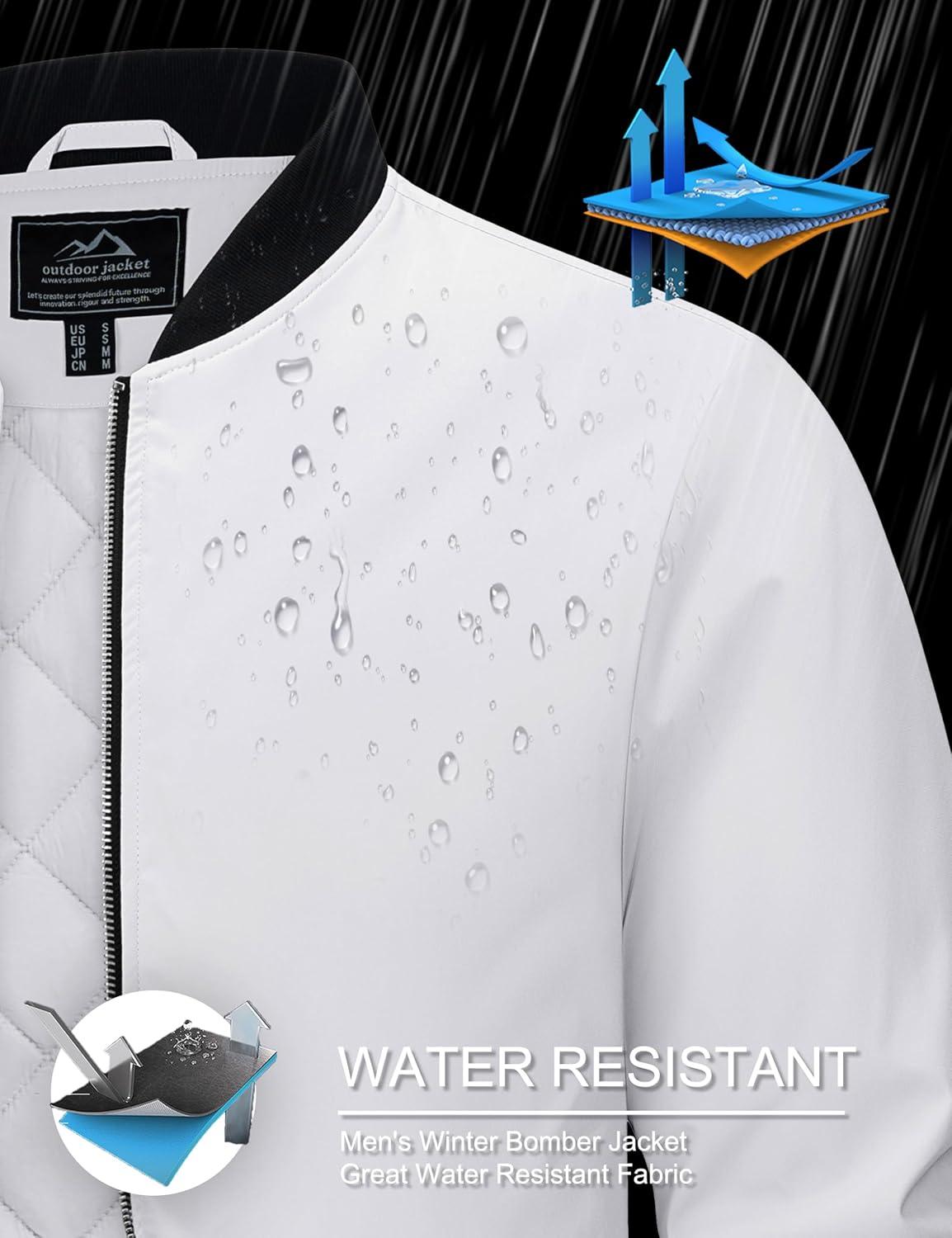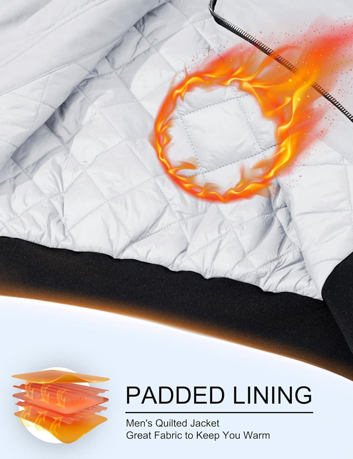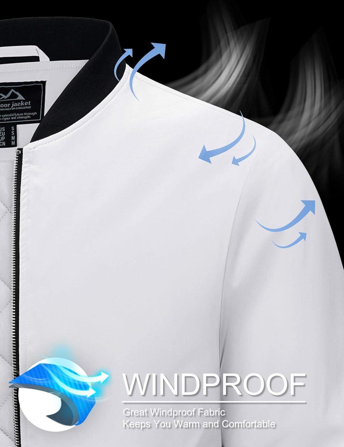 MAGCOMSEN Bomber Jackets for Men Winter Casual Quilted Jacket Warm Windproof Padded Jackets Zip Up Coats(White)