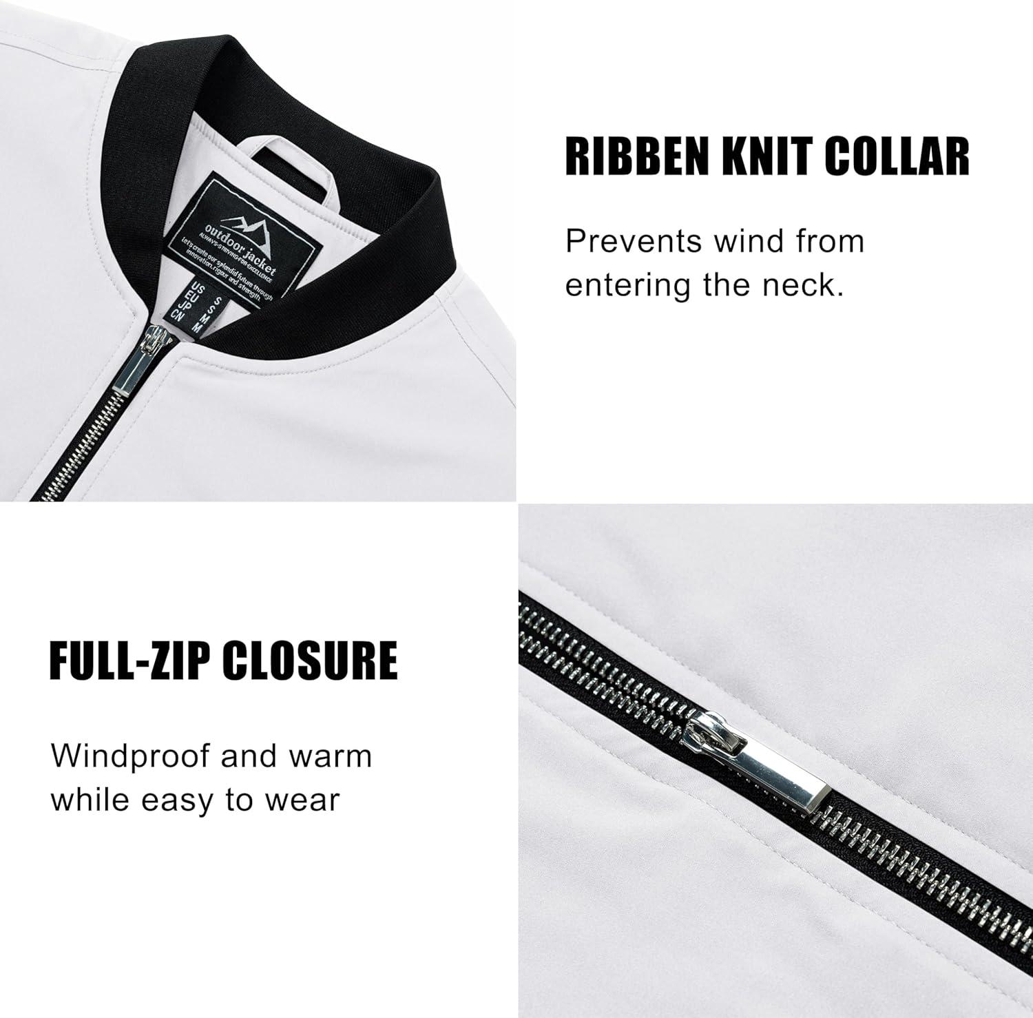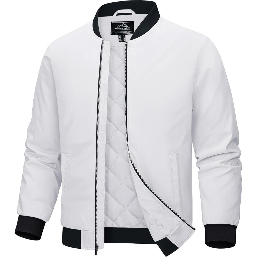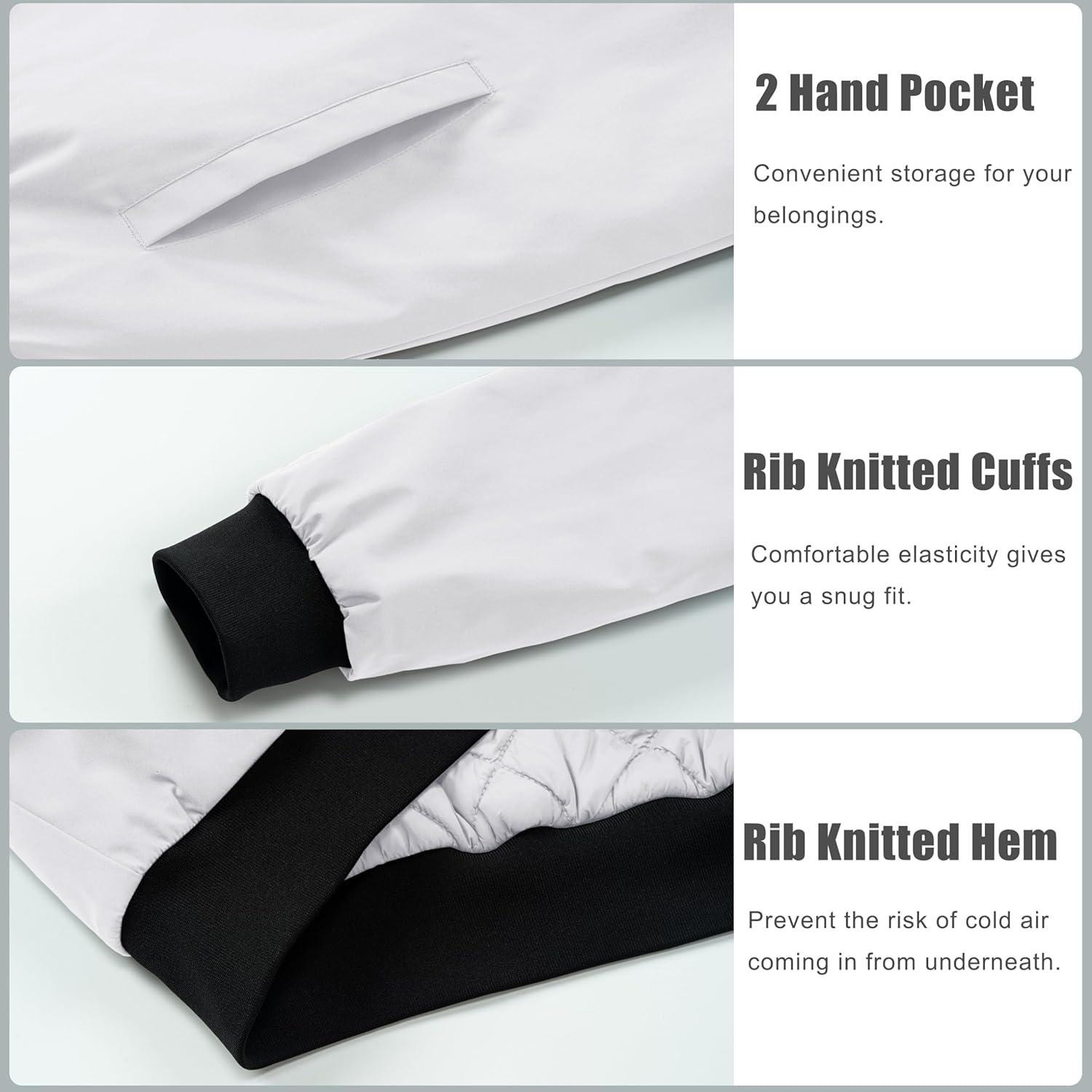 MAGCOMSEN Bomber Jackets for Men Winter Casual Quilted Jacket Warm Windproof Padded Jackets Zip Up Coats(White)
