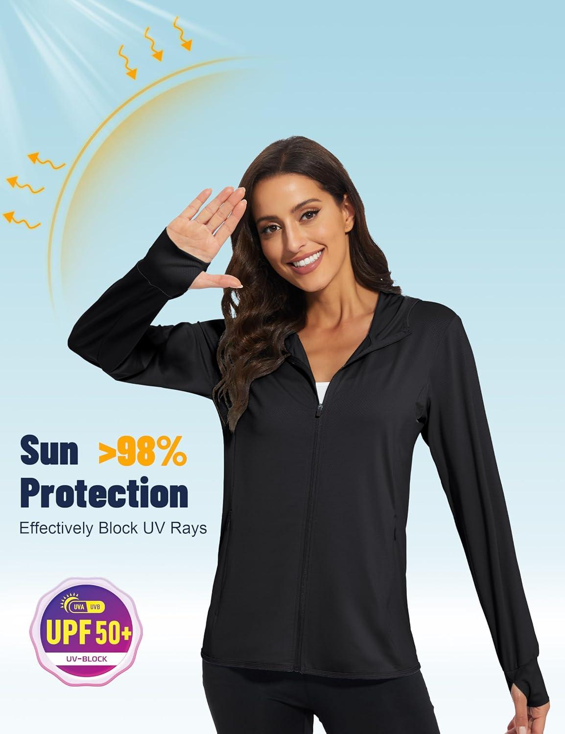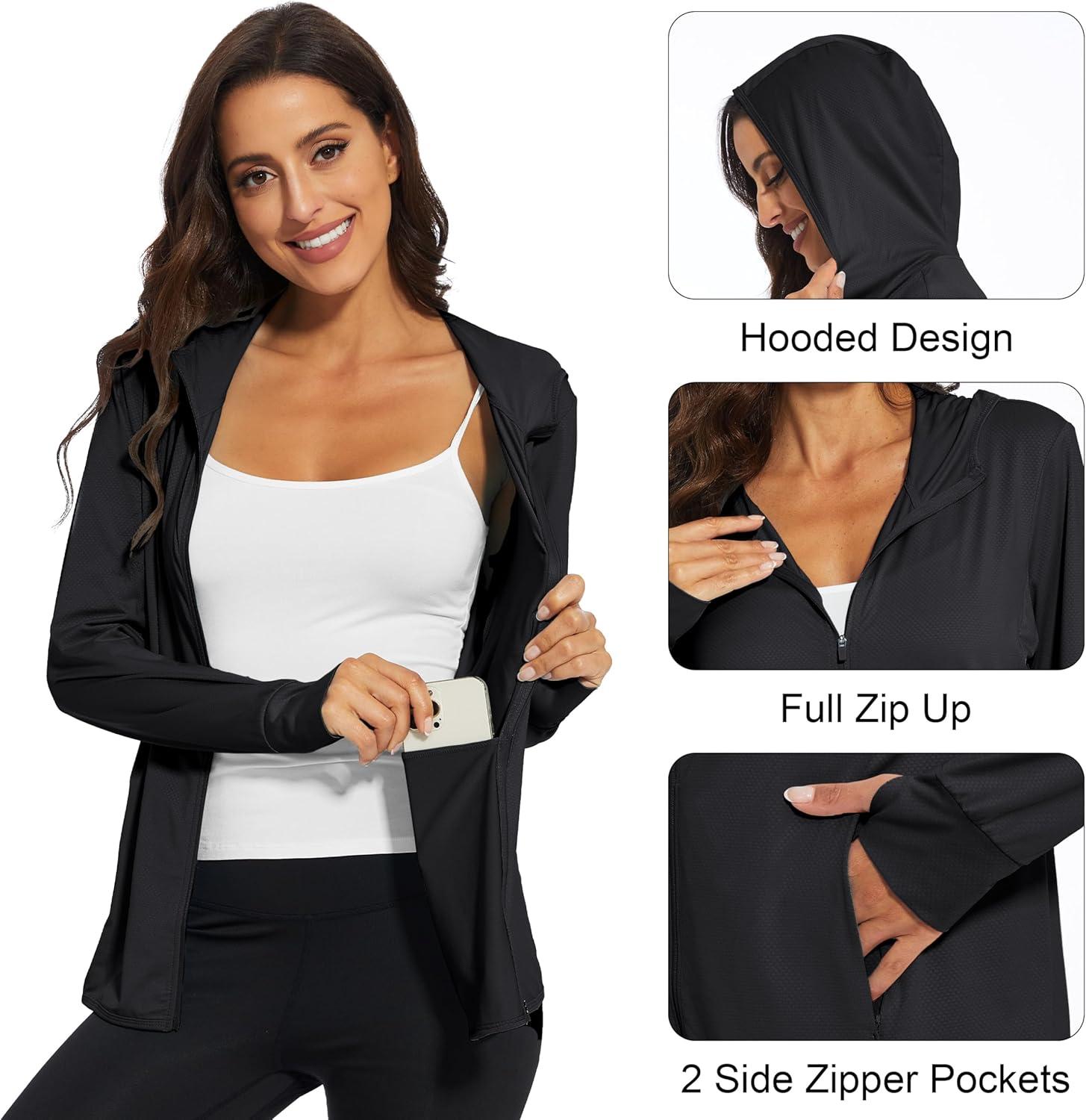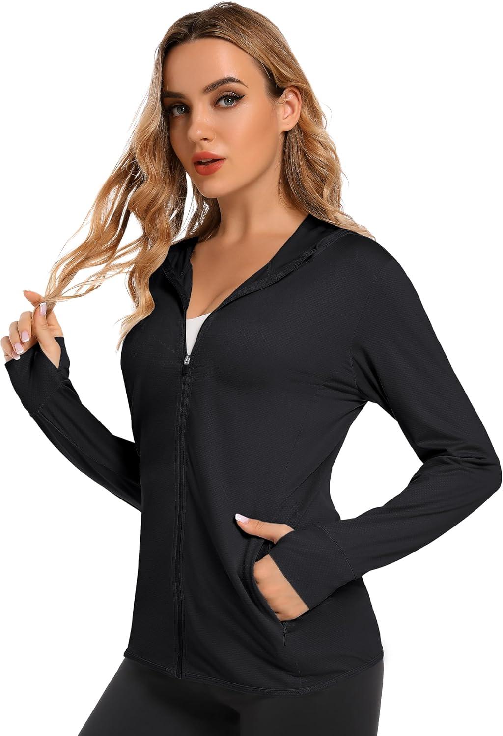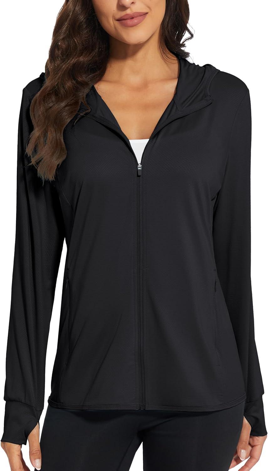 MAGCOMSEN Jackets for Women Full Zip Up Lightweight Long Sleeve UPF 50+ Workout Workout Sun Protection Hoodie(Black)