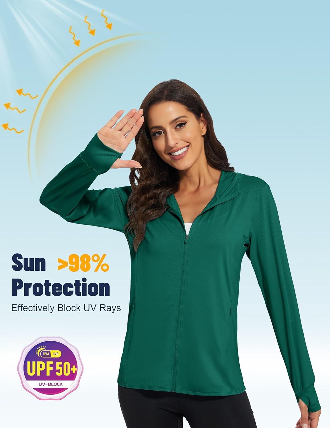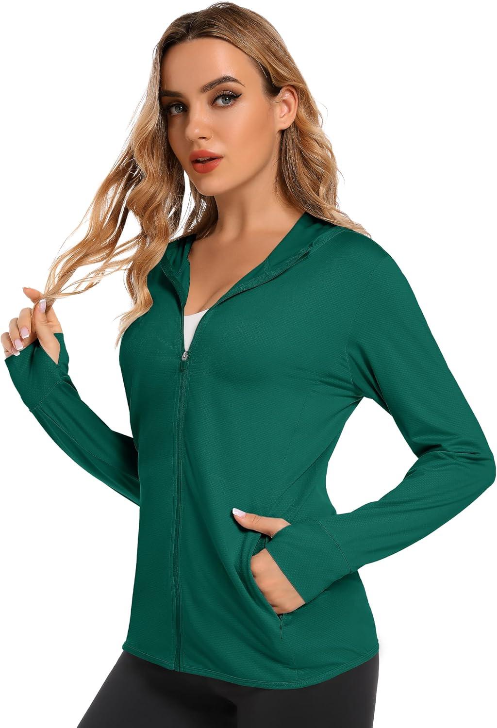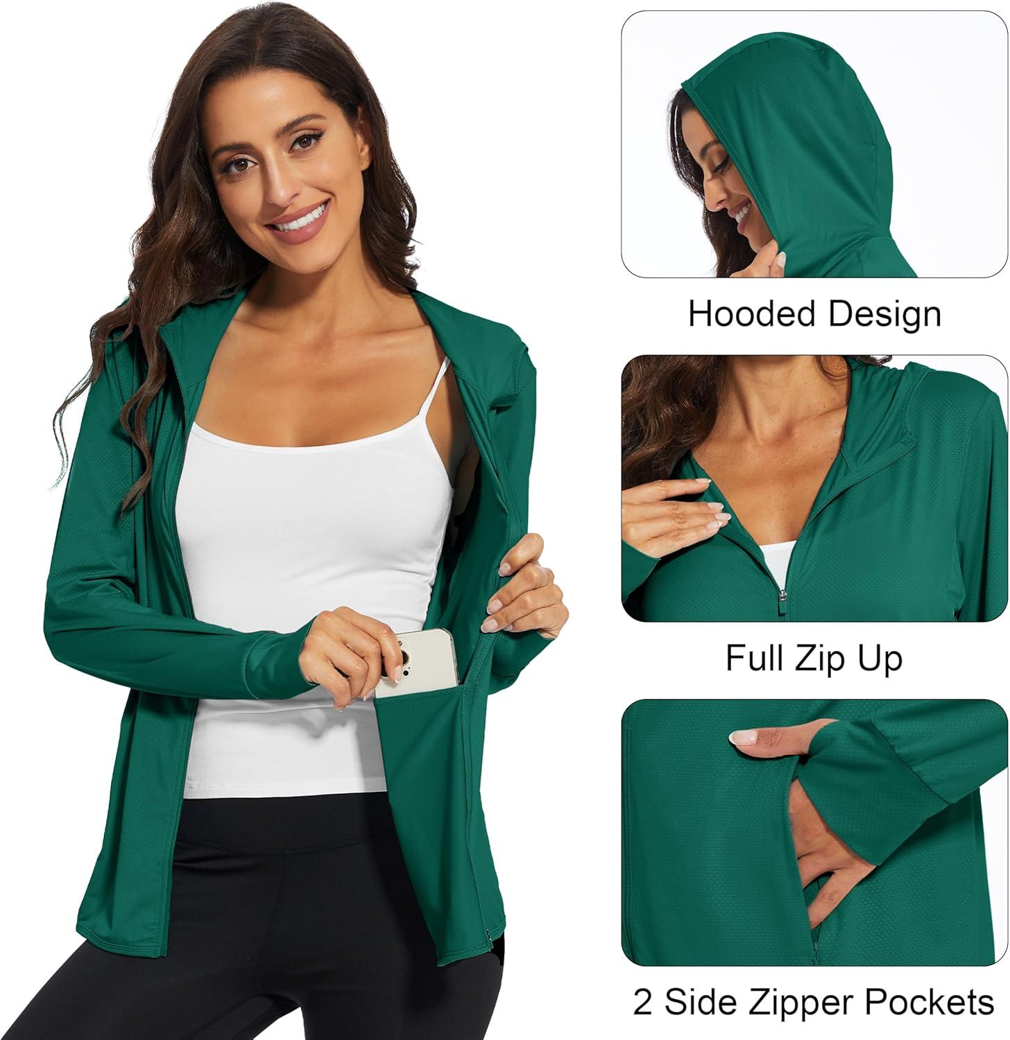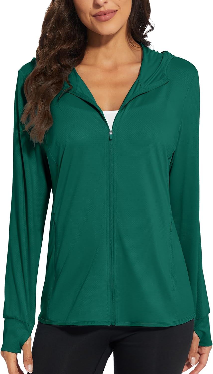 MAGCOMSEN Jackets for Women Full Zip Up Lightweight Long Sleeve UPF 50+ Workout Workout Sun Protection Hoodie(Emerald Green)