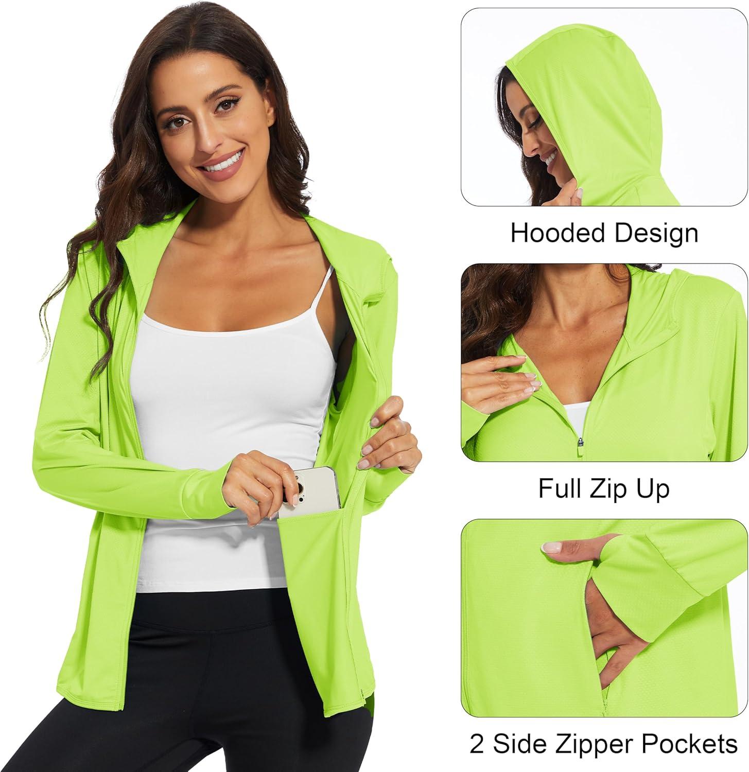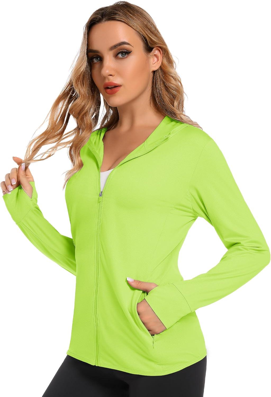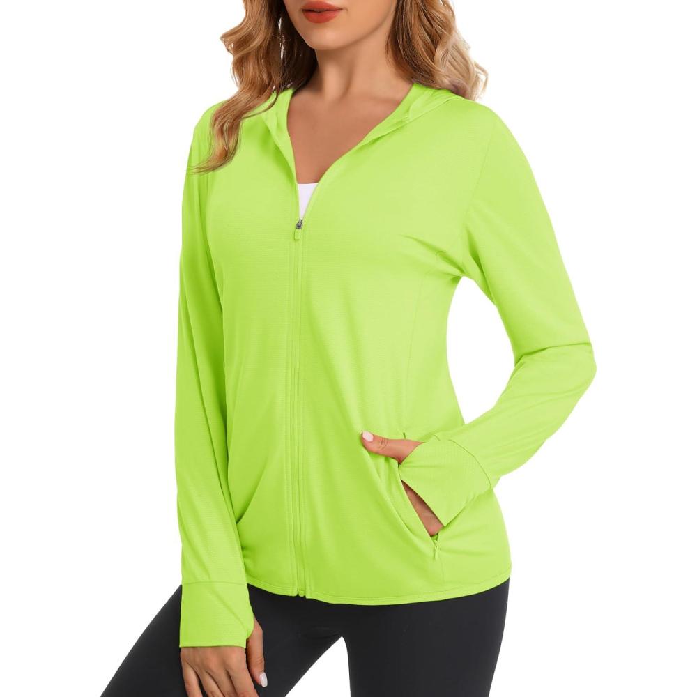 MAGCOMSEN Jackets for Women Full Zip Up Lightweight Long Sleeve UPF 50+ Workout Workout Sun Protection Hoodie(Fluorescent Green)