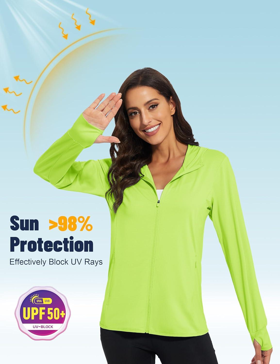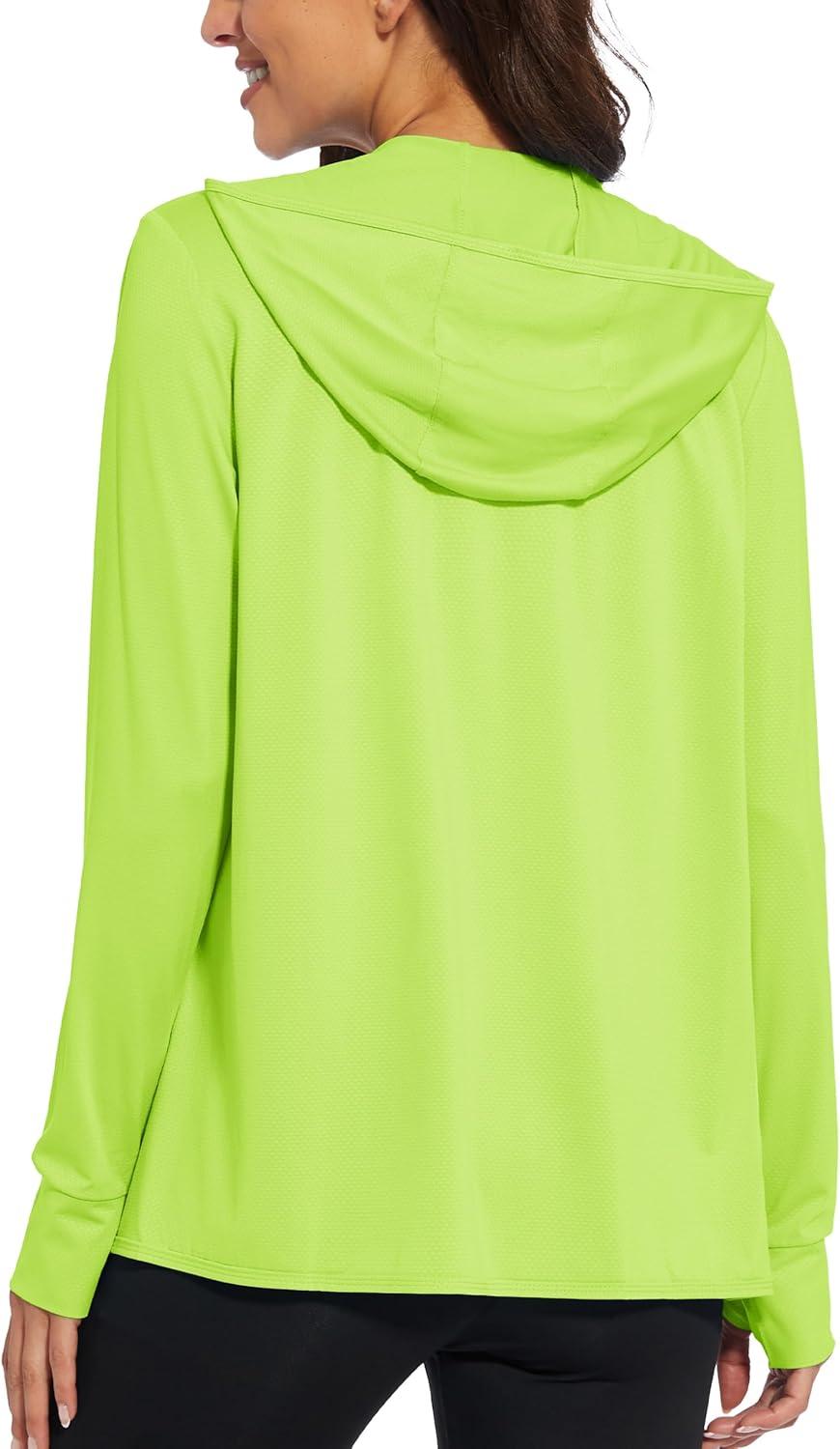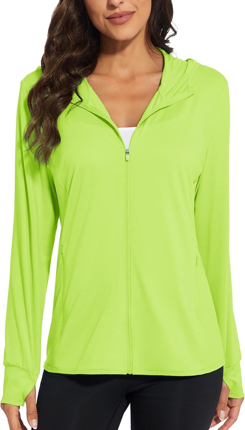 MAGCOMSEN Jackets for Women Full Zip Up Lightweight Long Sleeve UPF 50+ Workout Workout Sun Protection Hoodie(Fluorescent Green)