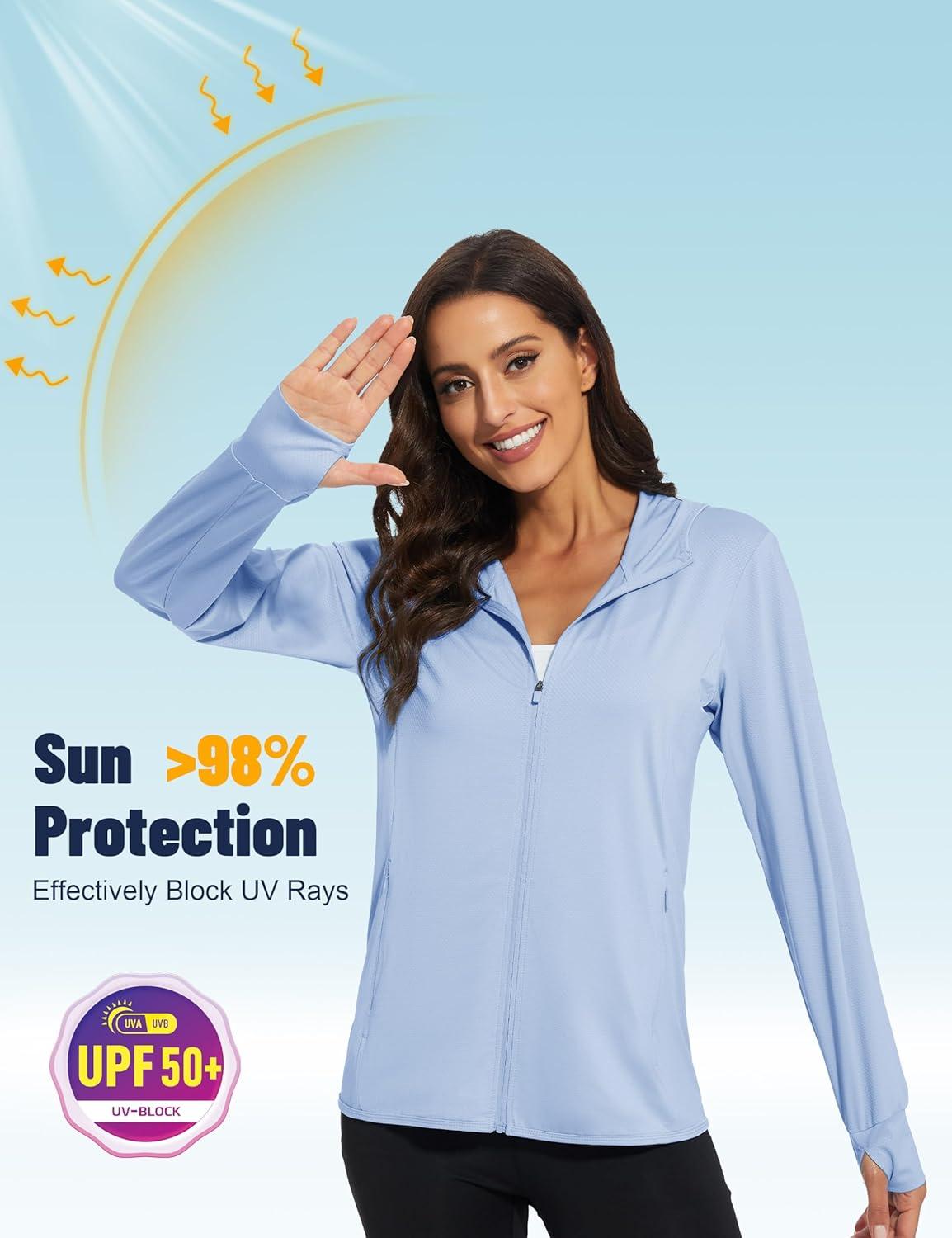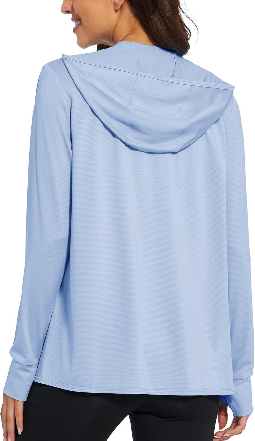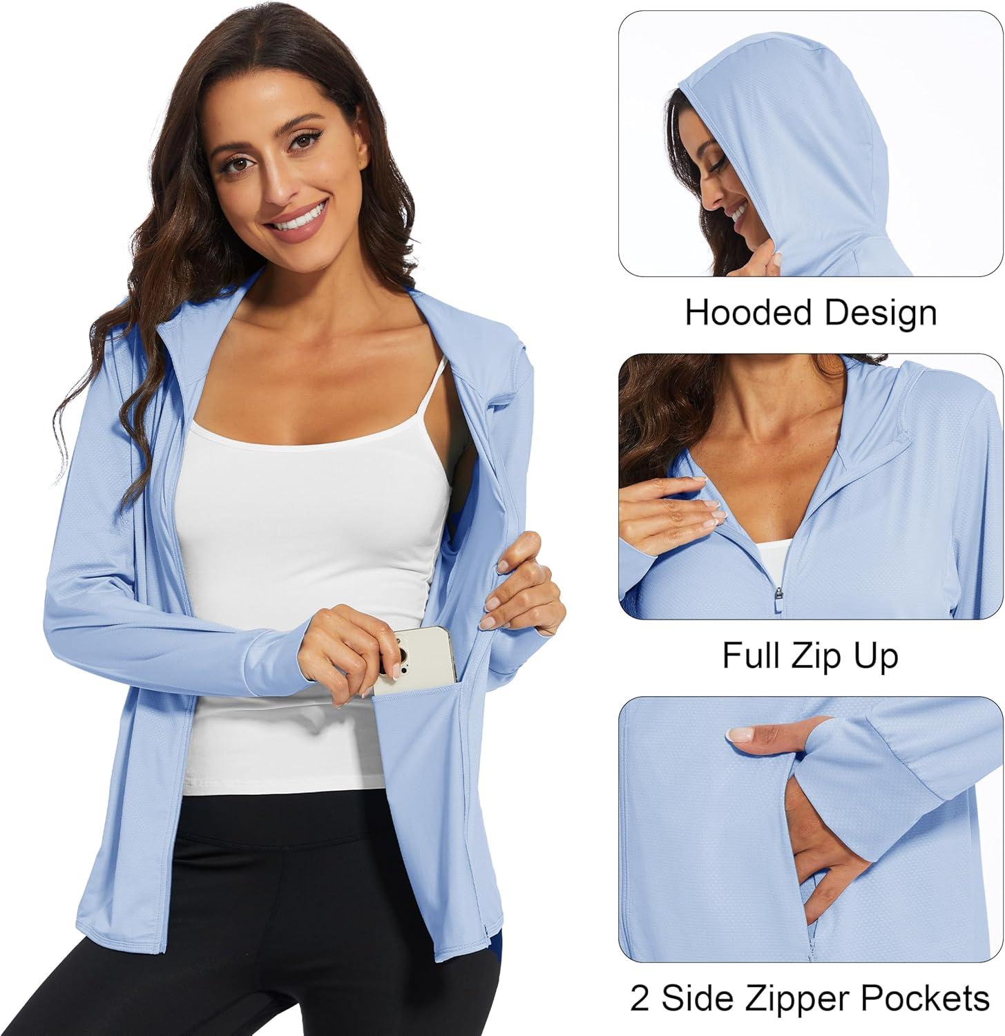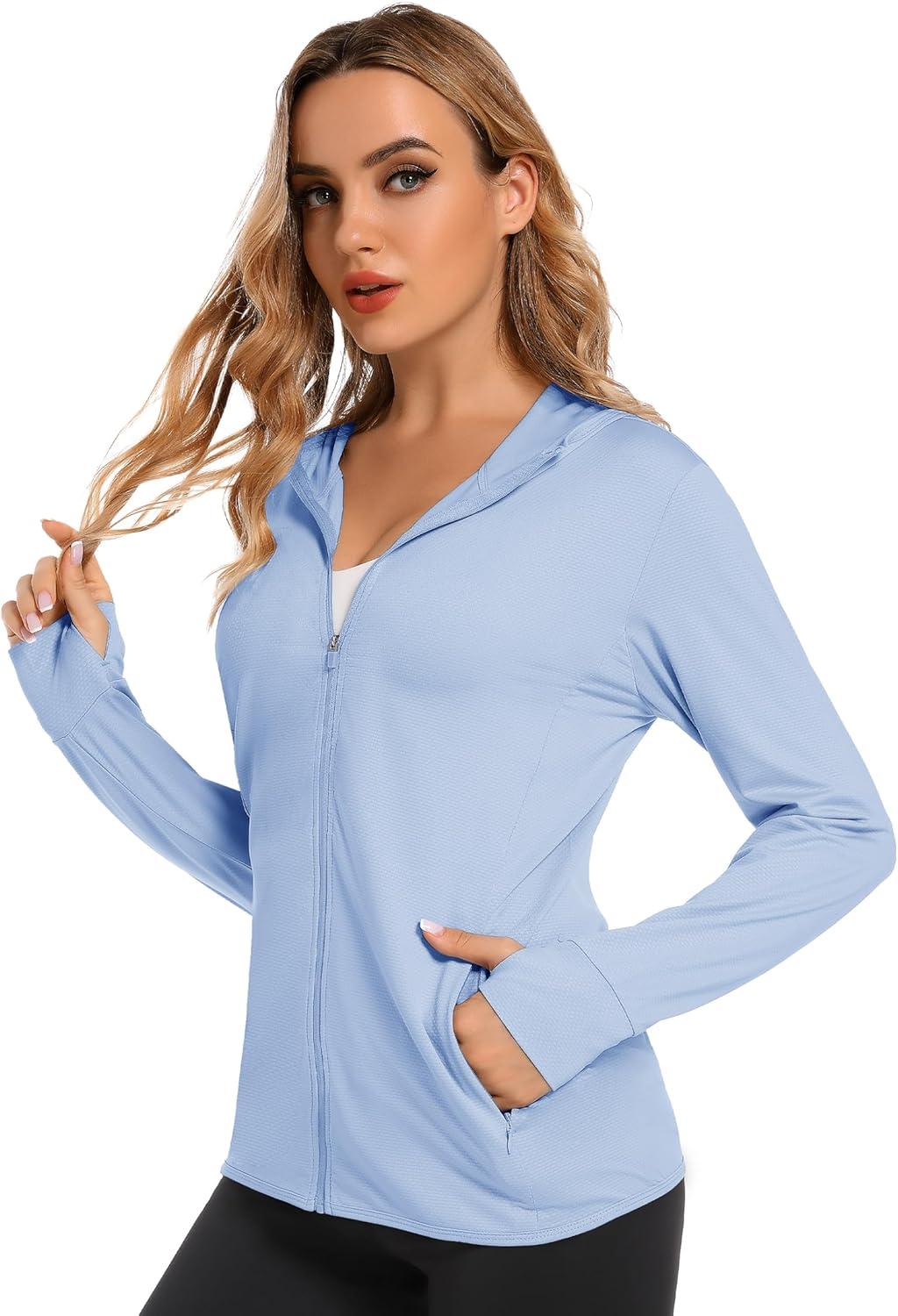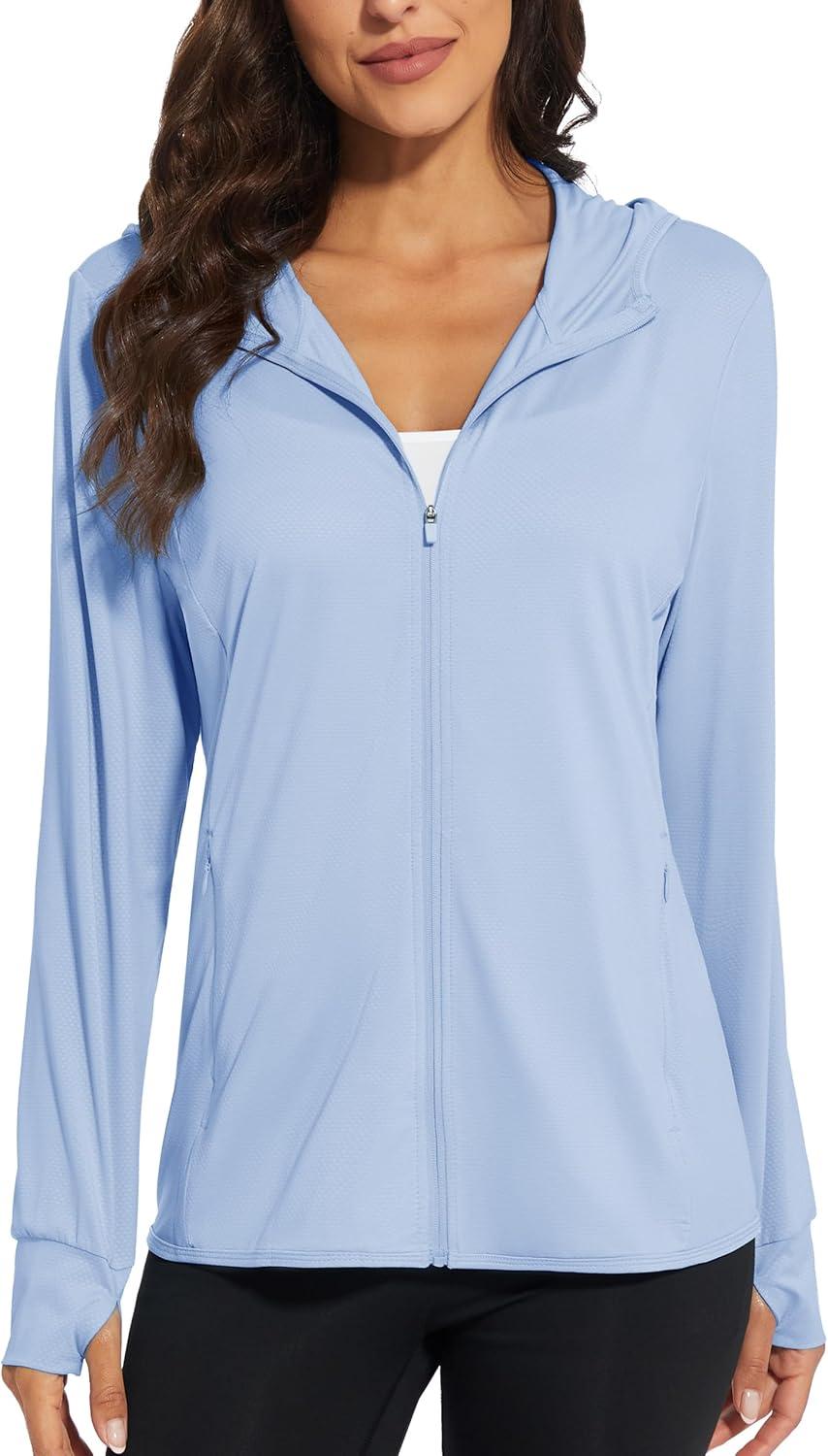 MAGCOMSEN Jackets for Women Full Zip Up Lightweight Long Sleeve UPF 50+ Workout Workout Sun Protection Hoodie(Pale Blue)