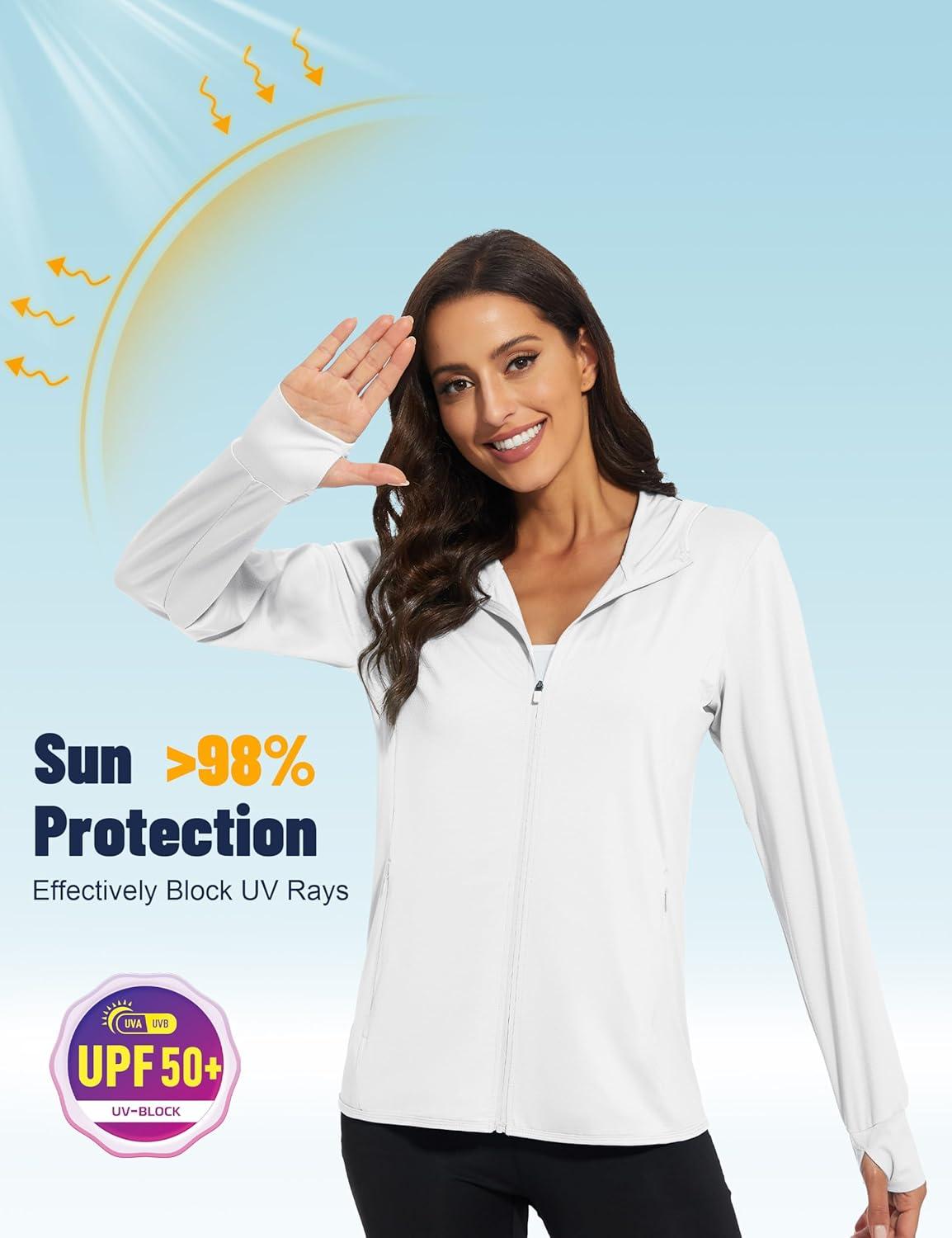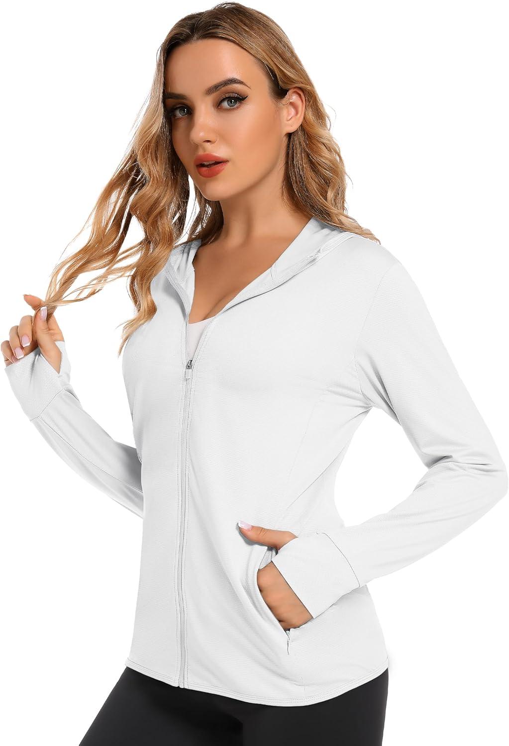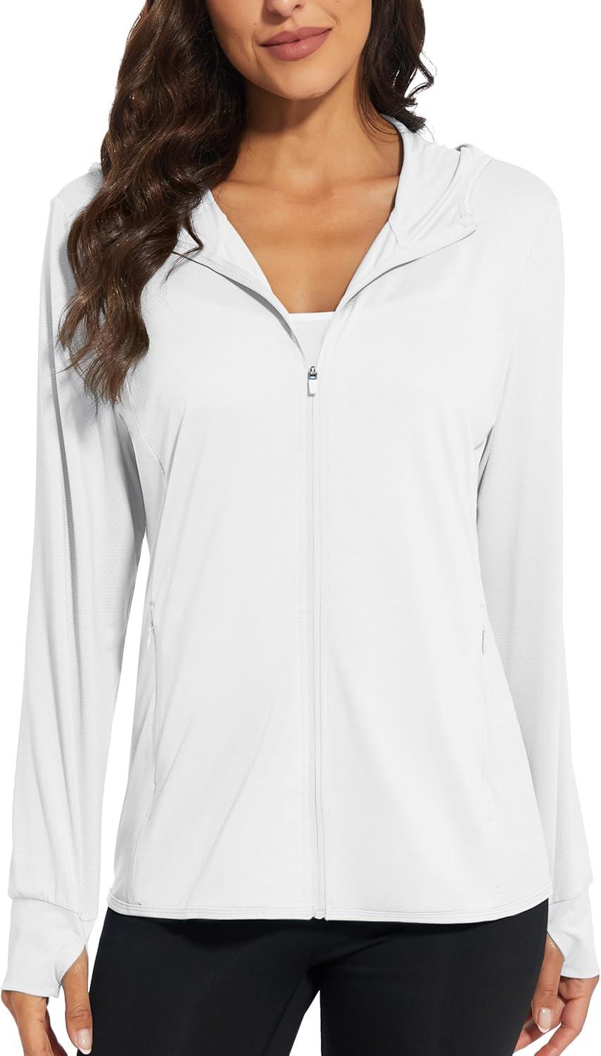 MAGCOMSEN Jackets for Women Full Zip Up Lightweight Long Sleeve UPF 50+ Workout Workout Sun Protection Hoodie(White)
