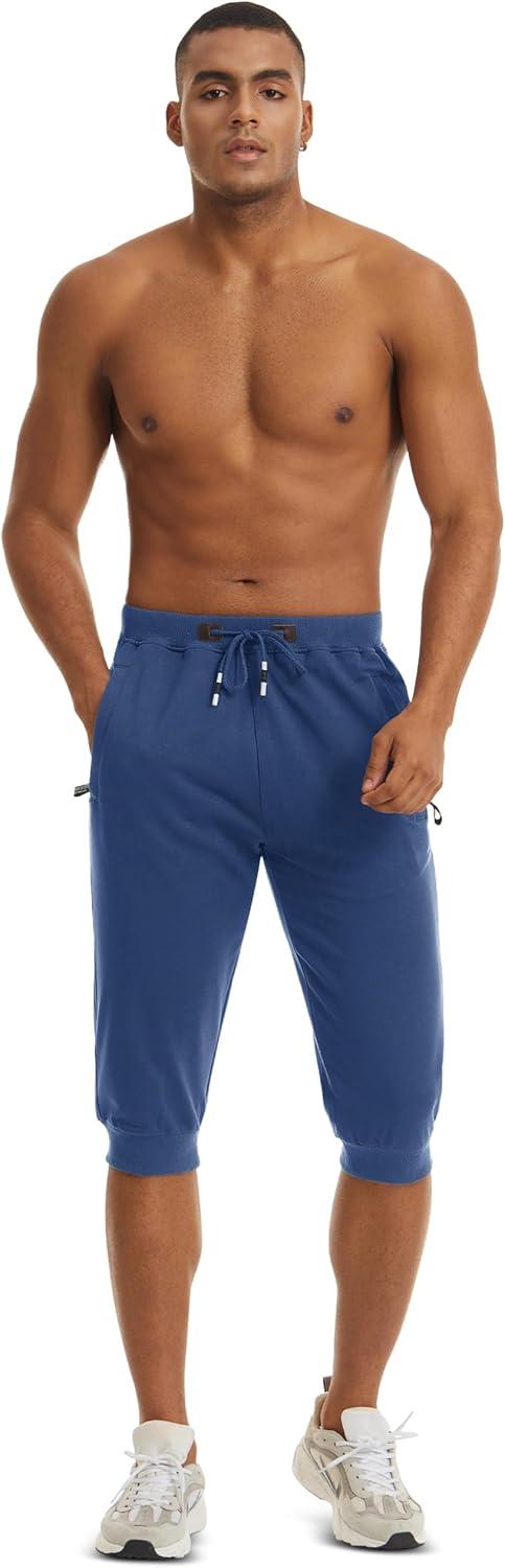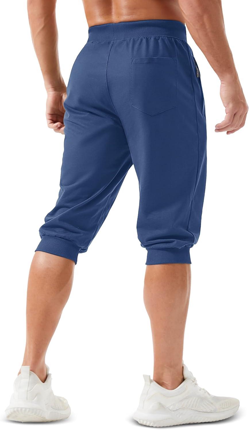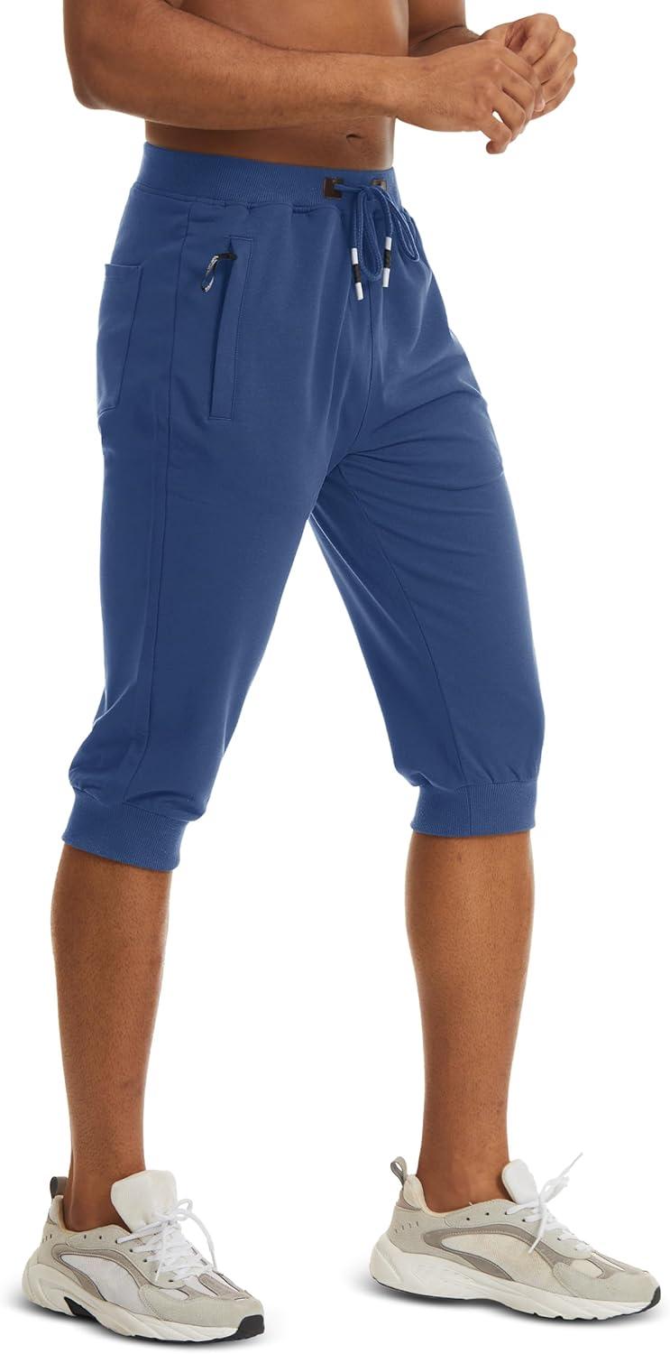 MAGCOMSEN Men’s 3/4 Jogger Capri Pants with Zipper Pockets Knee Length Running Training Workout Shorts(Royal Blue)