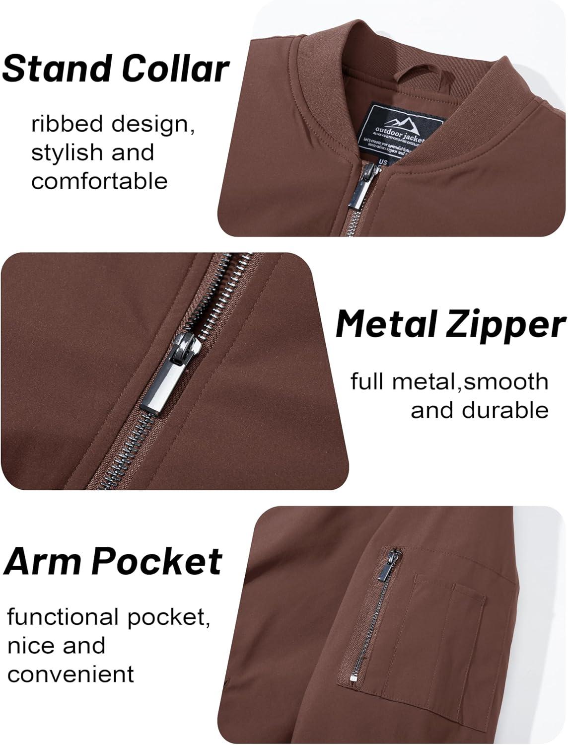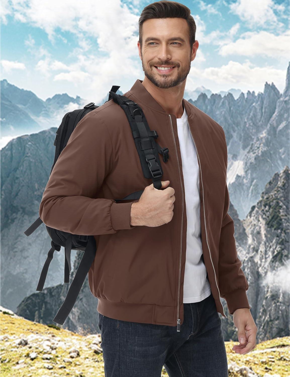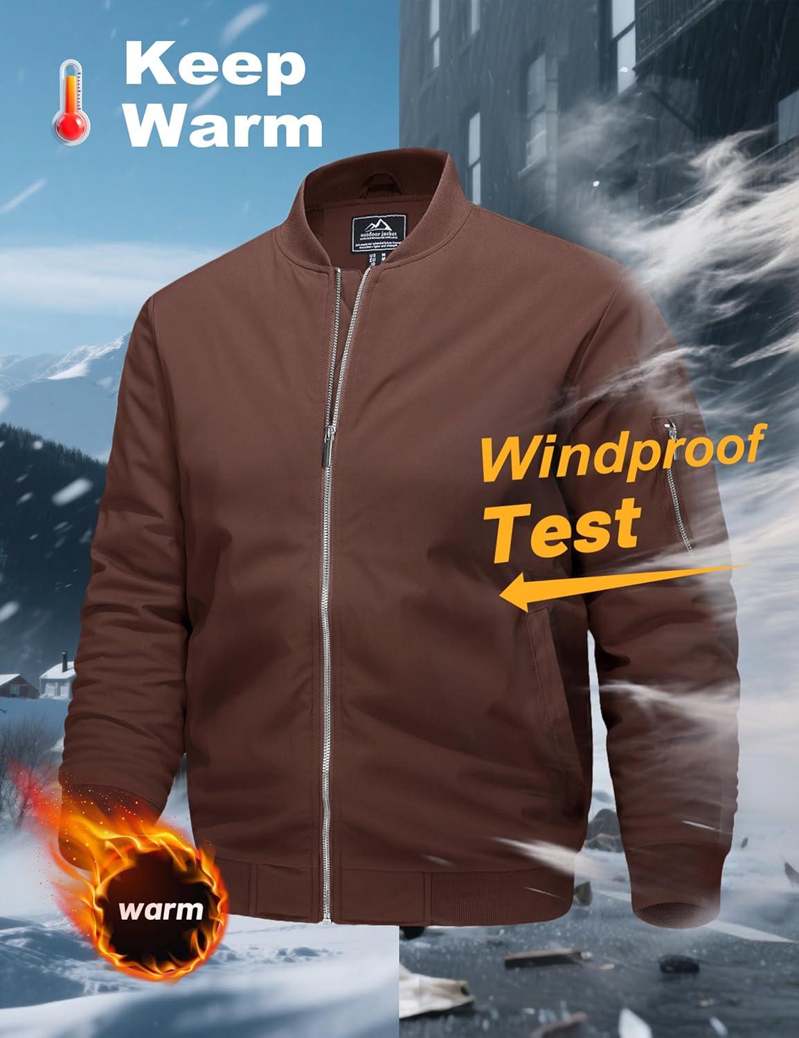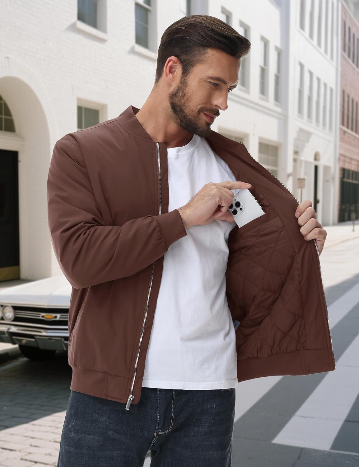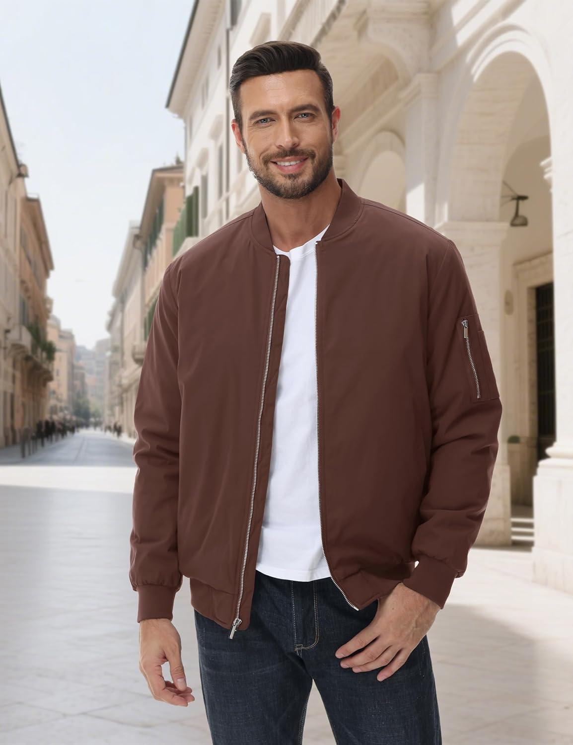 MAGCOMSEN Men’s Bomber Jacket Casual Windproof Quilted Jacket Full Zip Windbreaker Winter Warm Varsity Jacket with Pockets(Coffee)