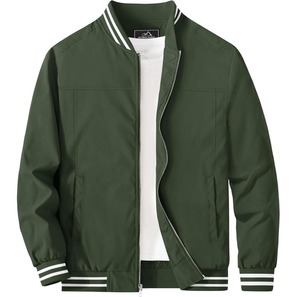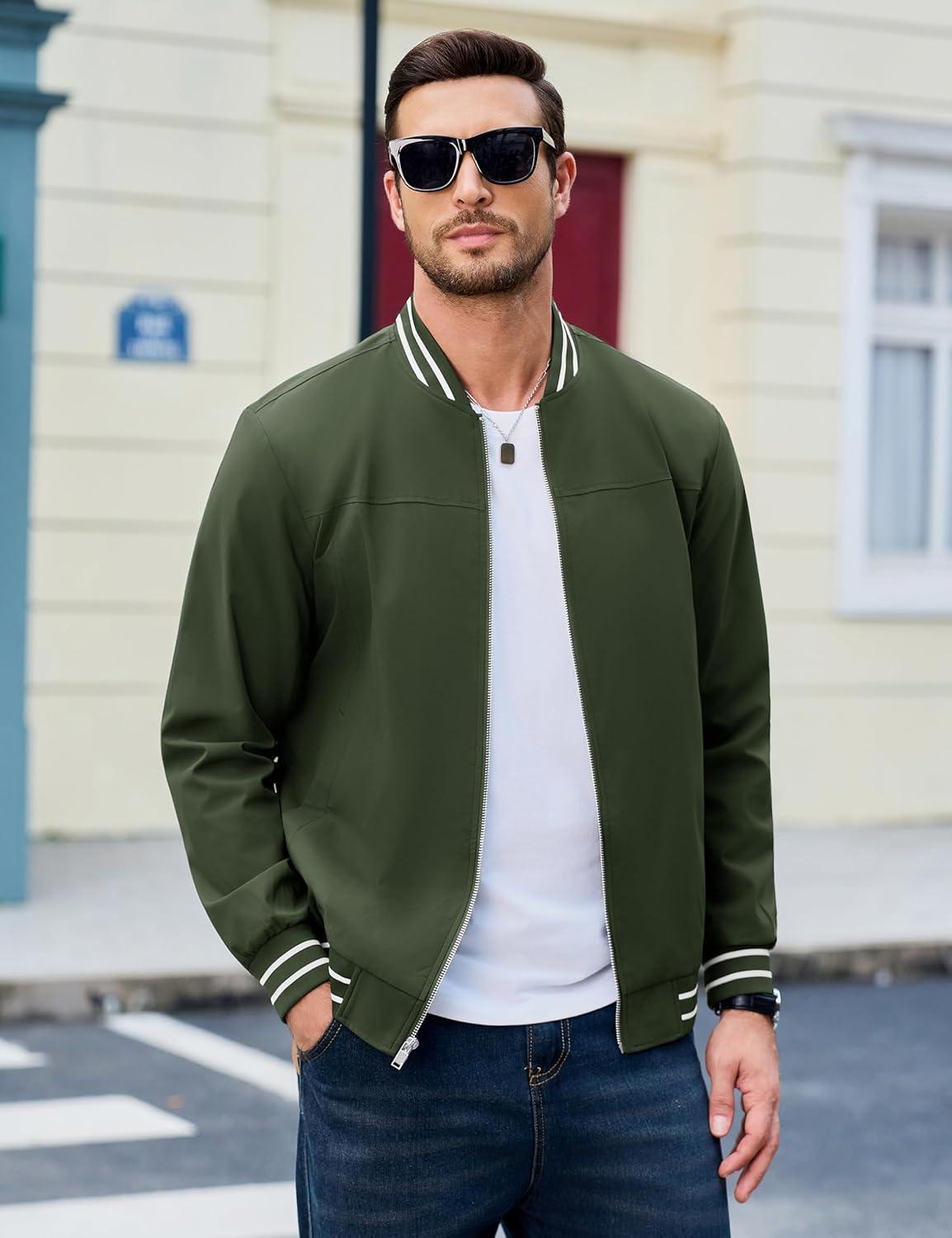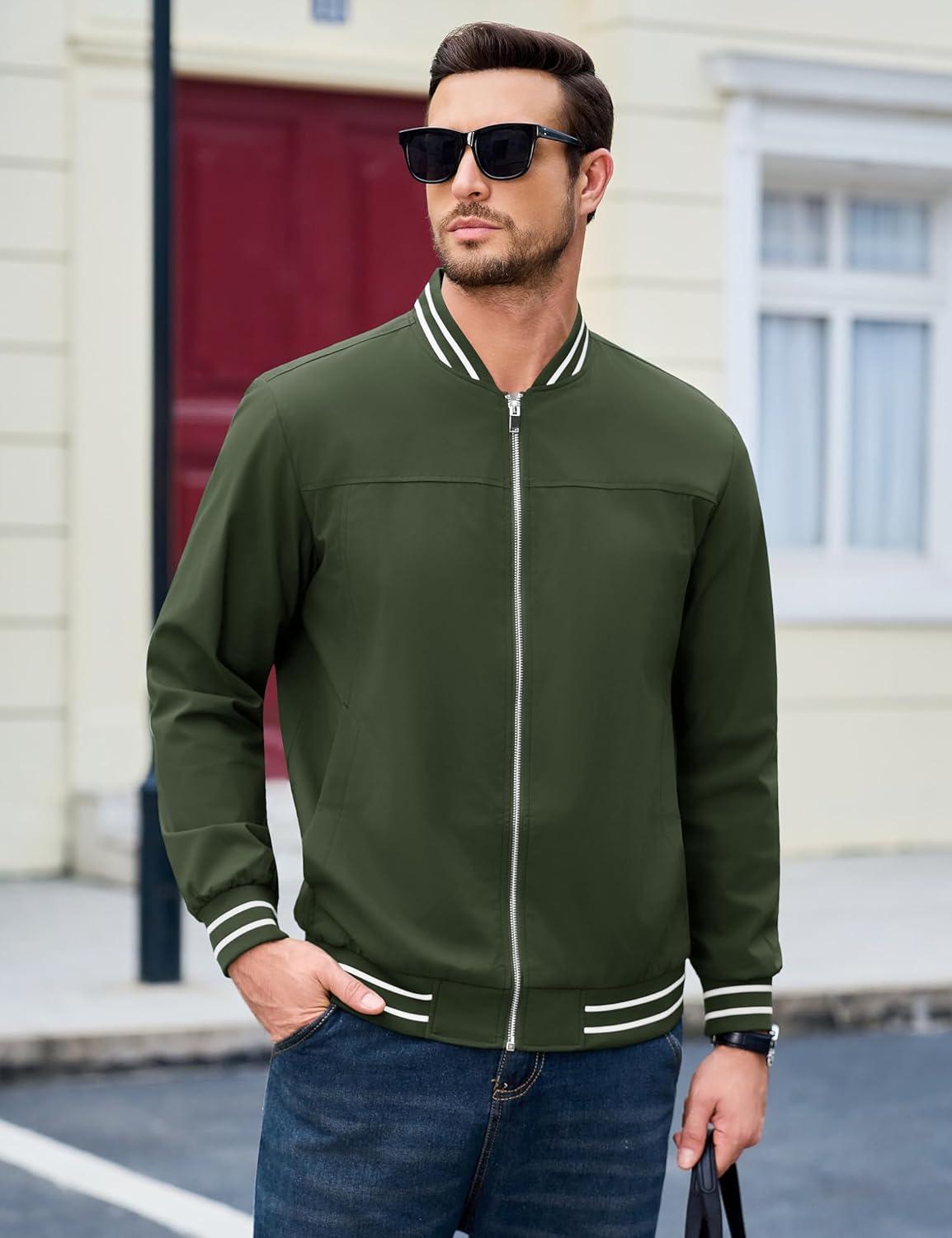 MAGCOMSEN Men’s Bomber Jacket Lightweight Windbreaker Jackets Zip Up Windproof Jackets Casual Spring Fall Coat for Golf(Army Green)
