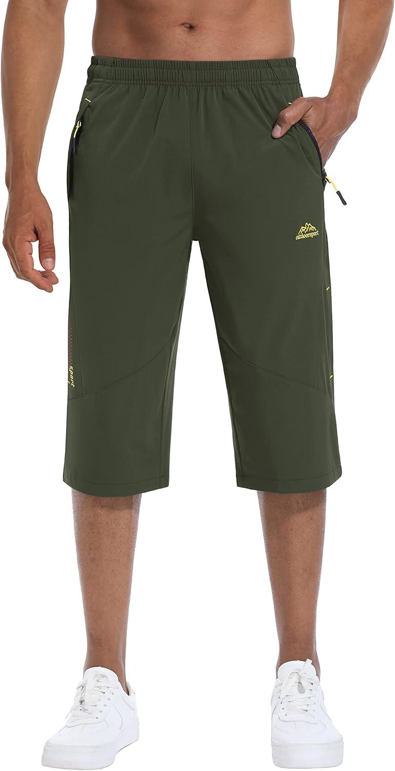 MAGCOMSEN Men’s Capri Shorts Quick Dry Below Knee 3/4 Capri Pants with Zipper Pockets for Workout Running Training Summer(Army Green)