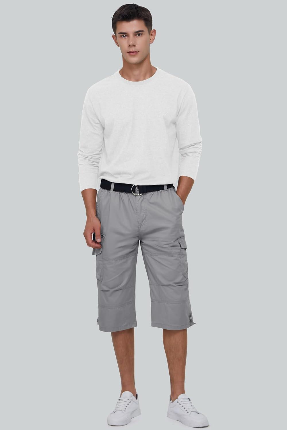 Don’t miss out on our limited-time offer: buy MAGCOMSEN Mens Cargo Shorts Long Capri Elastic Below The Knee 3/4 Cotton Casual Summer Shorts with Pockets(Light Grey), get {accessory} free!