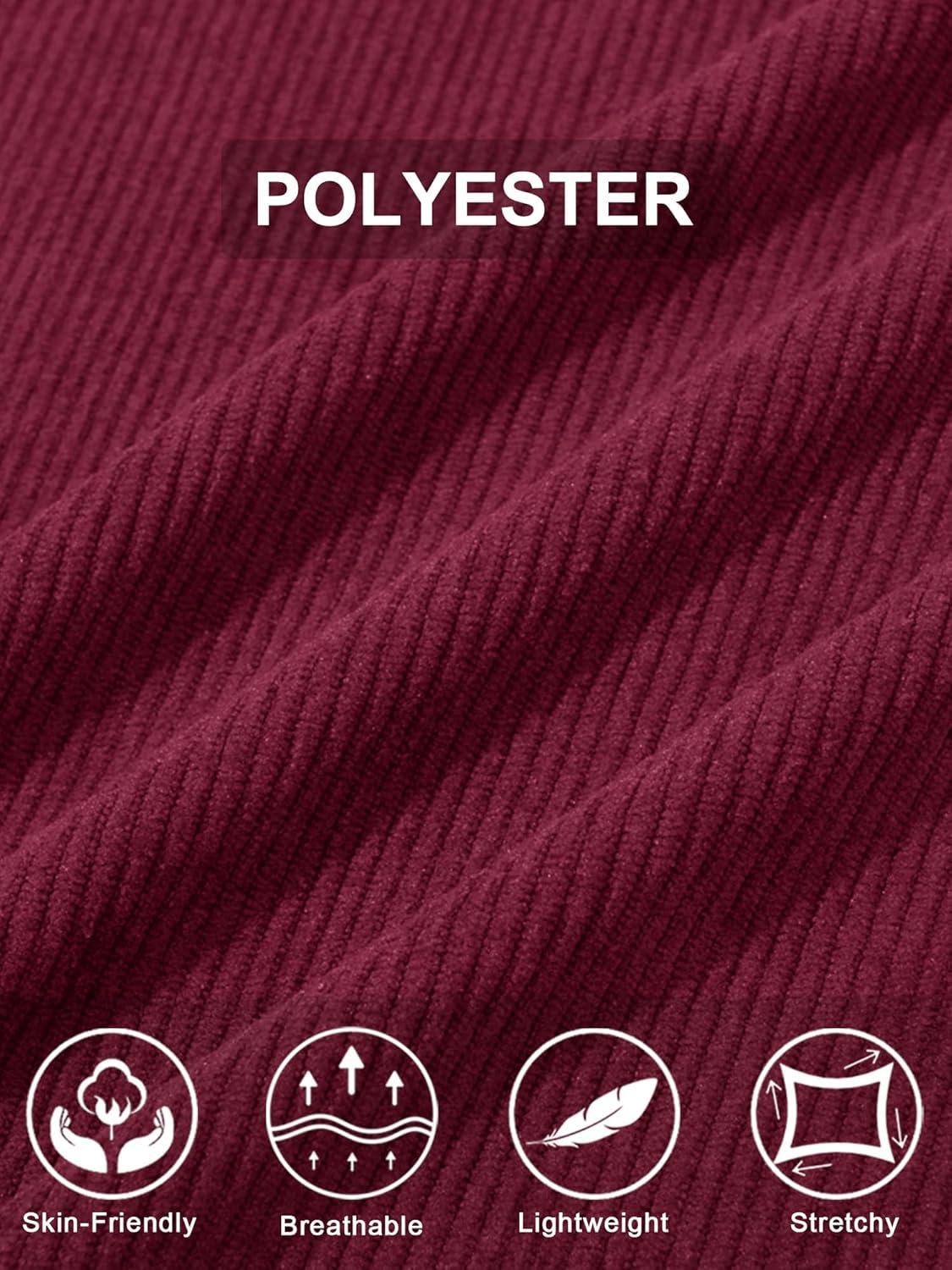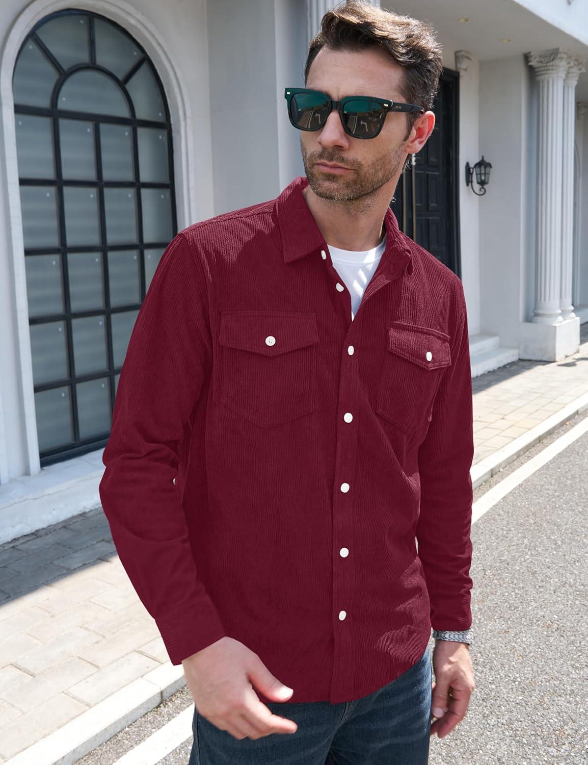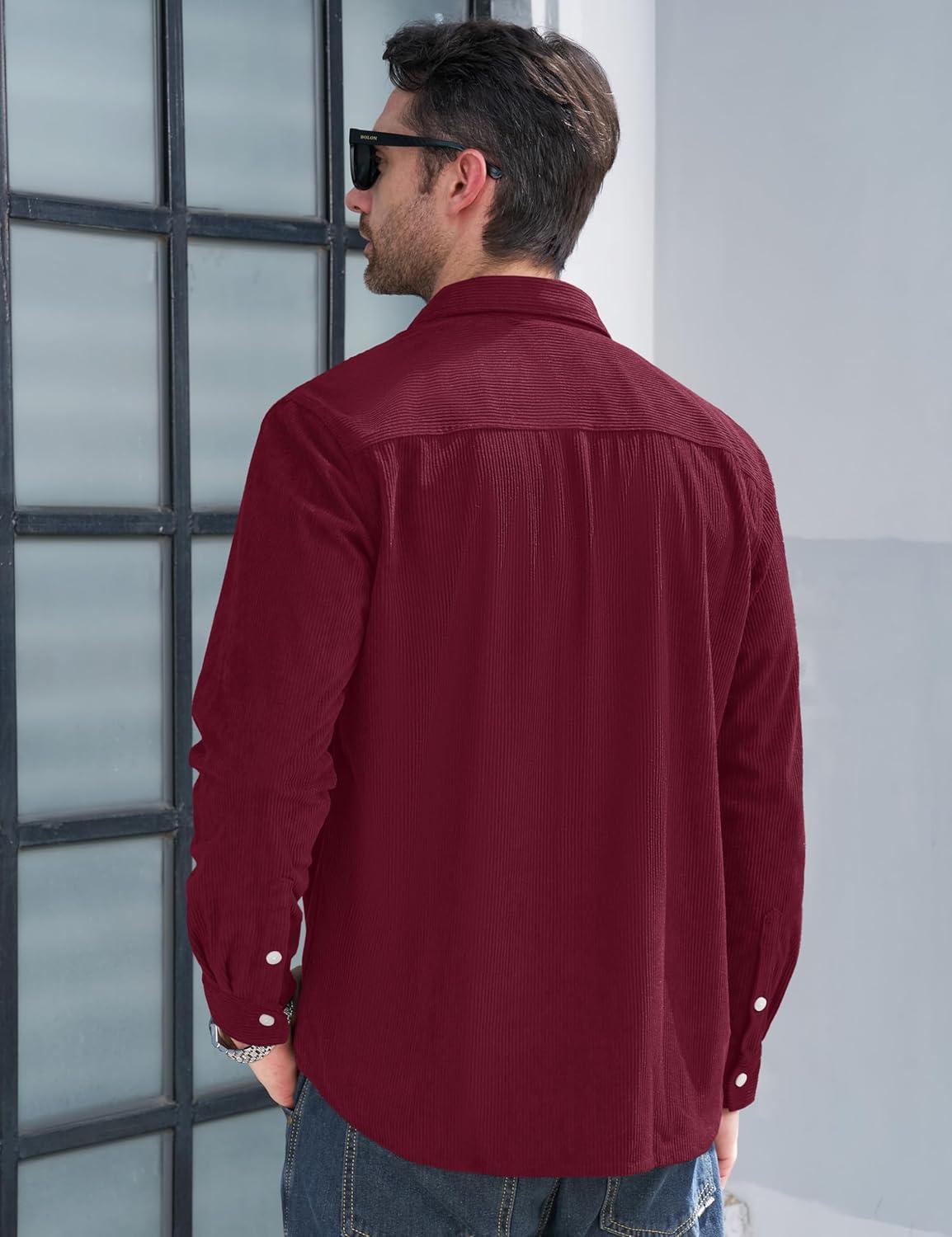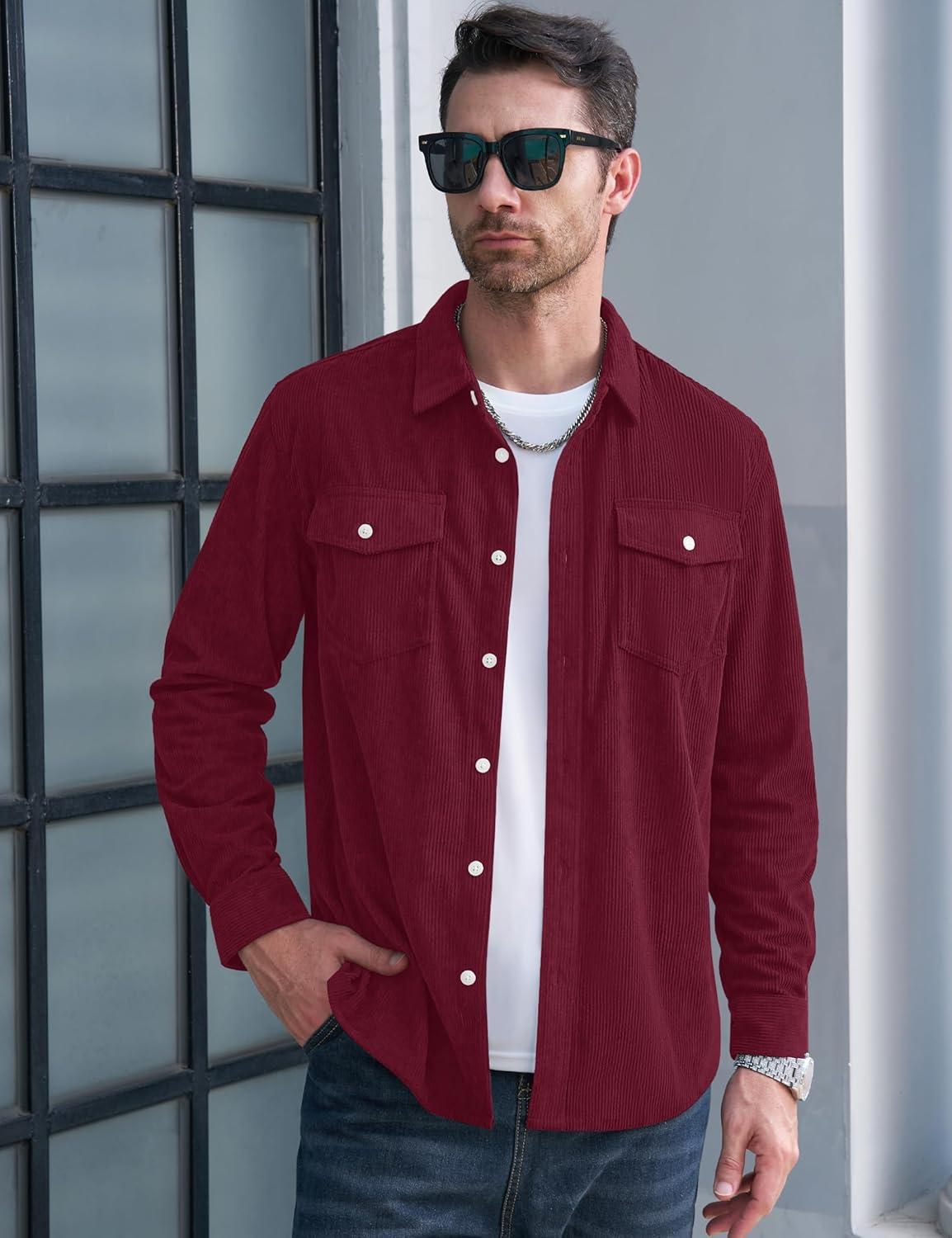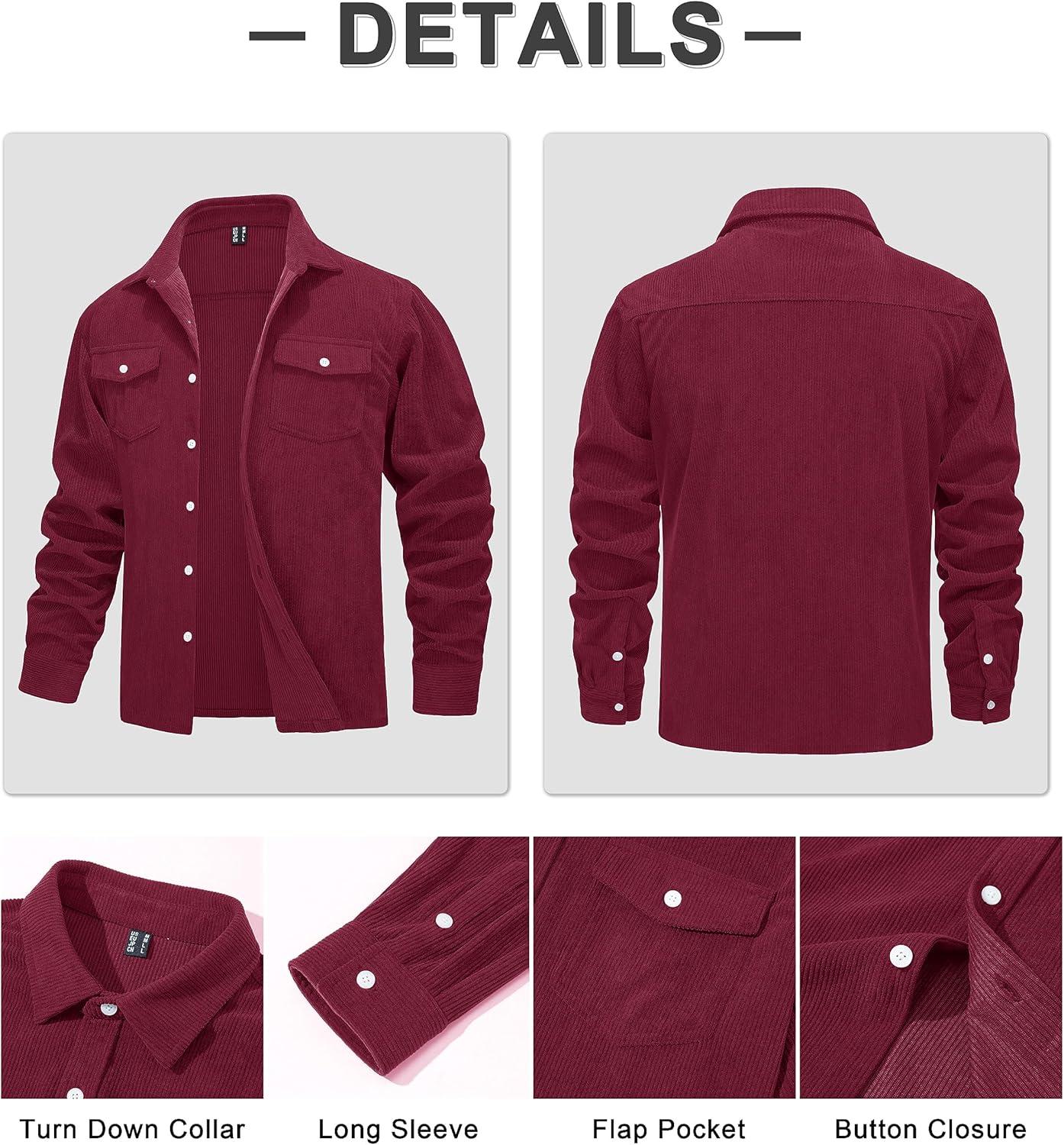 MAGCOMSEN Men’s Corduroy Shirt Jacket Long Sleeve Lightweight Jacket Button-Up Casual Shacket with Flap Pockets(Burgundy)
