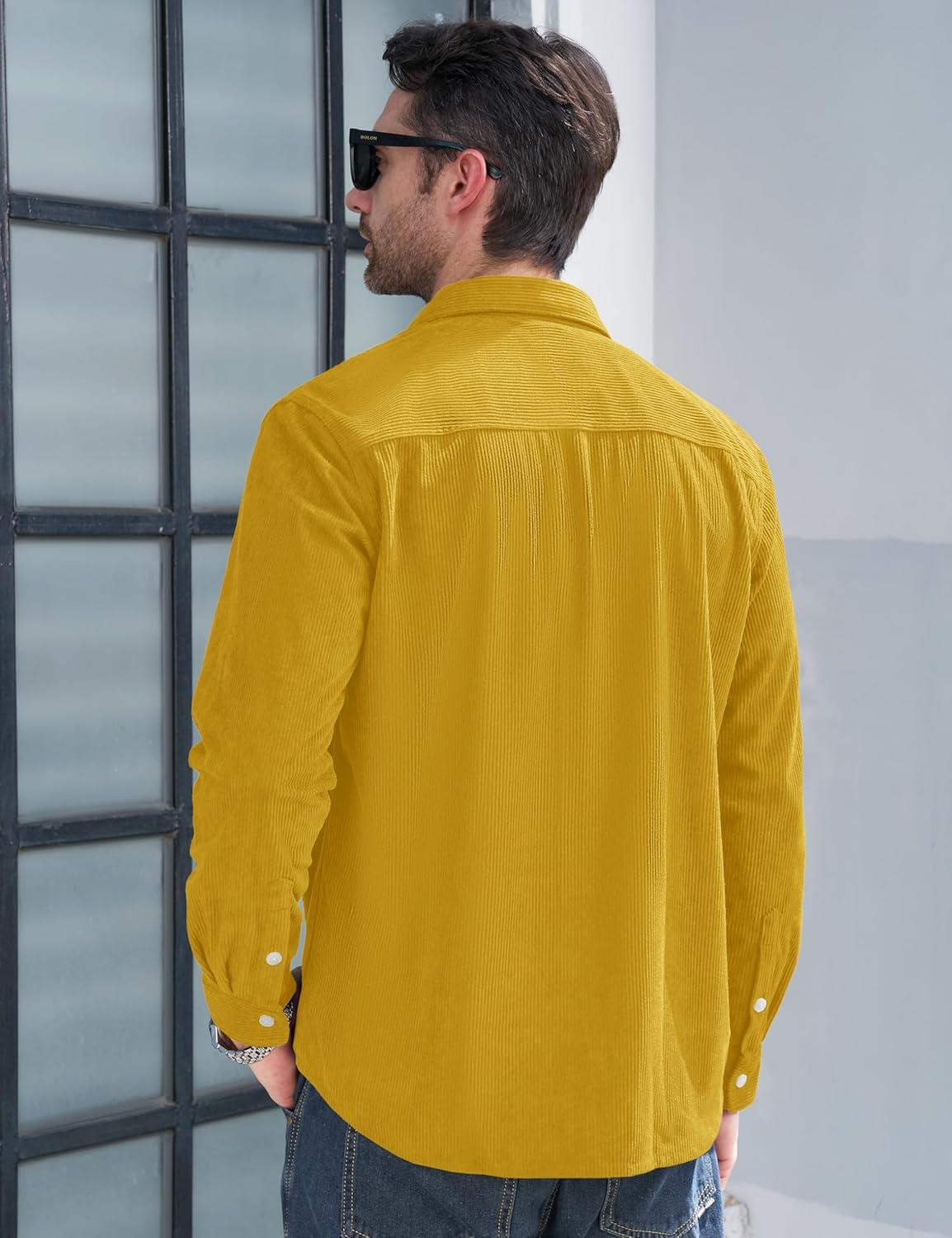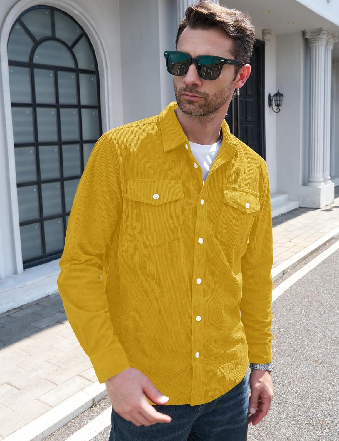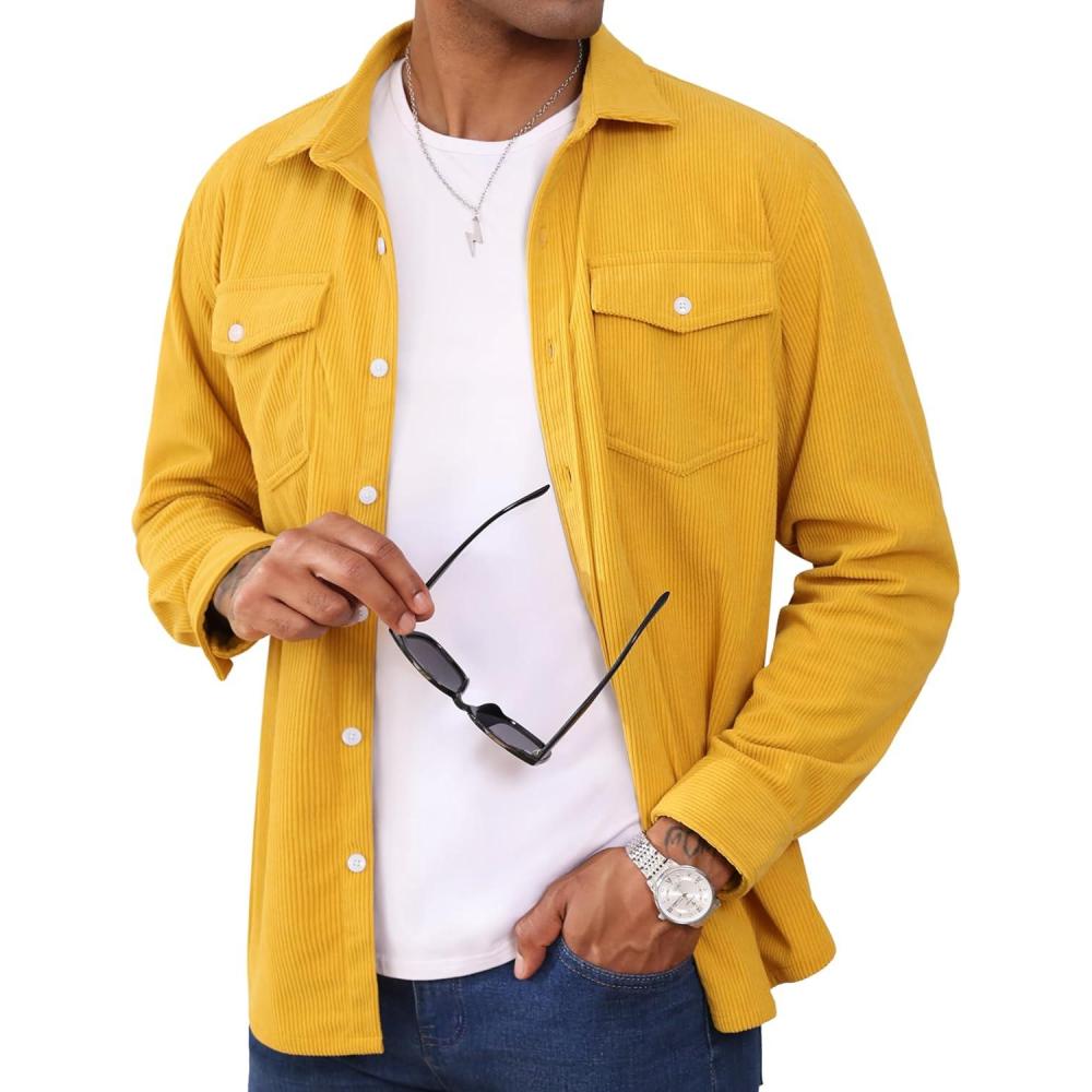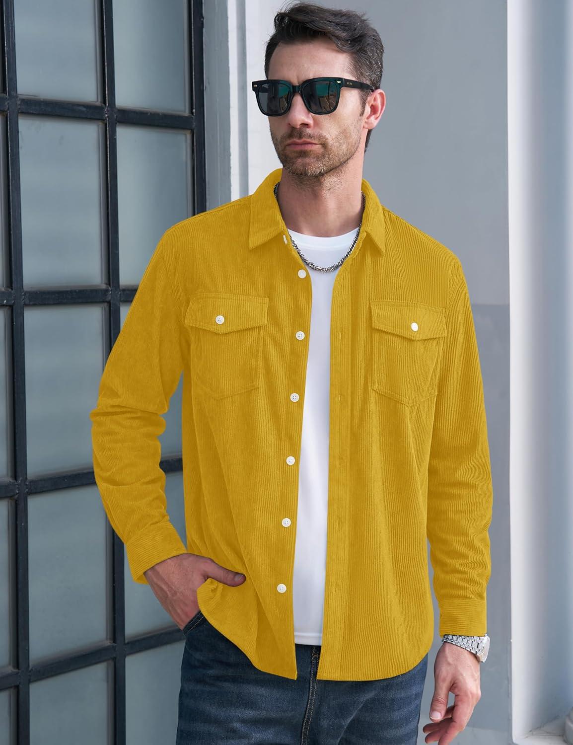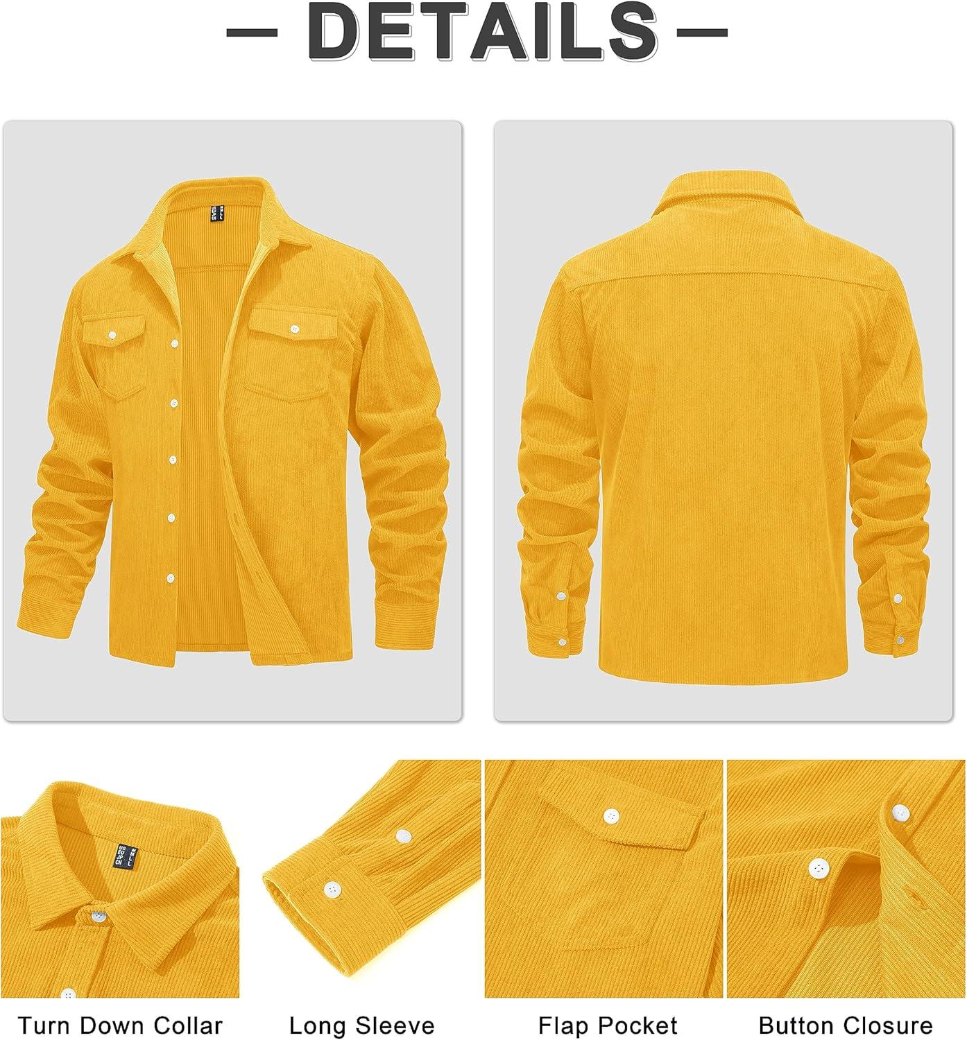 MAGCOMSEN Men’s Corduroy Shirt Jacket Long Sleeve Lightweight Jacket Button-Up Casual Shacket with Flap Pockets(Ginger)