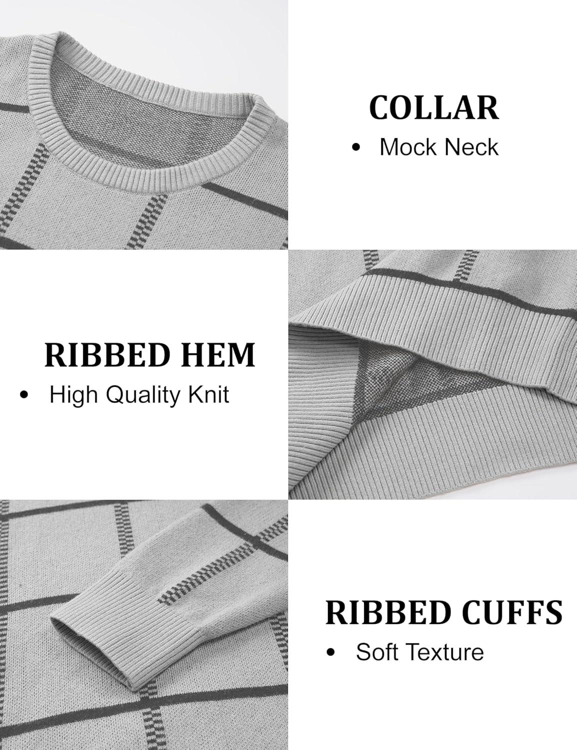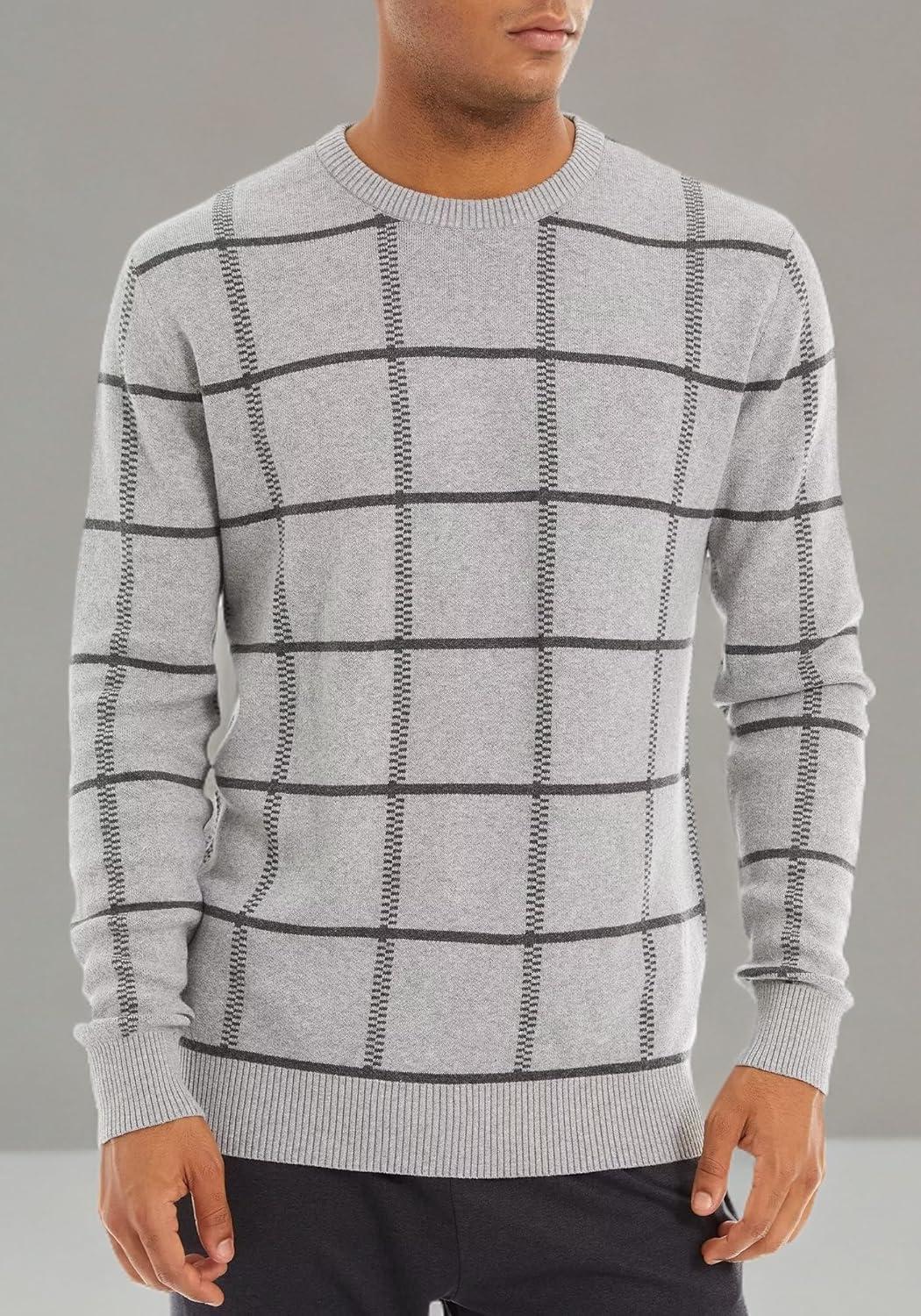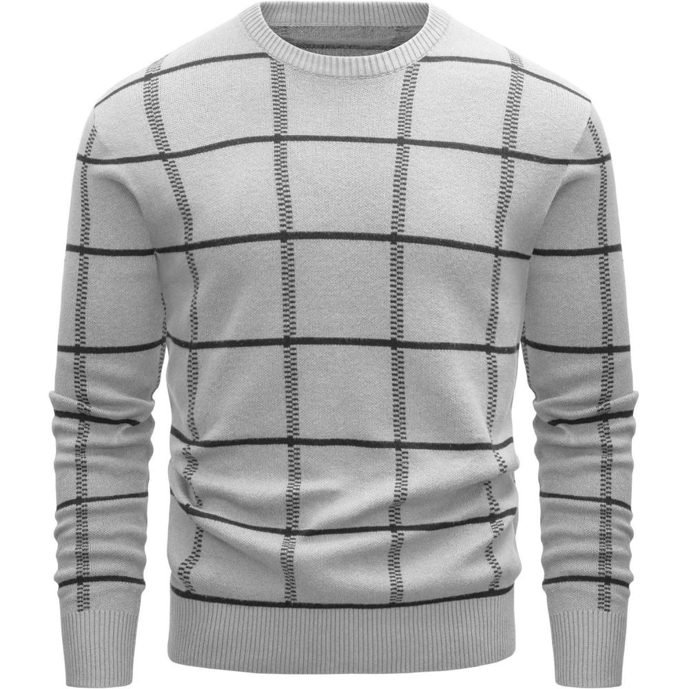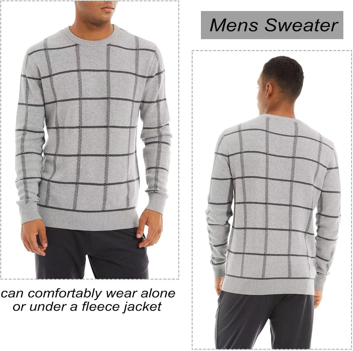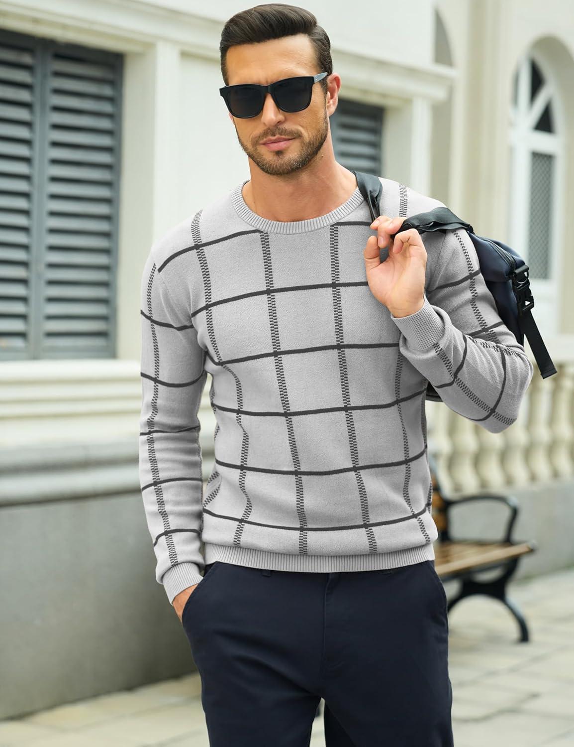 MAGCOMSEN Men’s Crewneck Sweaters Cotton Lightweight Plaid Pullover Sweater Warm Casual Fall Winter Sweatshirts(Light Grey)