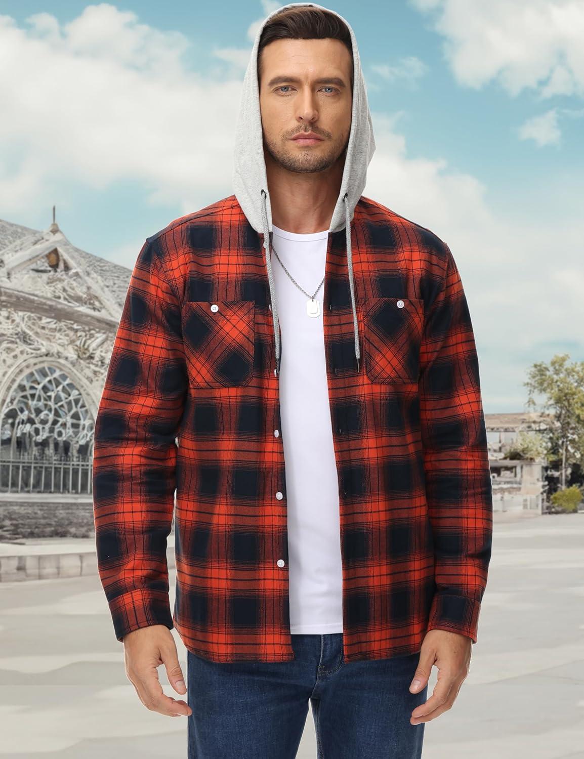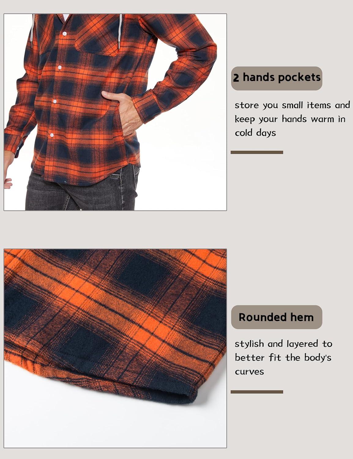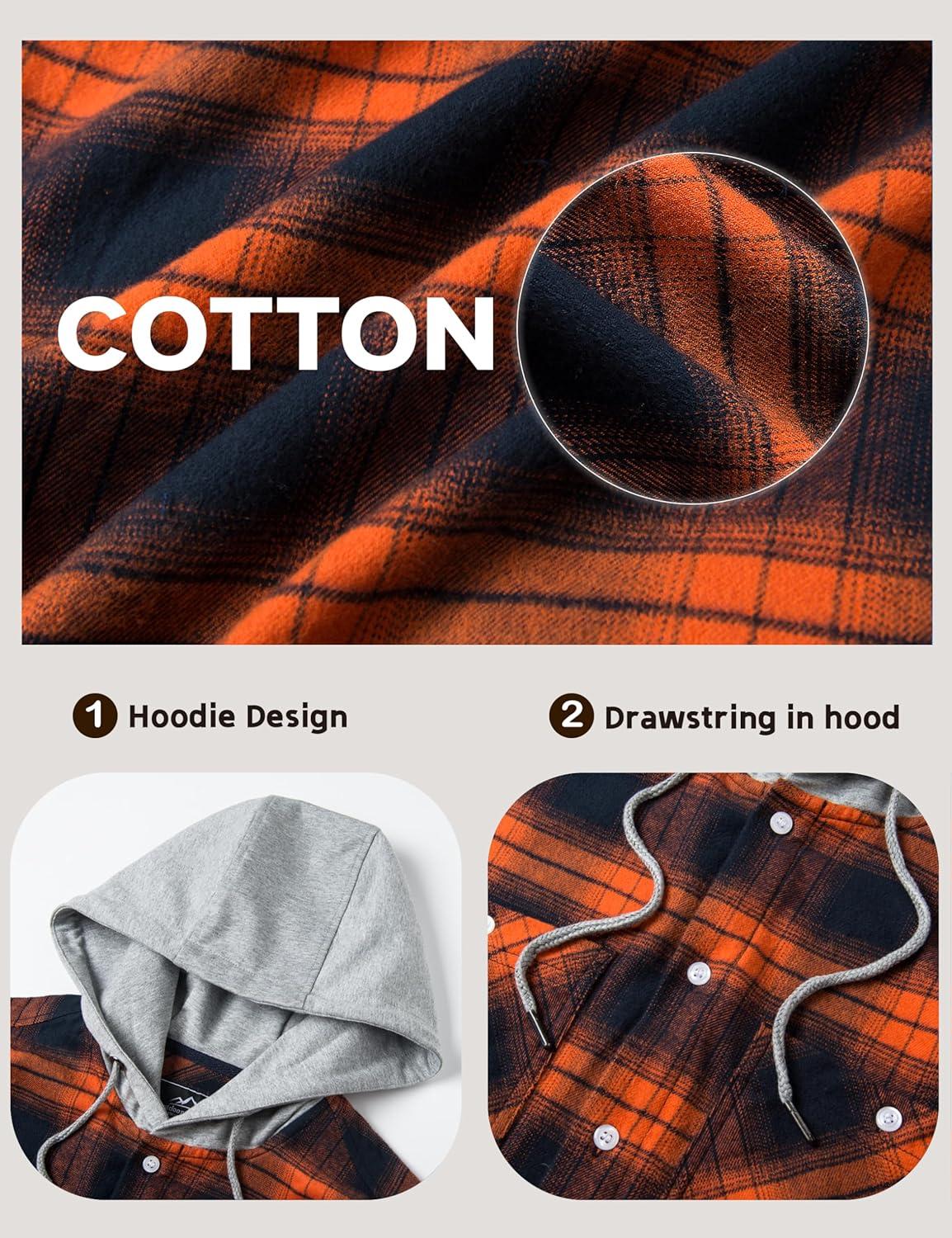 MAGCOMSEN Men’s Flannel Shirts Long Sleeve Button Down Flannel Shirt Jacket with Hood Casual Cotton Plaid Shirt(Orange)