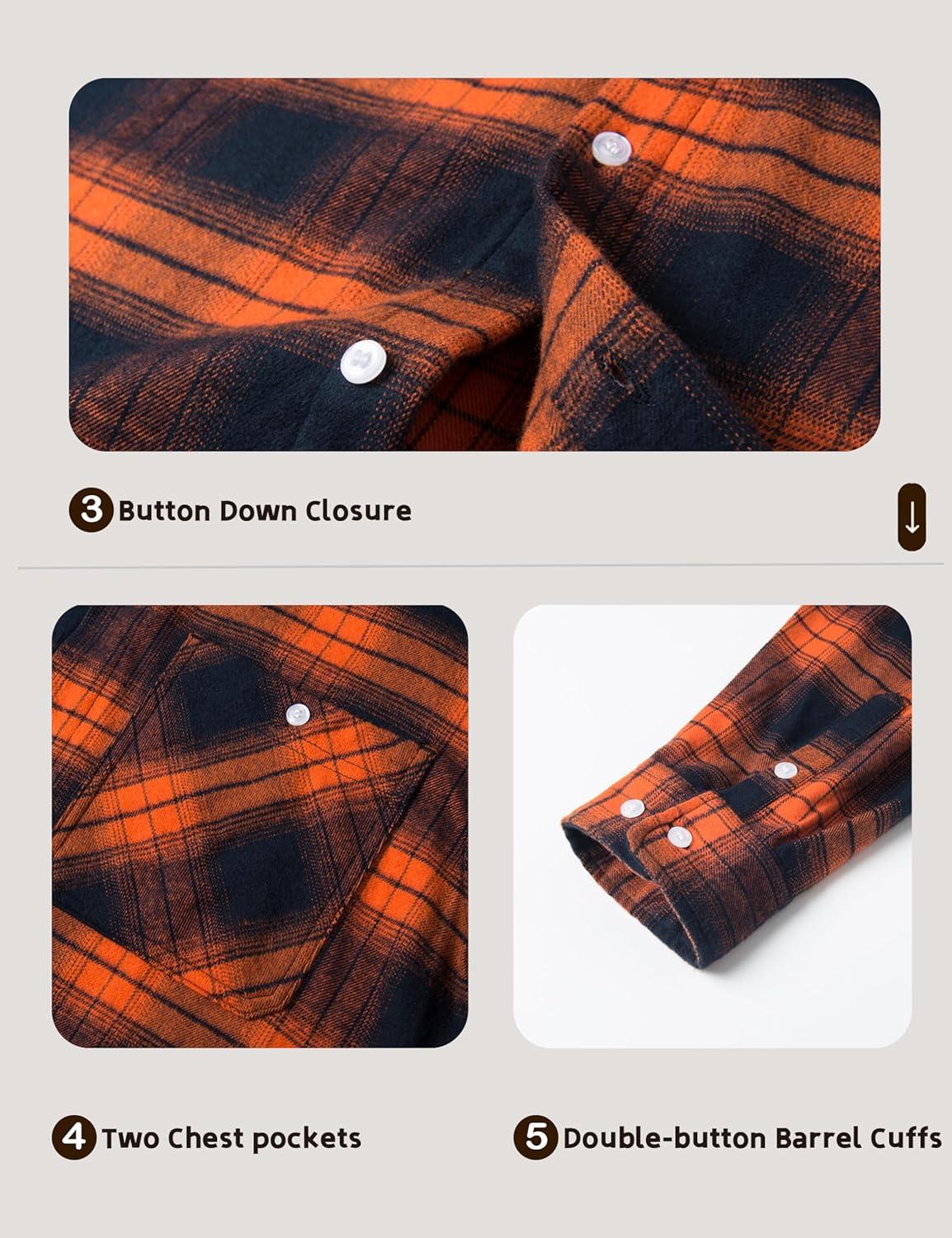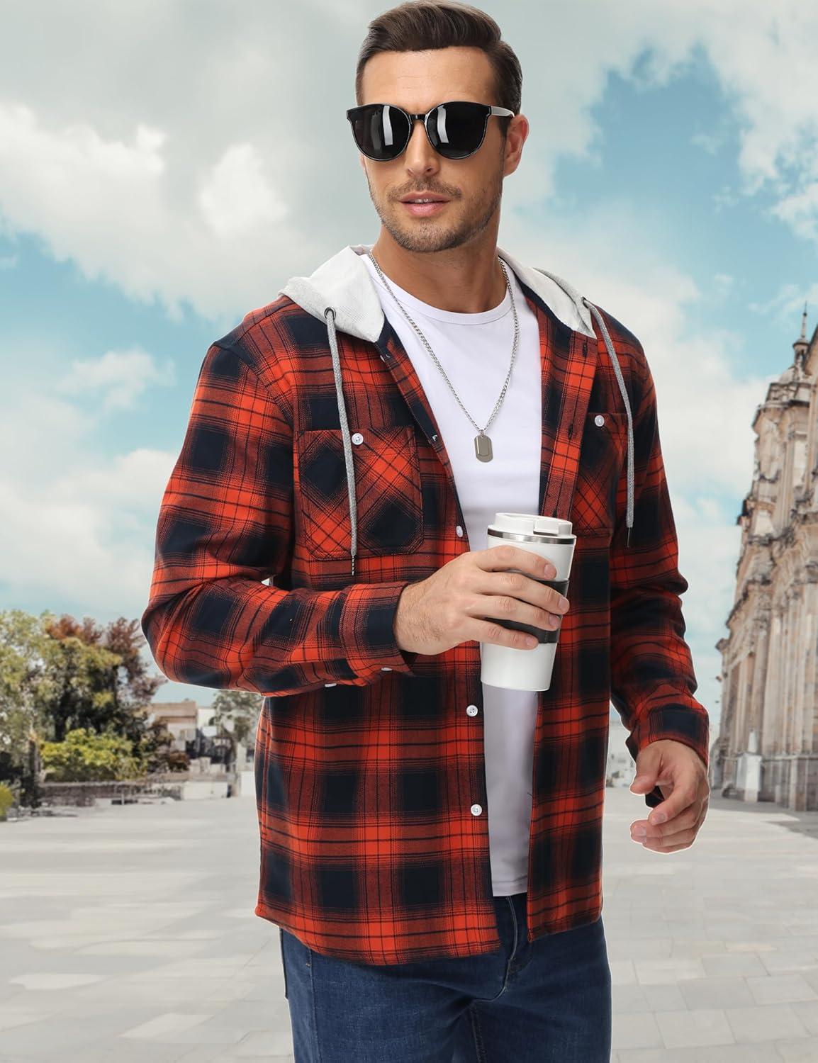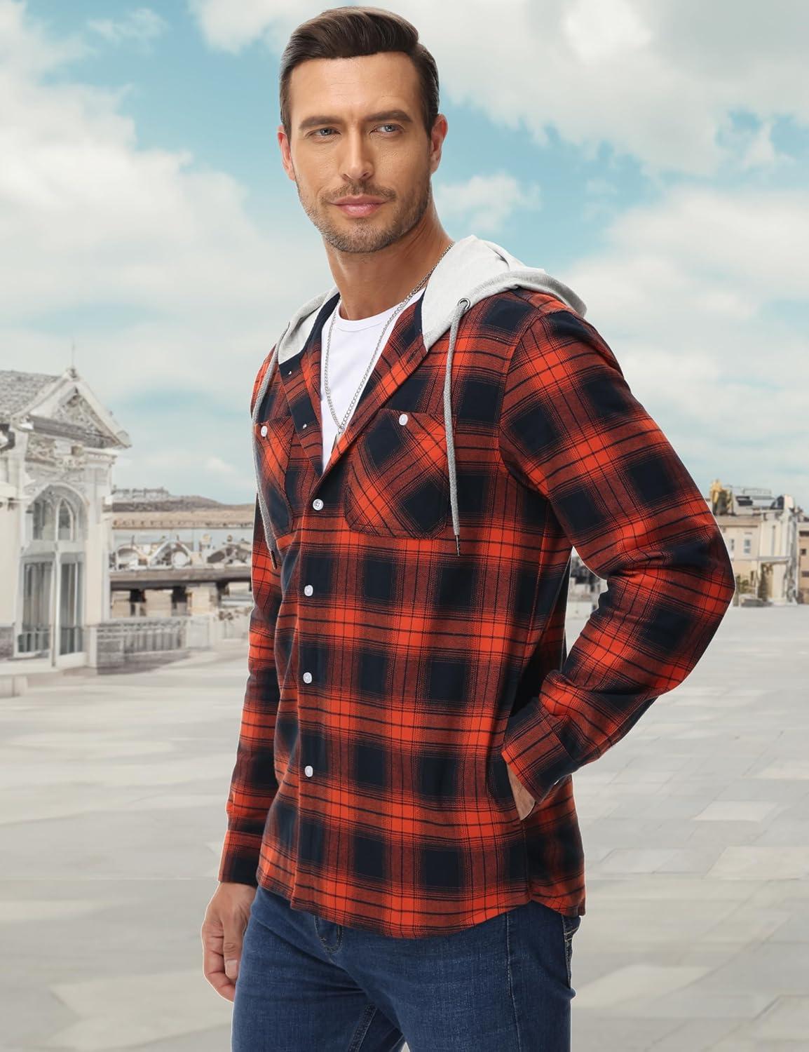 MAGCOMSEN Men’s Flannel Shirts Long Sleeve Button Down Flannel Shirt Jacket with Hood Casual Cotton Plaid Shirt(Orange)