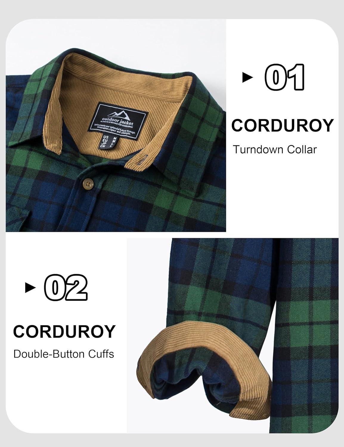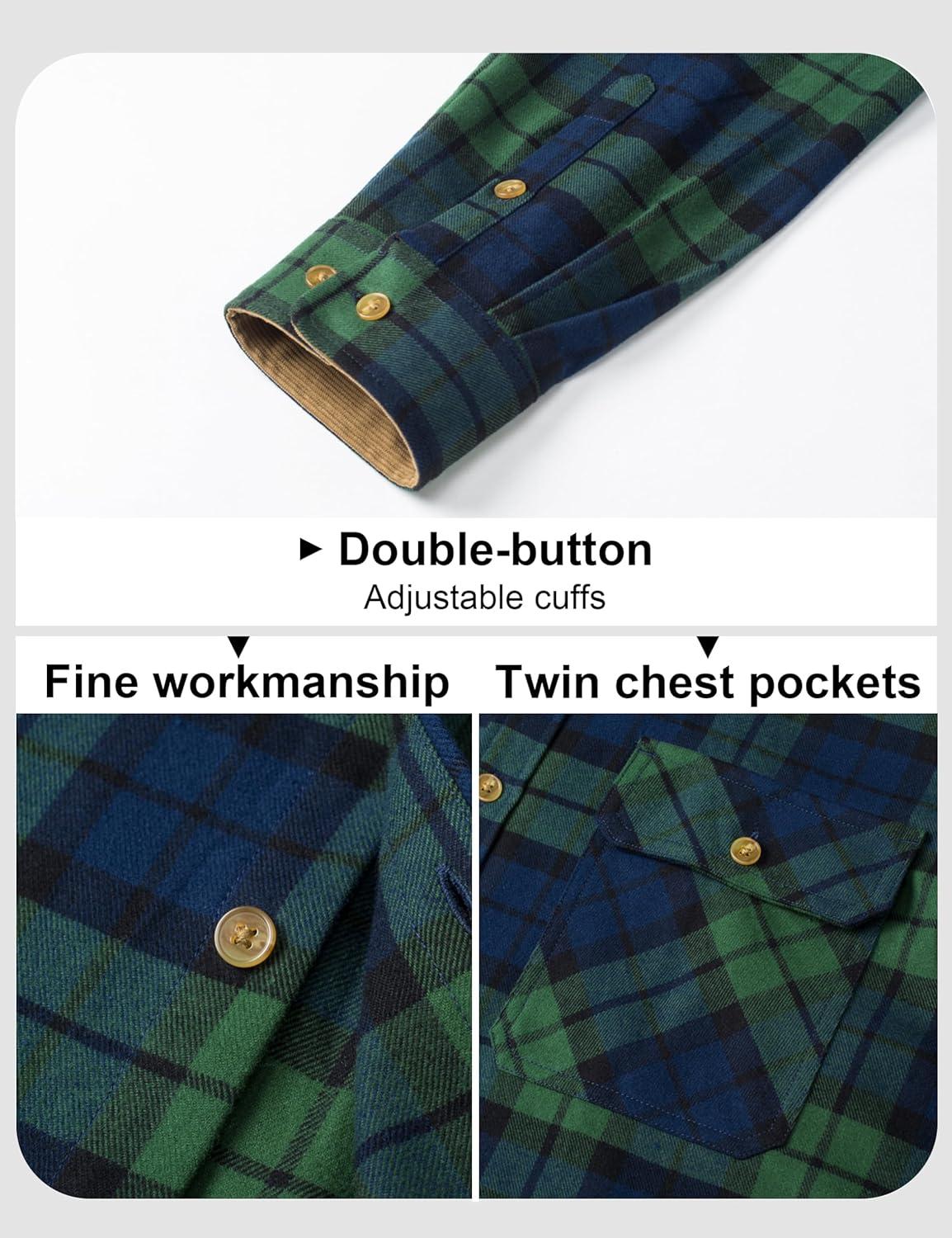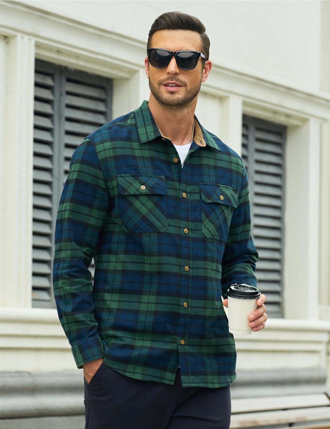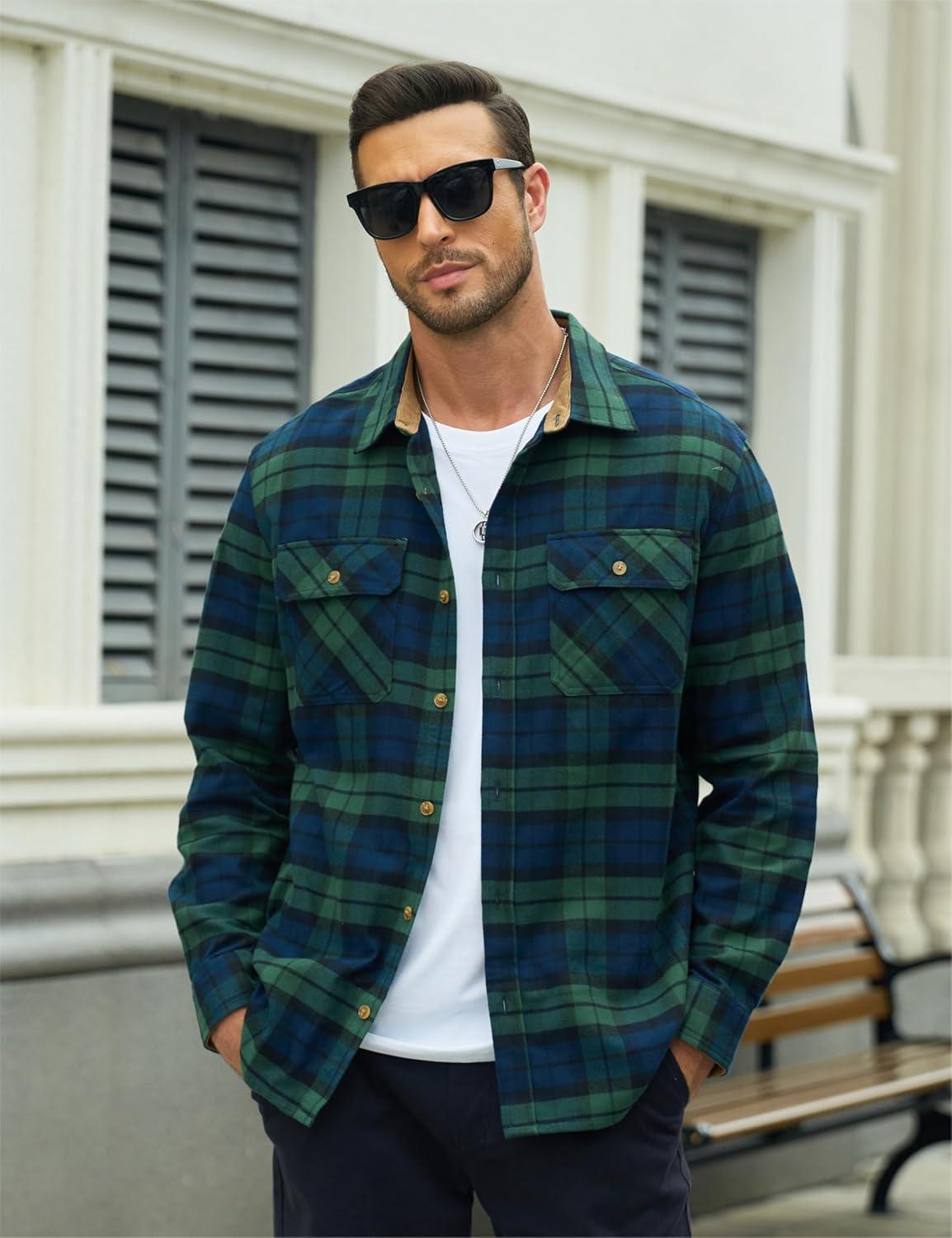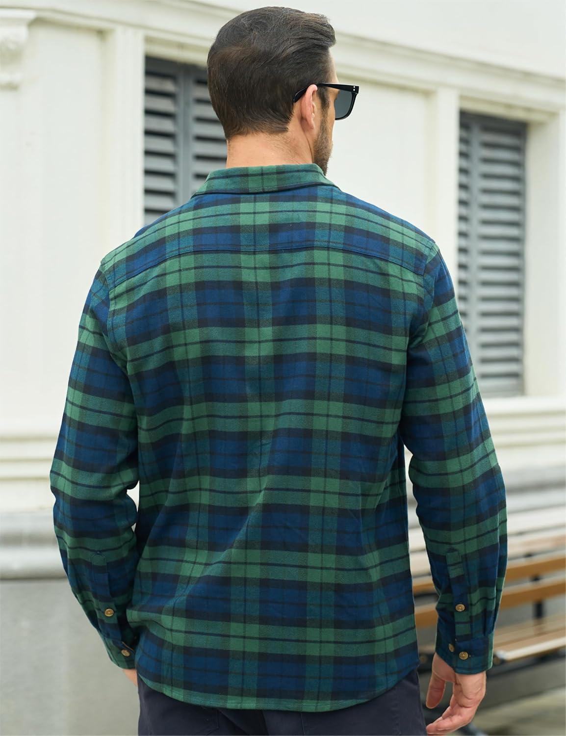 MAGCOMSEN Men’s Flannel Shirts Long Sleeve Plaid Shirt Button Up Casual Shirts Lightweight Shirt Jacket with 2 Pockets(Green)