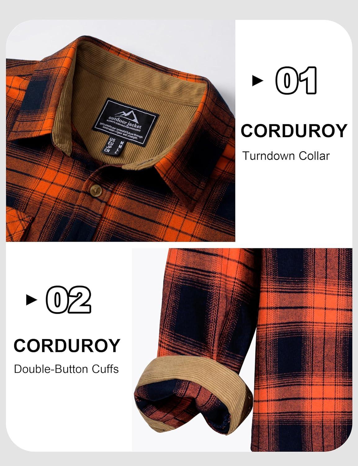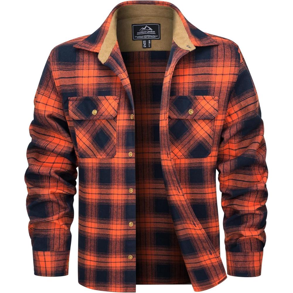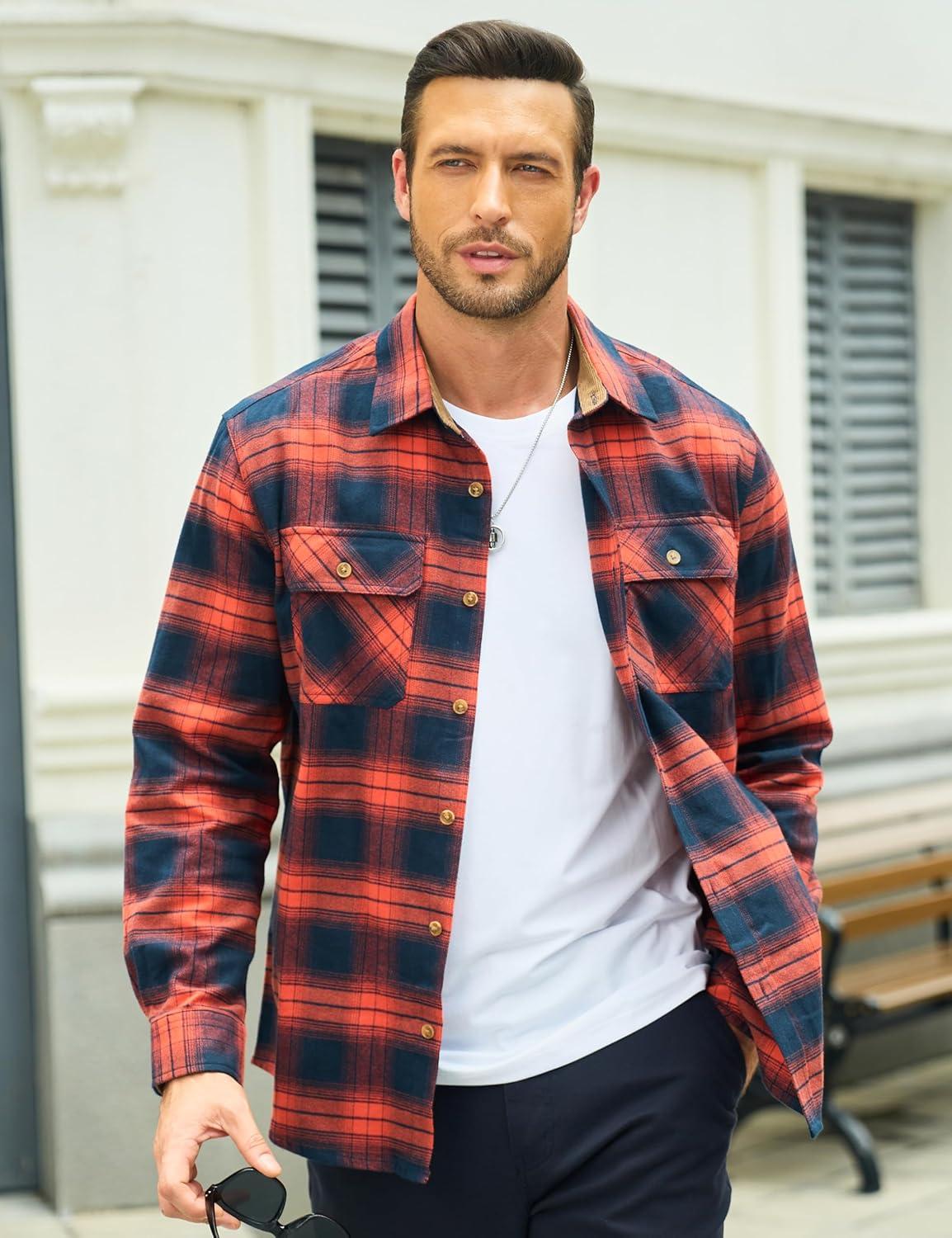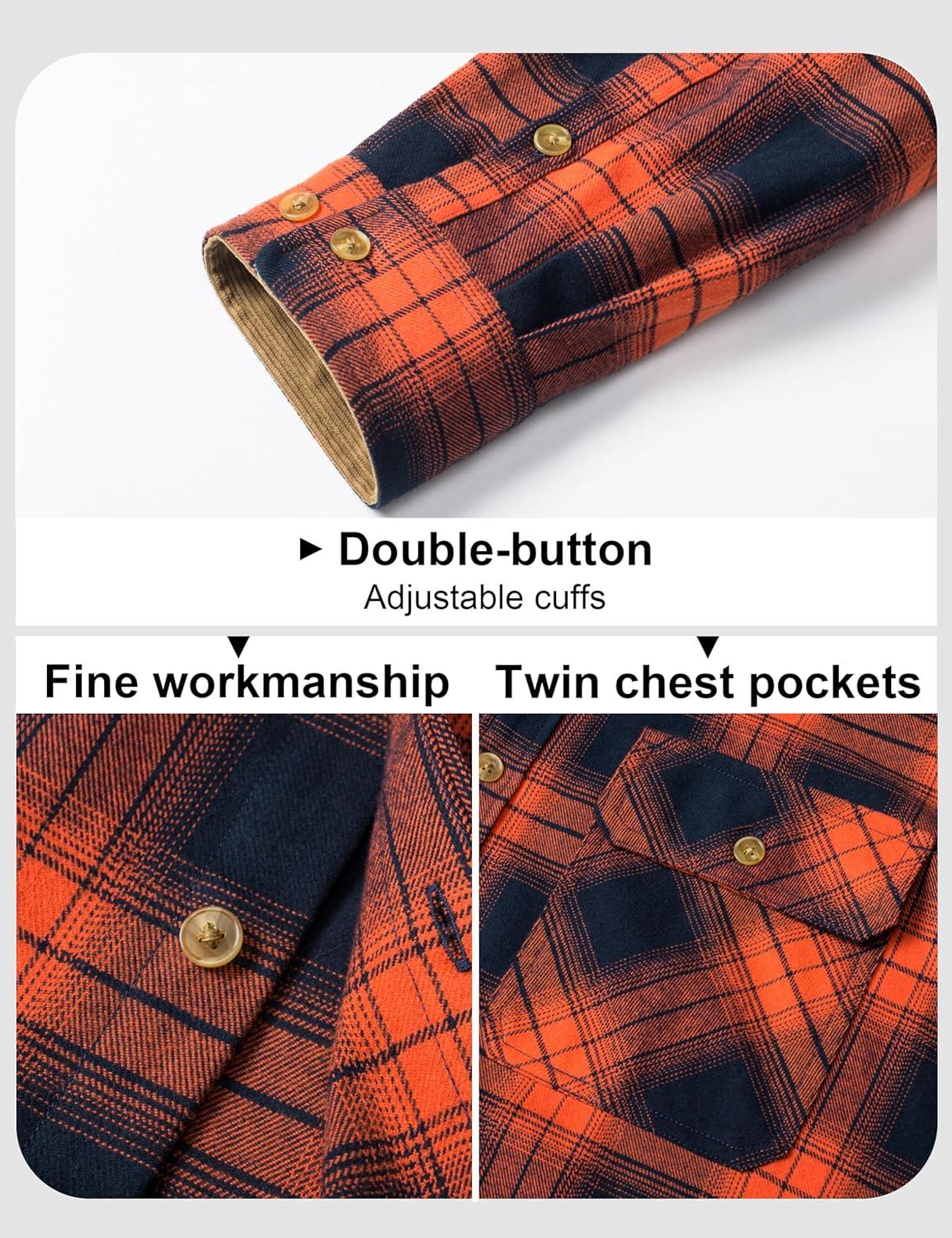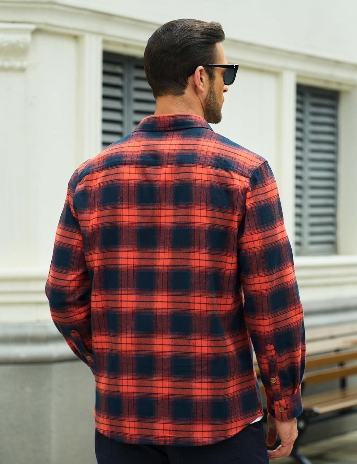 MAGCOMSEN Men’s Flannel Shirts Long Sleeve Plaid Shirt Button Up Casual Shirts Lightweight Shirt Jacket with 2 Pockets(Orange)