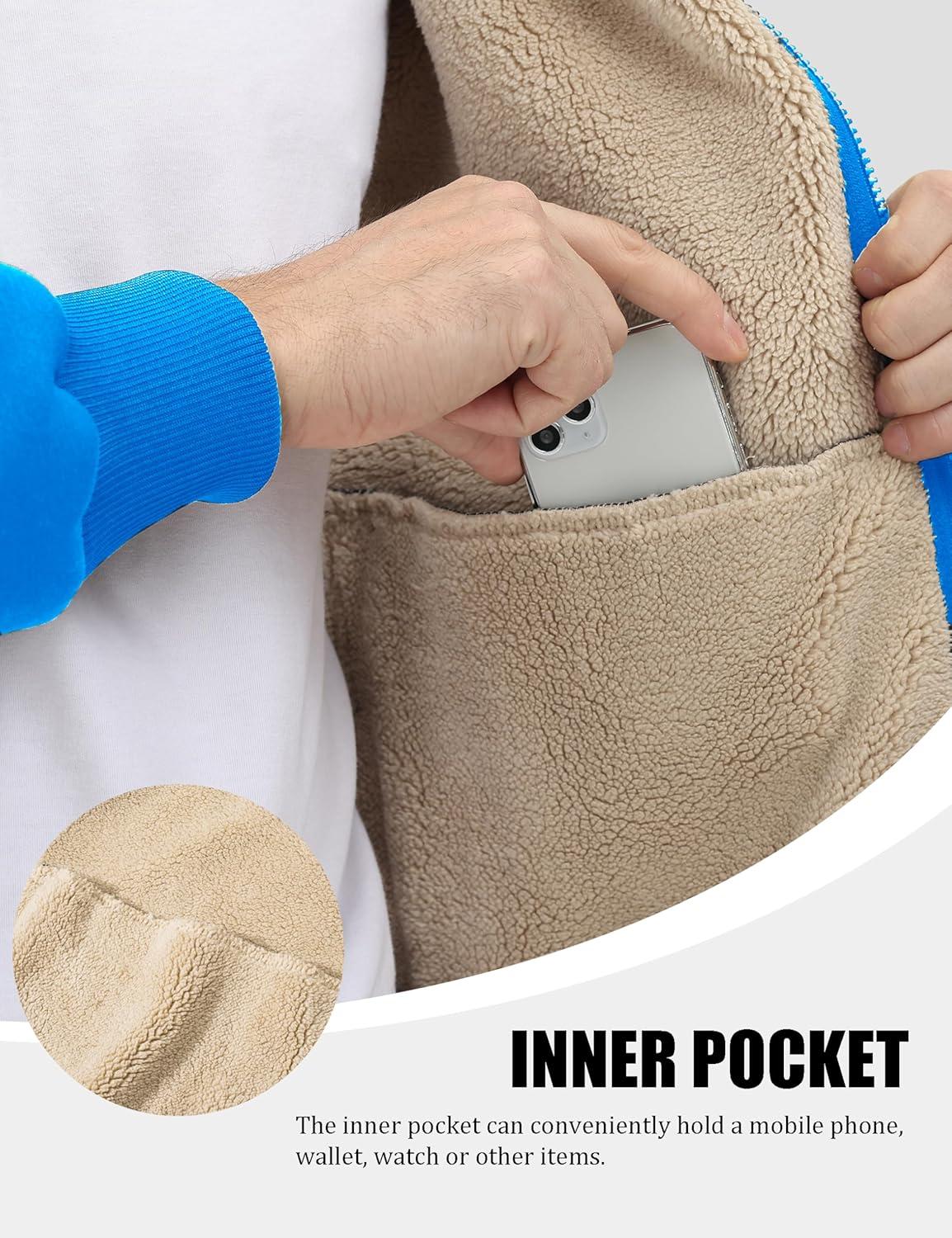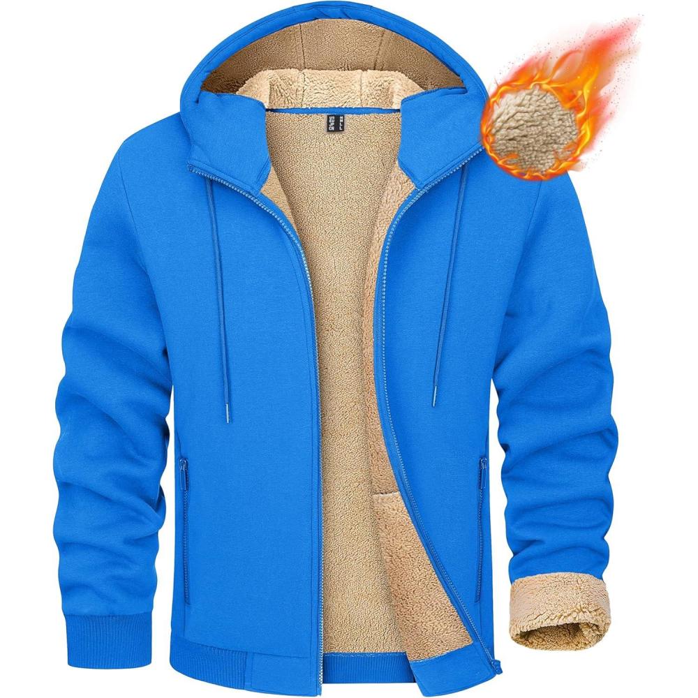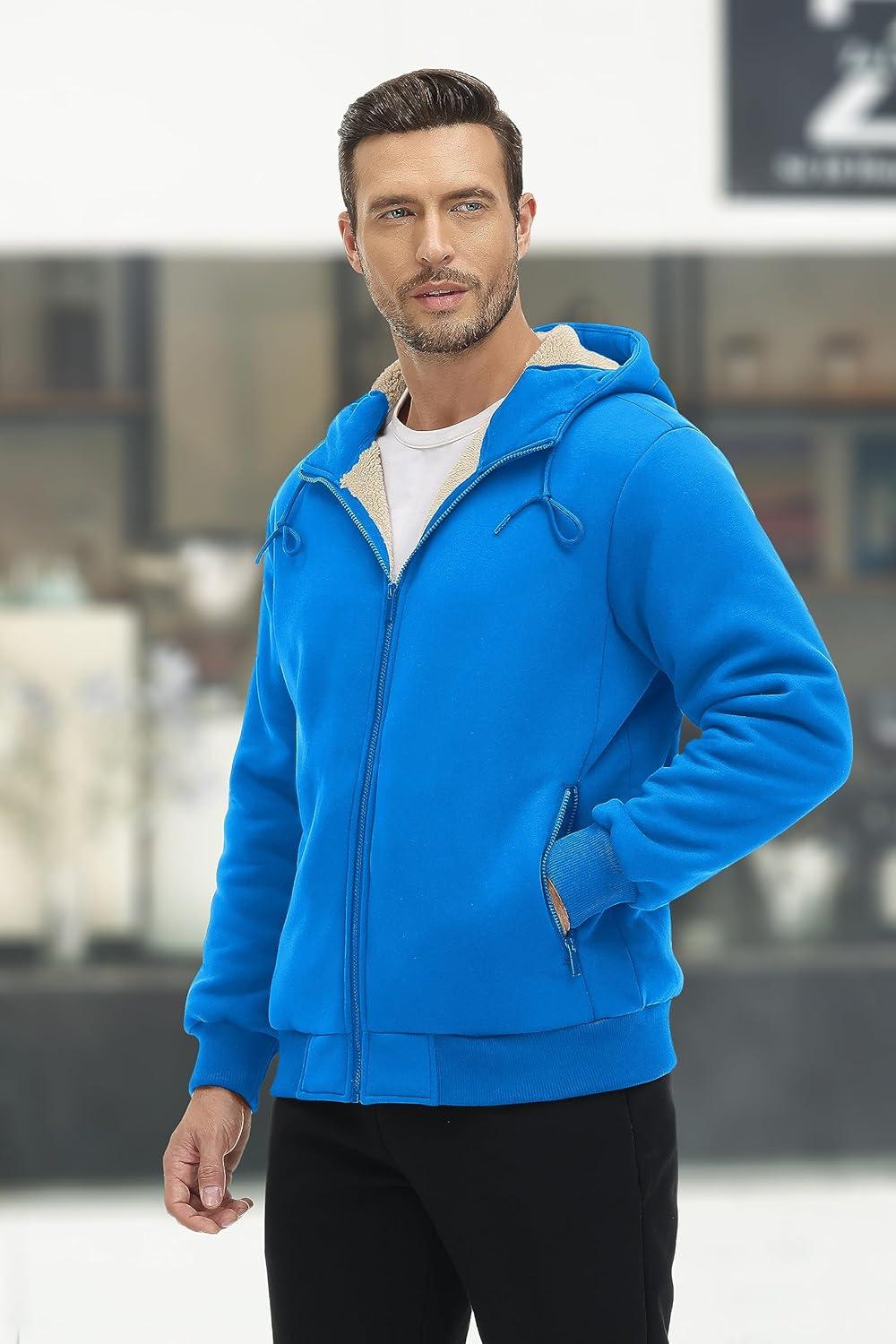 MAGCOMSEN Men’s Fleece Hoodie Sherpa Jacket Full Zip Warm Fuzzy Windproof Winter Coats Hooded Outwear(Azure)