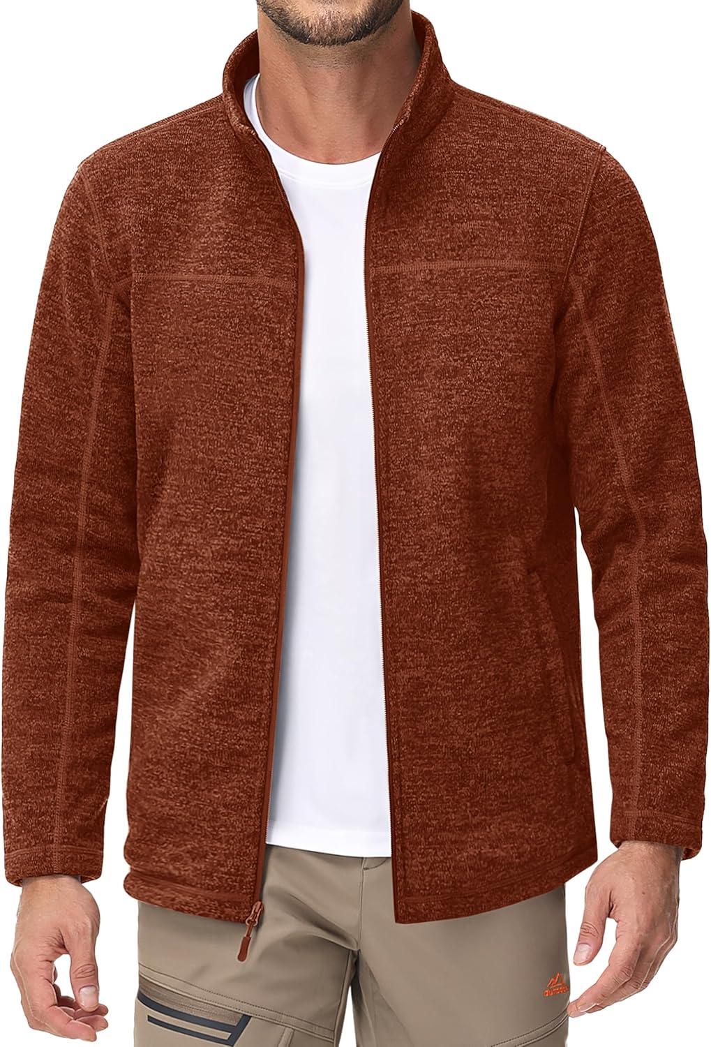 MAGCOMSEN Men’s Fleece Jacket Lightweight Full Zip Jackets Casual Soft Warm Winter Coats Zip Up Sweater with Pockets(Brick Red Heather)