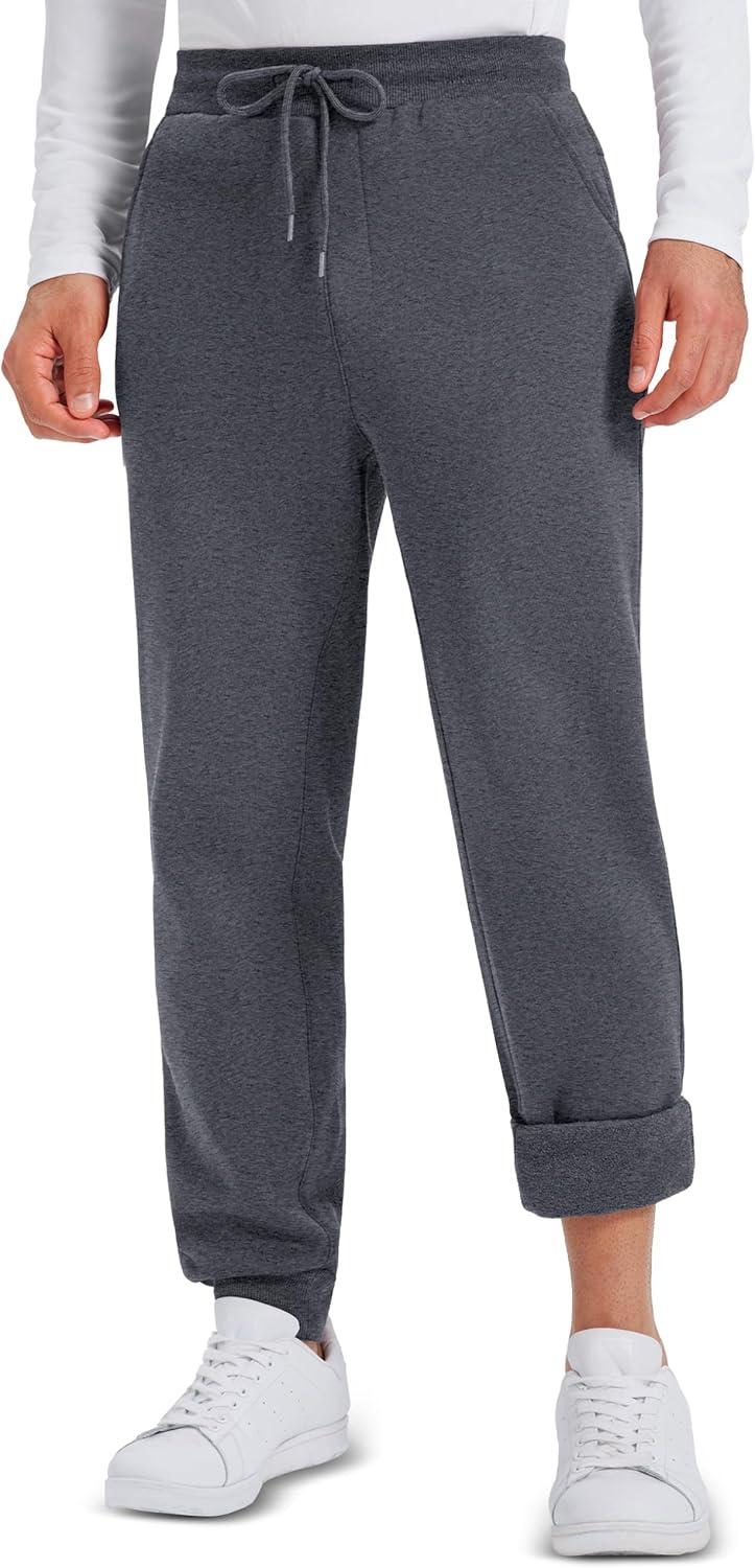 MAGCOMSEN Men’s Fleece Joggers Winter Thermal Warm Pants Thicken Fleece Lined Athletic Casual Sweatpants with 3 Pockets(Darkgrey)
