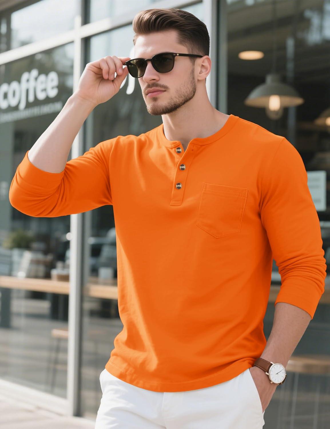 MAGCOMSEN Men’s Henley Long Sleeve Shirt Cotton Lightweight Tee Shirts Casual Basic Tees with Pocket(Orange)