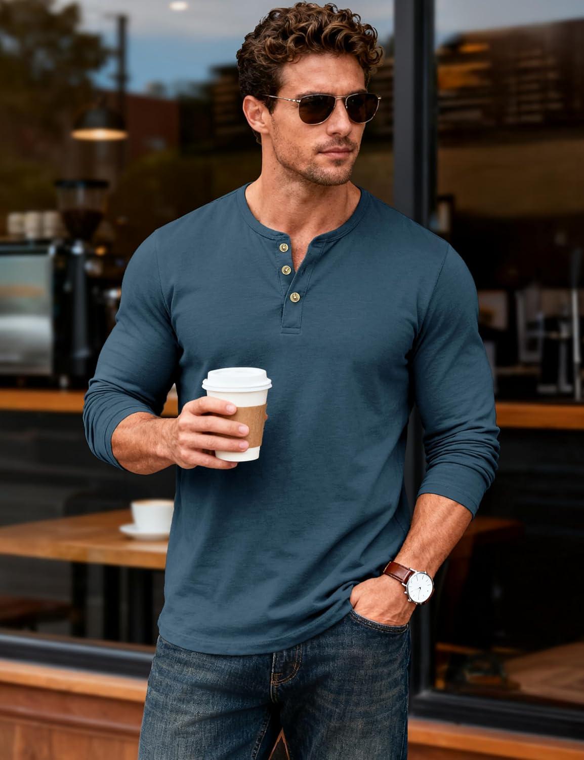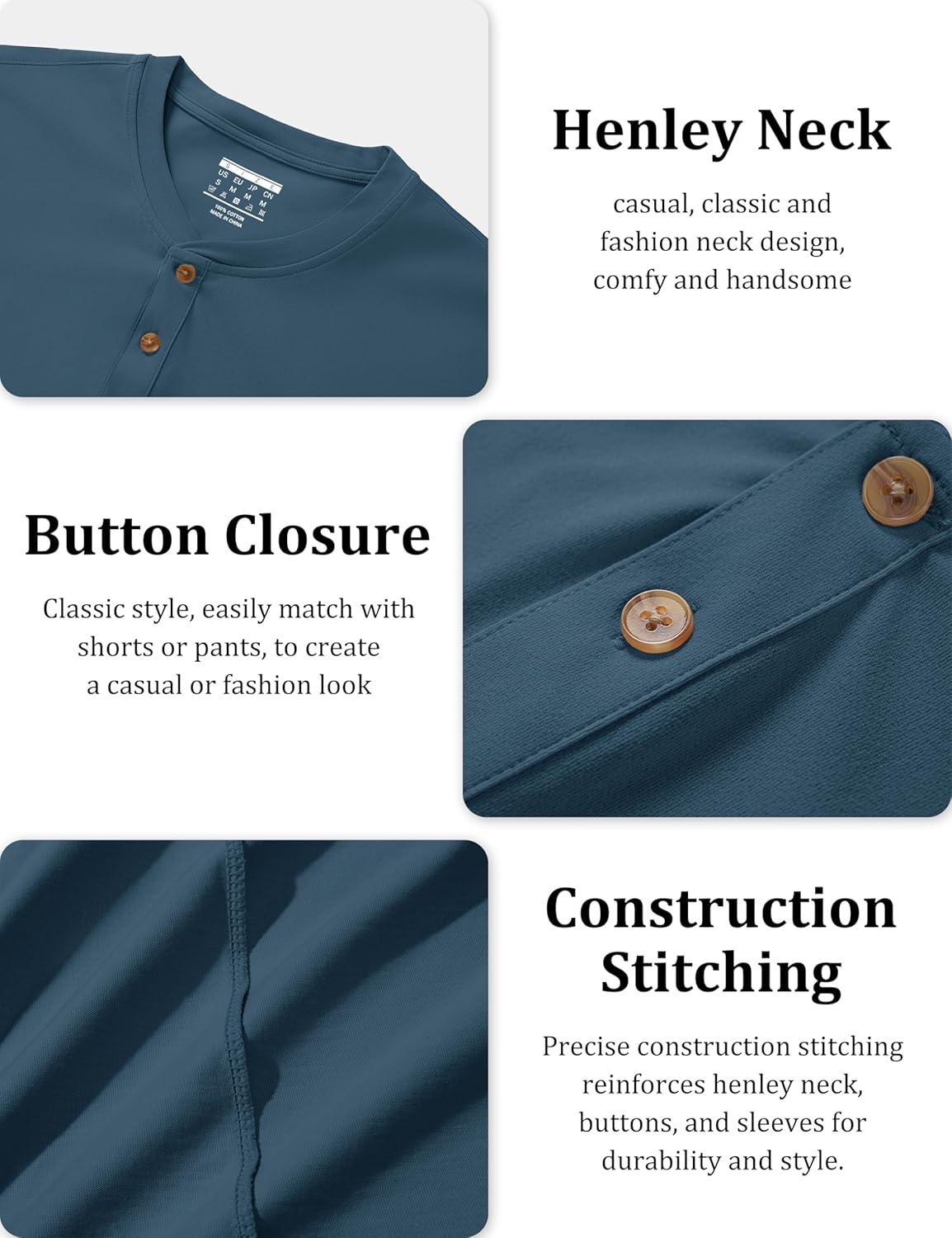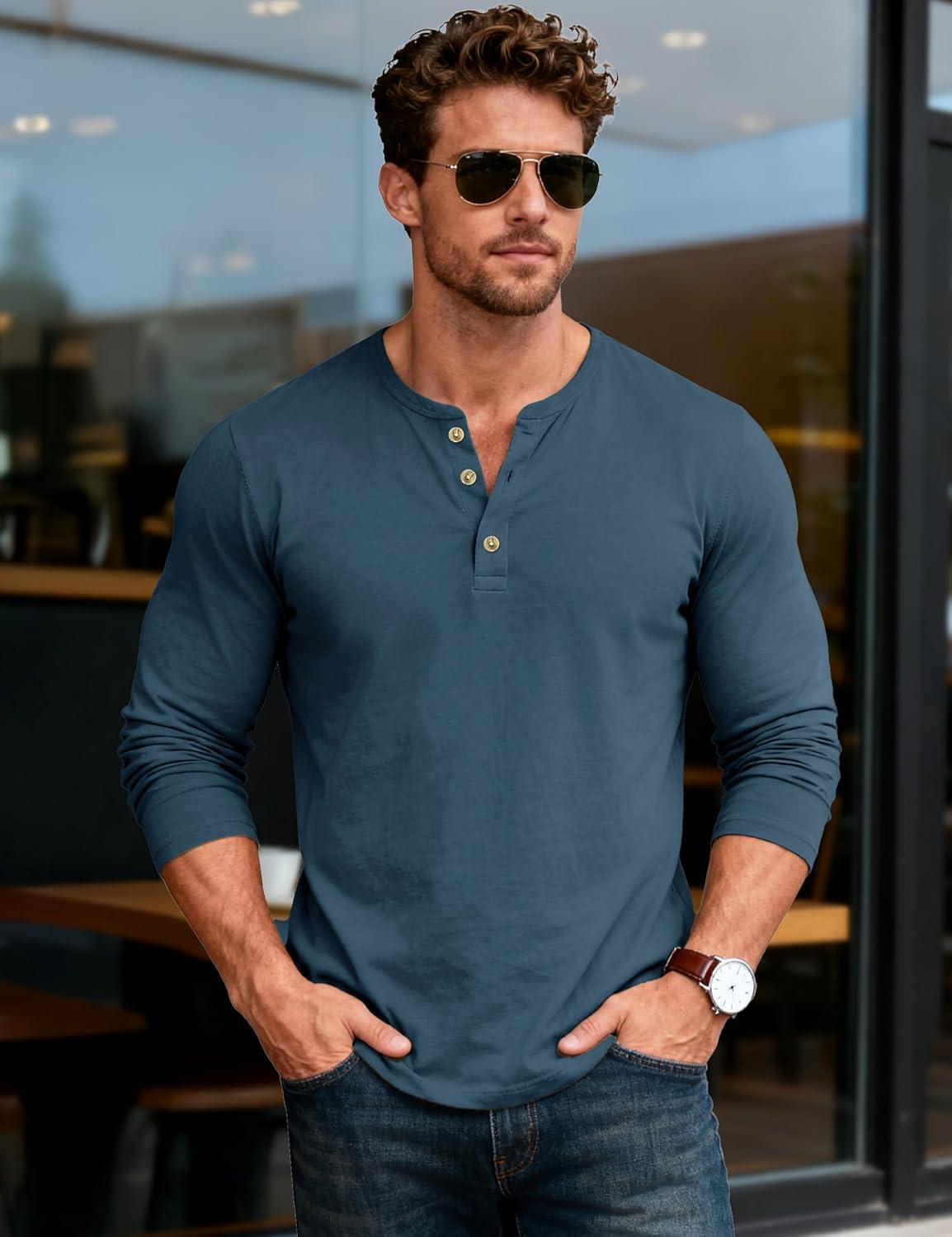 MAGCOMSEN Men’s Henley Shirts Long Sleeve Button Shirts Moisture Wicking Tees Casual Basic Solid Pullover Shirt(Denimblue)