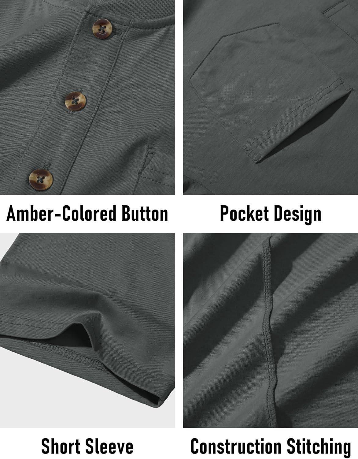MAGCOMSEN Men’s Henley Short Sleeve Shirt Cotton Lightweight Tee Shirts Casual Summer Basic Tees with Pocket(Dark Grey)