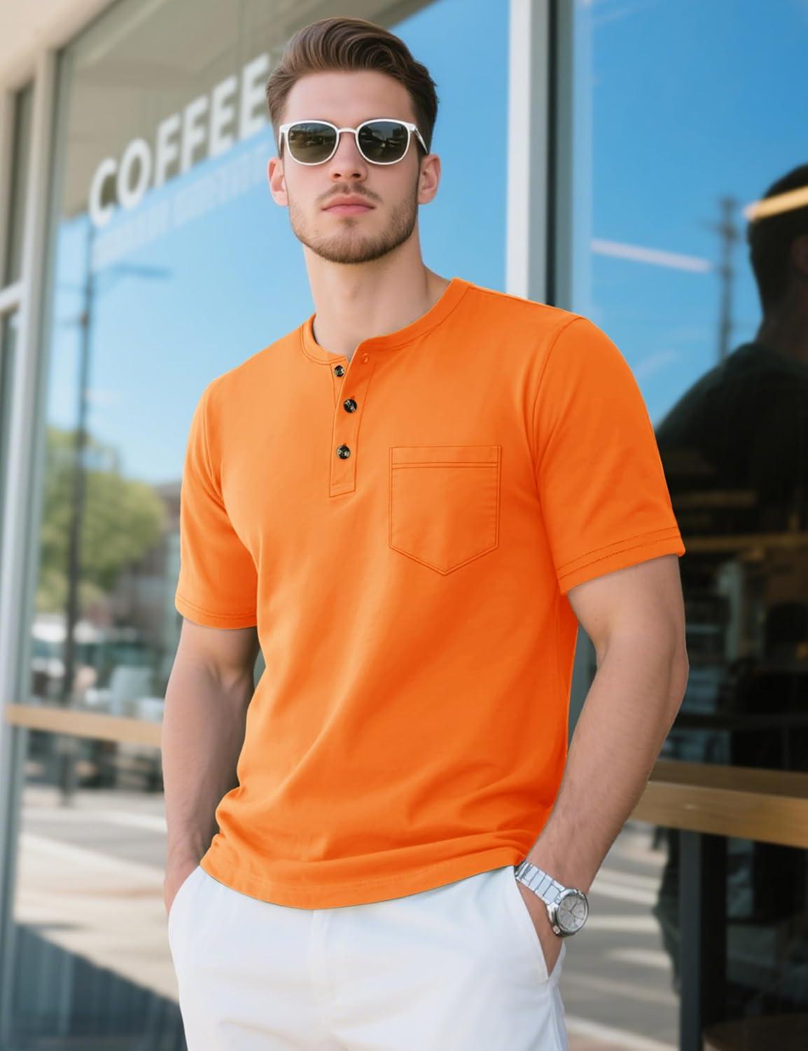 MAGCOMSEN Men’s Henley Short Sleeve Shirt Cotton Lightweight Tee Shirts Casual Summer Basic Tees with Pocket(Orange)