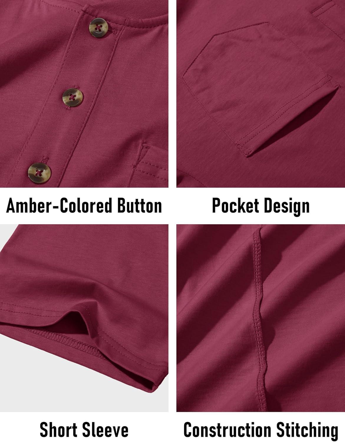 MAGCOMSEN Men’s Henley Short Sleeve Shirt Cotton Lightweight Tee Shirts Casual Summer Basic Tees with Pocket(Wine Red)