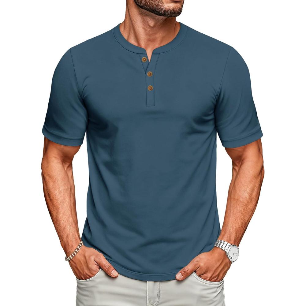 MAGCOMSEN Men’s Henley Short Sleeve Shirt UPF 80+ Lightweight T-Shirts Moisture Wicking Tee Casual Summer Basic Solid Shirt(Denimblue)