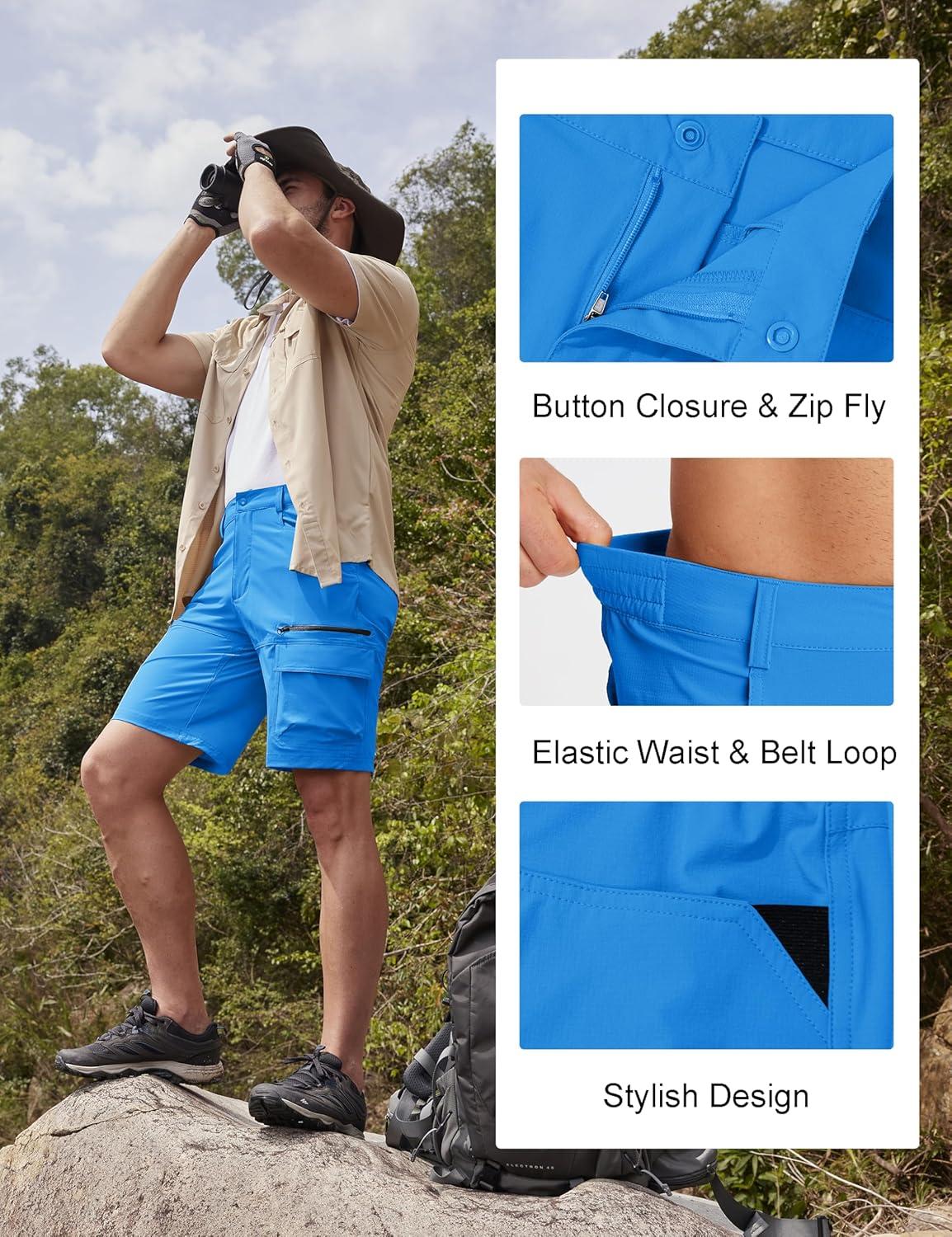 MAGCOMSEN Men’s Hiking Cargo Shorts 9″ Quick Dry Lightweight Summer Casual Shorts for Men Work Golf Outdoor 5 Pockets(Azure)