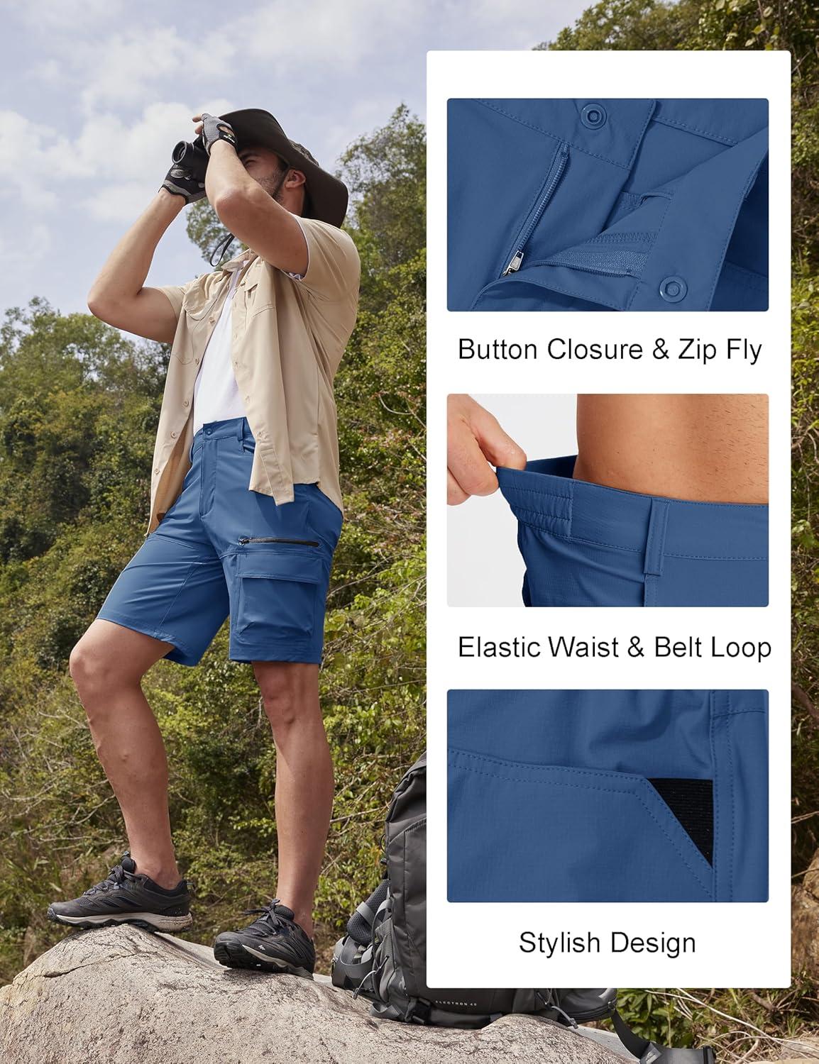 MAGCOMSEN Men’s Hiking Cargo Shorts 9″ Quick Dry Lightweight Summer Casual Shorts for Men Work Golf Outdoor 5 Pockets(Blue Grey)