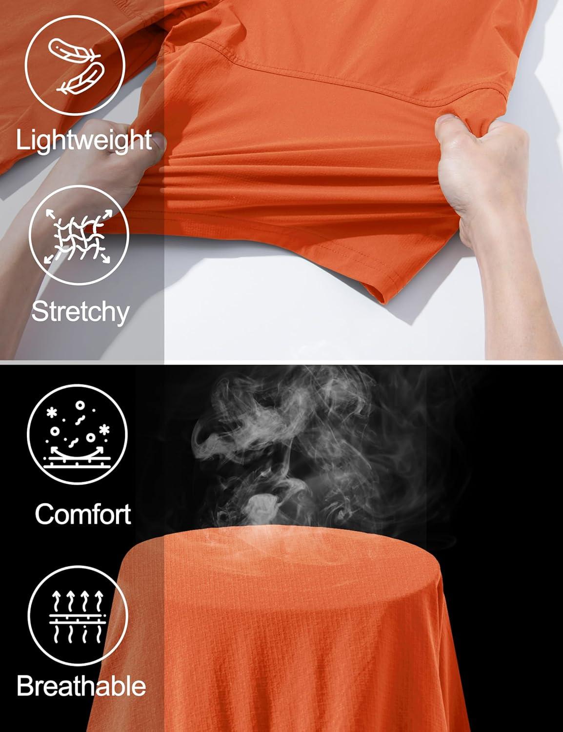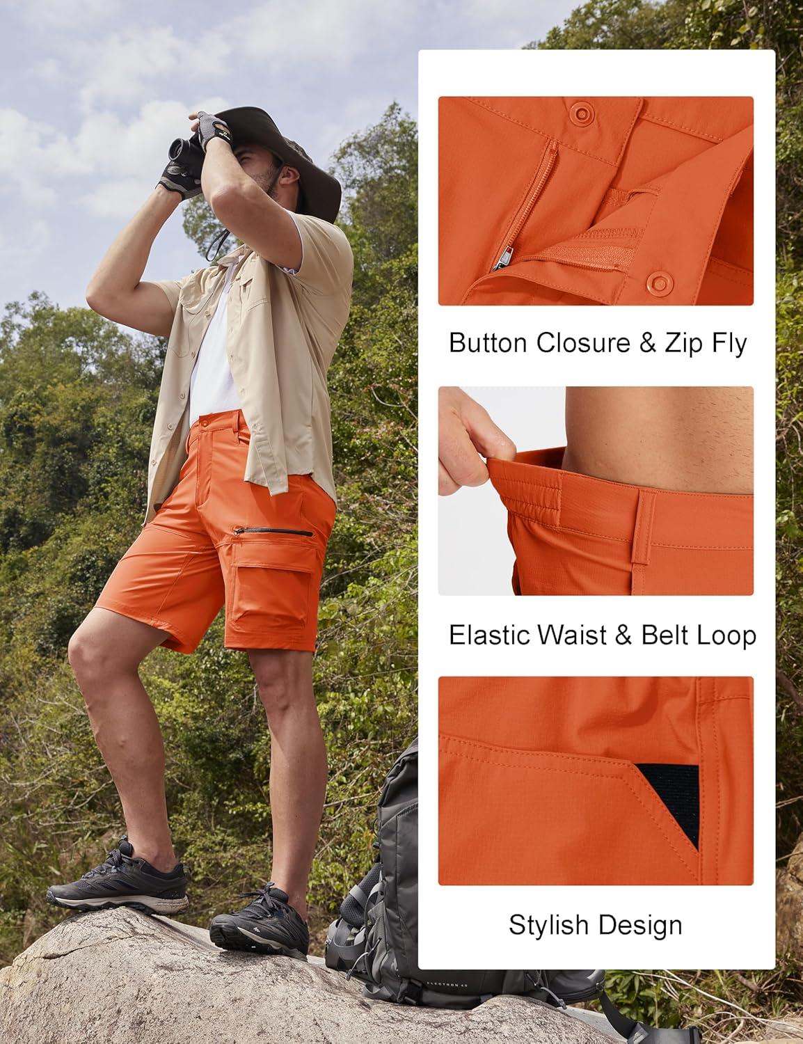 MAGCOMSEN Men’s Hiking Cargo Shorts 9″ Quick Dry Lightweight Summer Casual Shorts for Men Work Golf Outdoor 5 Pockets(Orange)
