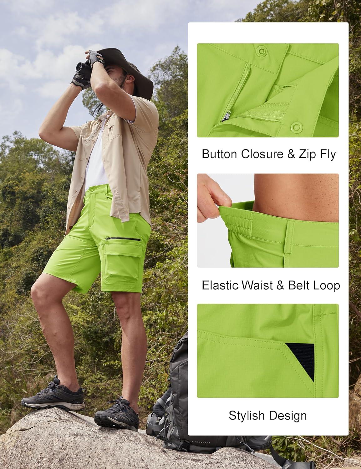 MAGCOMSEN Men’s Hiking Cargo Shorts 9″ Quick Dry Lightweight Summer Casual Shorts for Men Work Golf Outdoor 5 Pockets(Yellow Green)