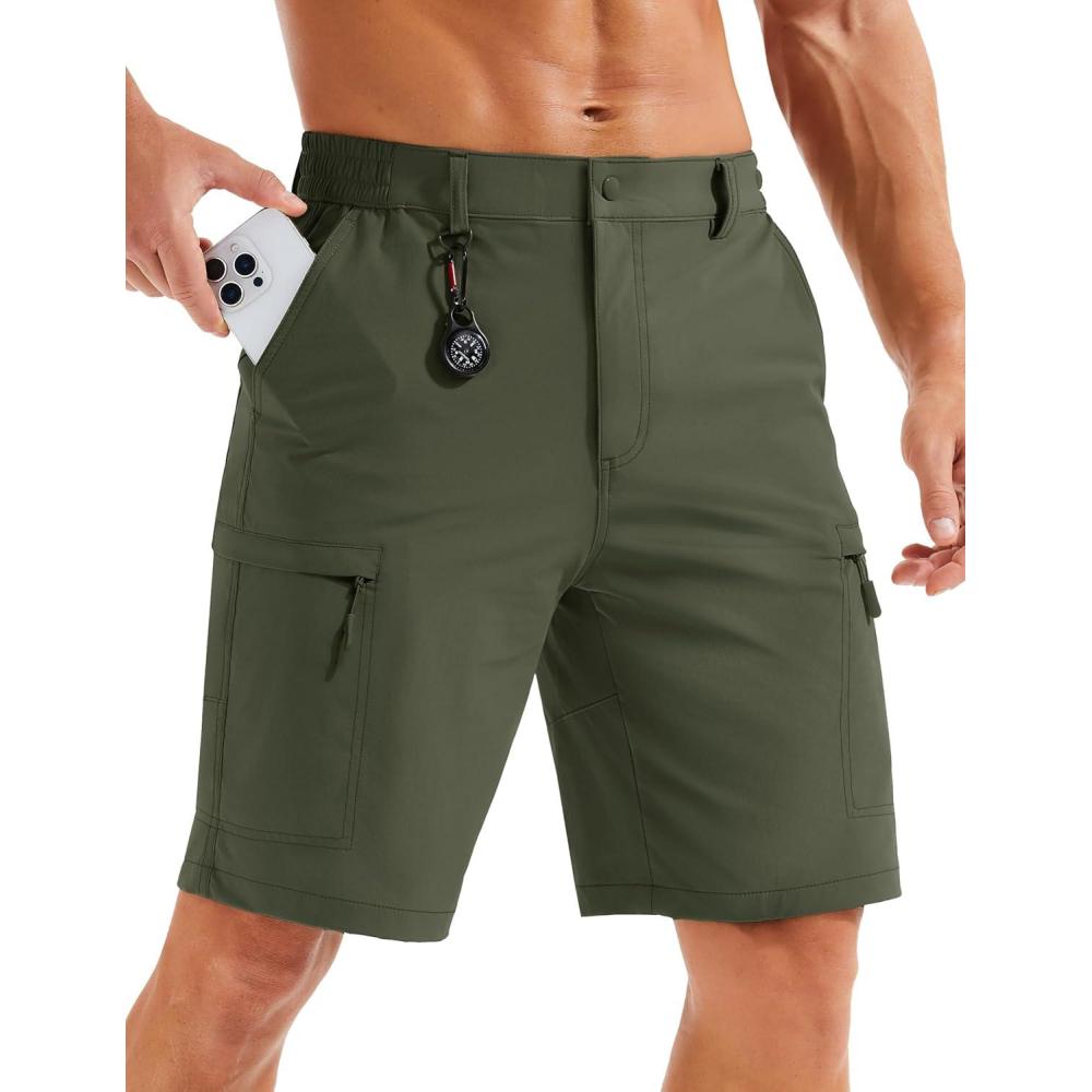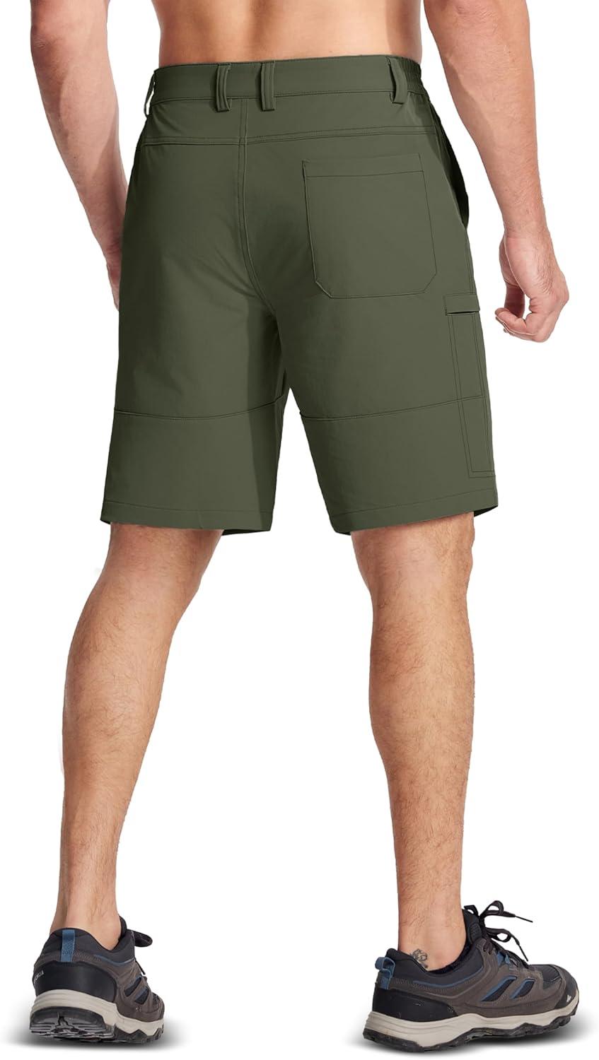 MAGCOMSEN Men’s Hiking Cargo Shorts Quick Dry Lightweight 9″ Golf Shorts Summer Casual Work Outdoor with 5 Zipper Pockets(Army Green)