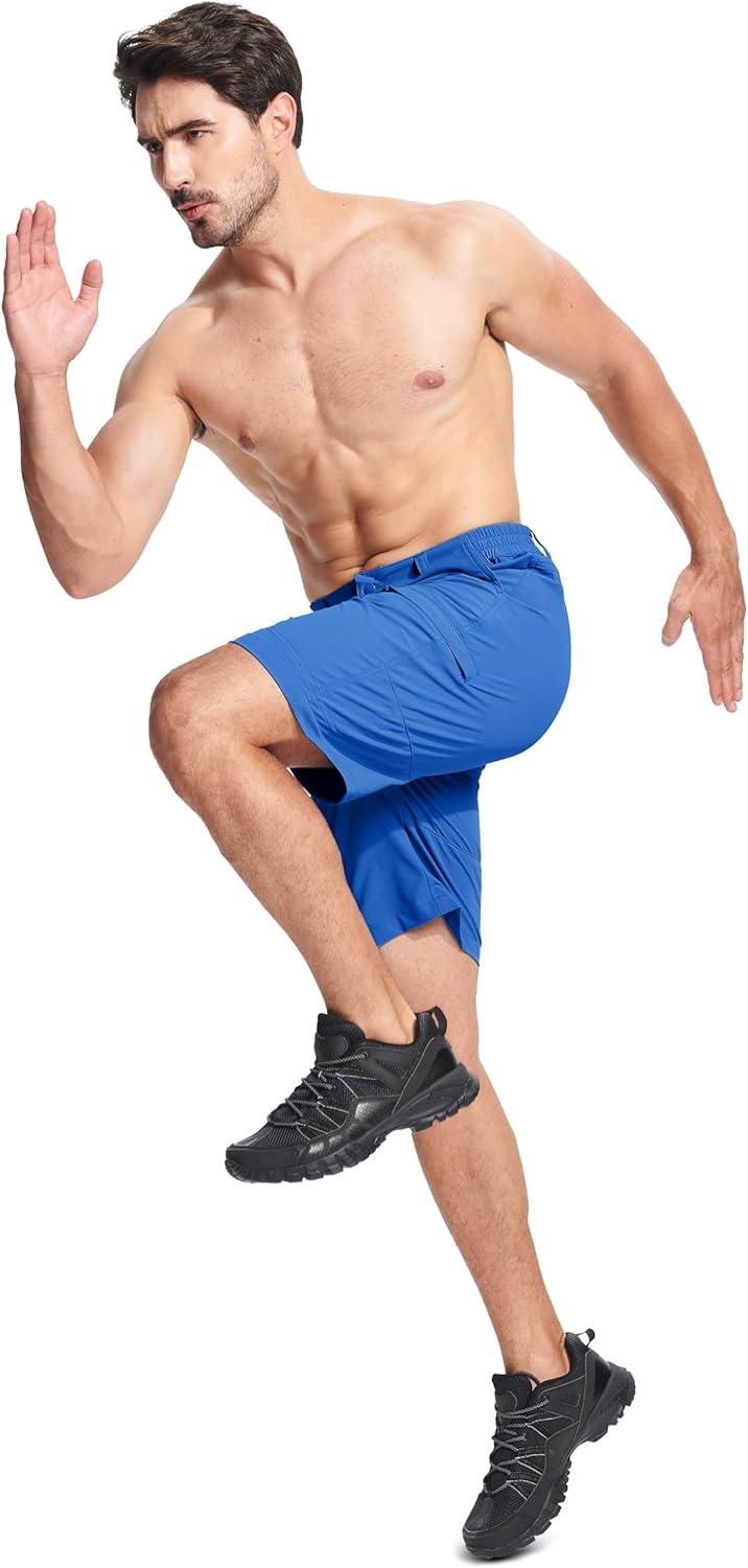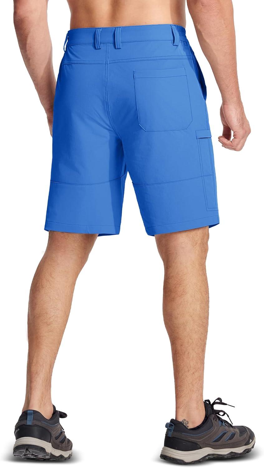 MAGCOMSEN Men’s Hiking Cargo Shorts Quick Dry Lightweight 9″ Golf Shorts Summer Casual Work Outdoor with 5 Zipper Pockets(Azure)