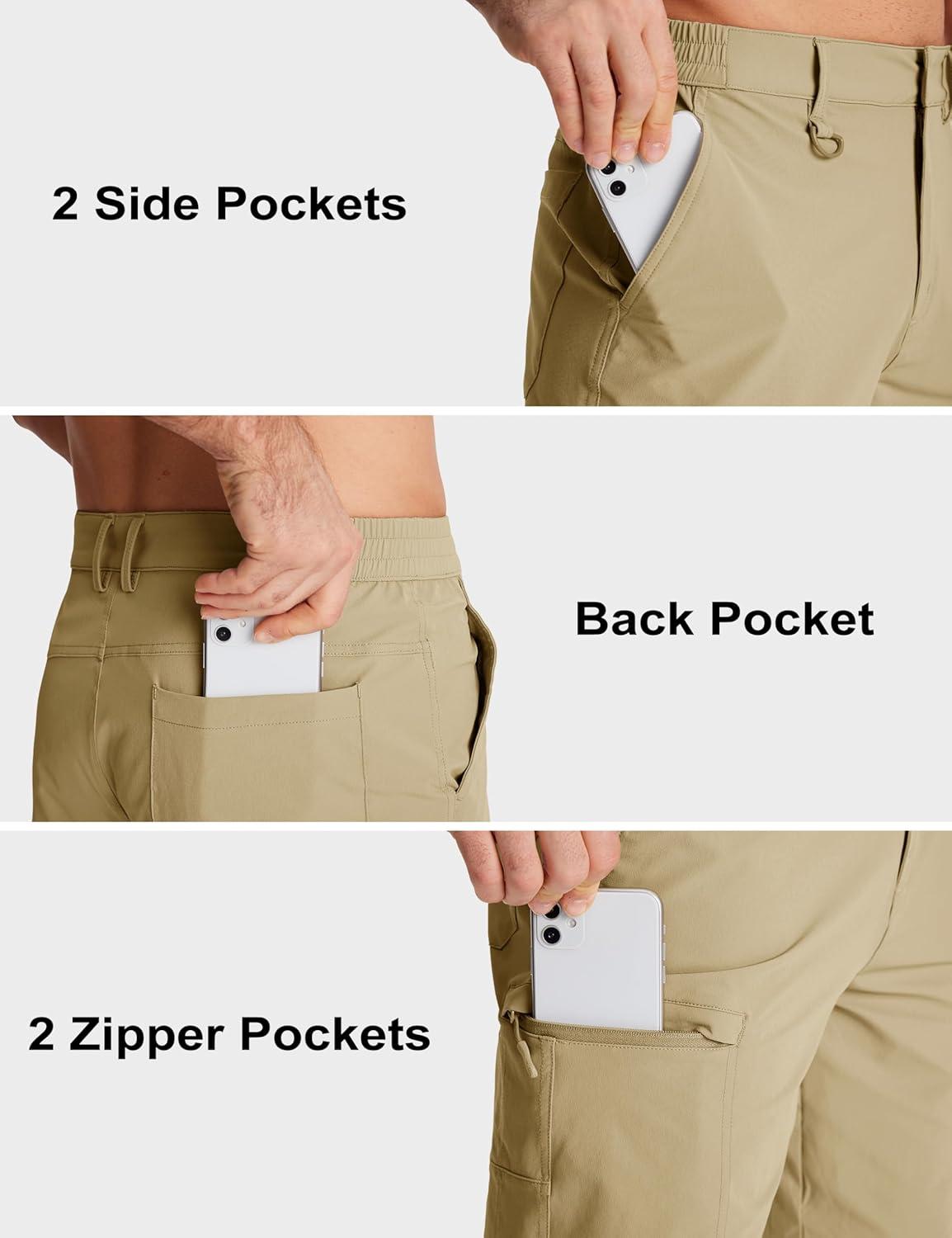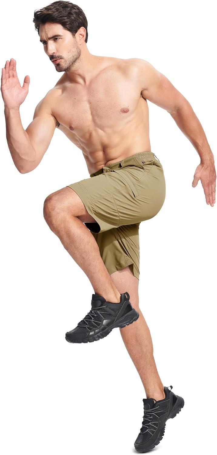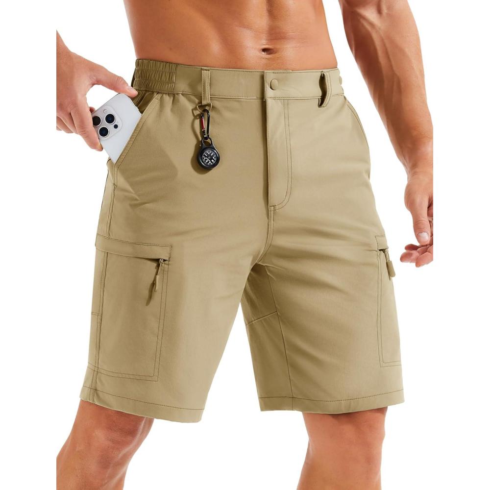 MAGCOMSEN Men’s Hiking Cargo Shorts Quick Dry Lightweight 9″ Golf Shorts Summer Casual Work Outdoor with 5 Zipper Pockets(Khaki)