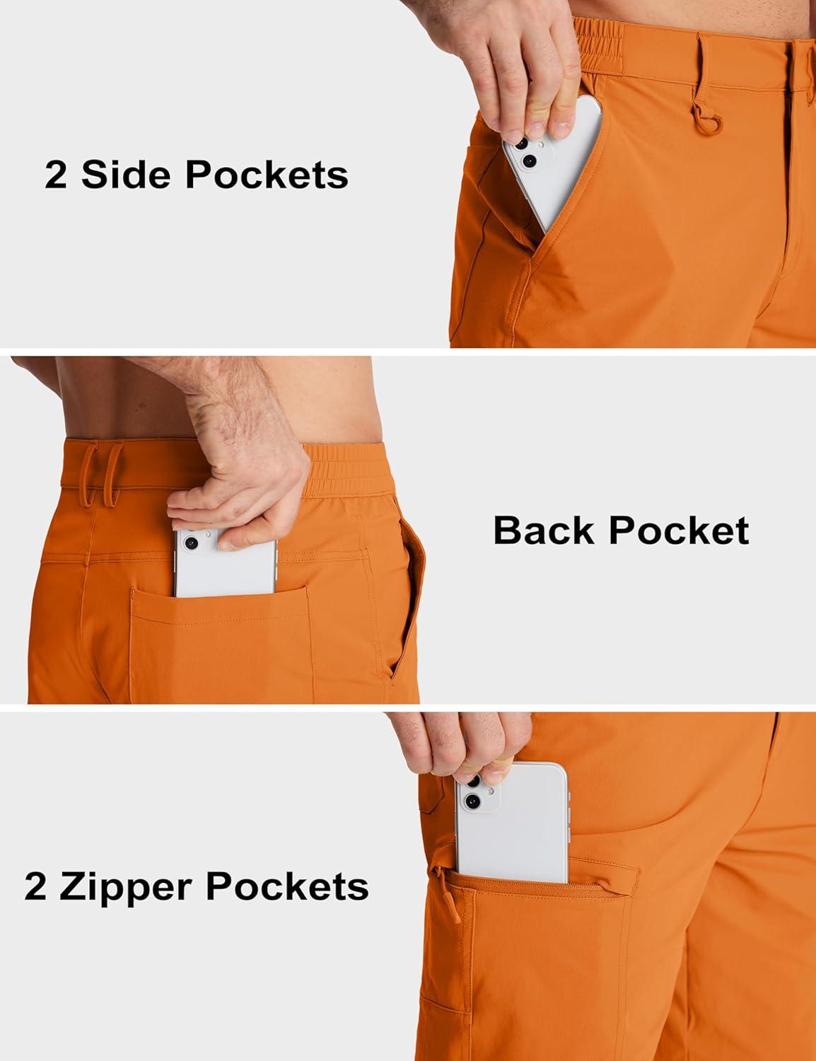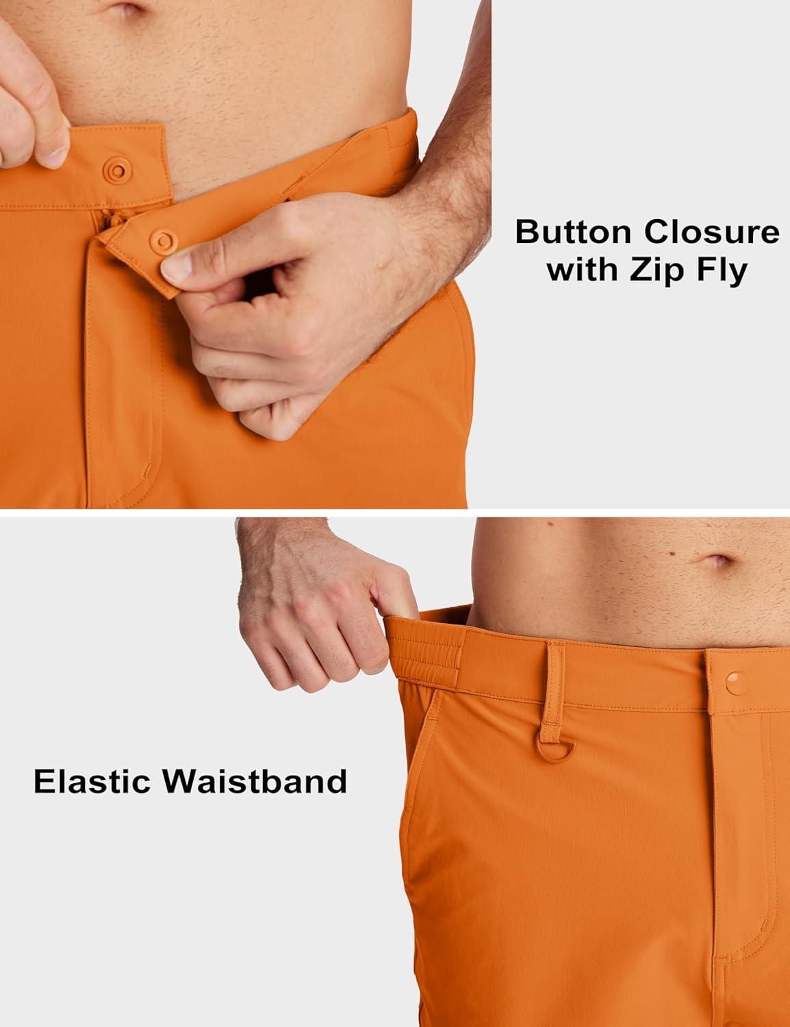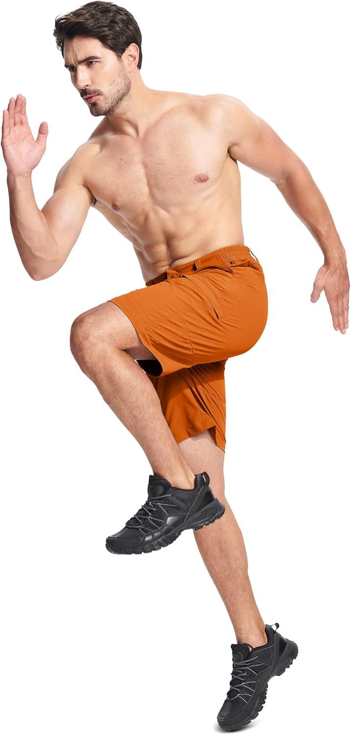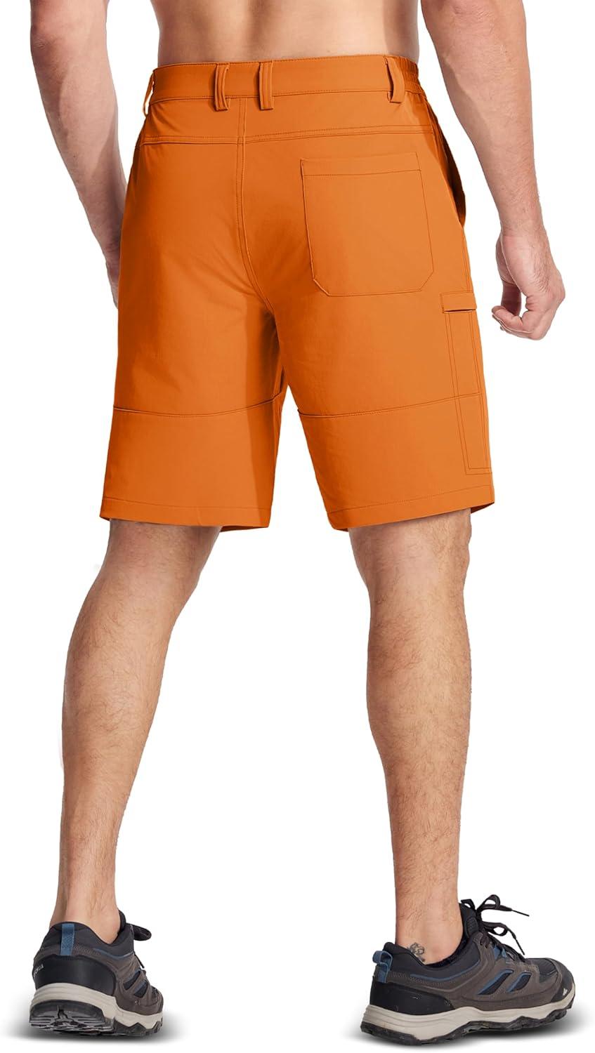 MAGCOMSEN Men’s Hiking Cargo Shorts Quick Dry Lightweight 9″ Golf Shorts Summer Casual Work Outdoor with 5 Zipper Pockets(Orange)