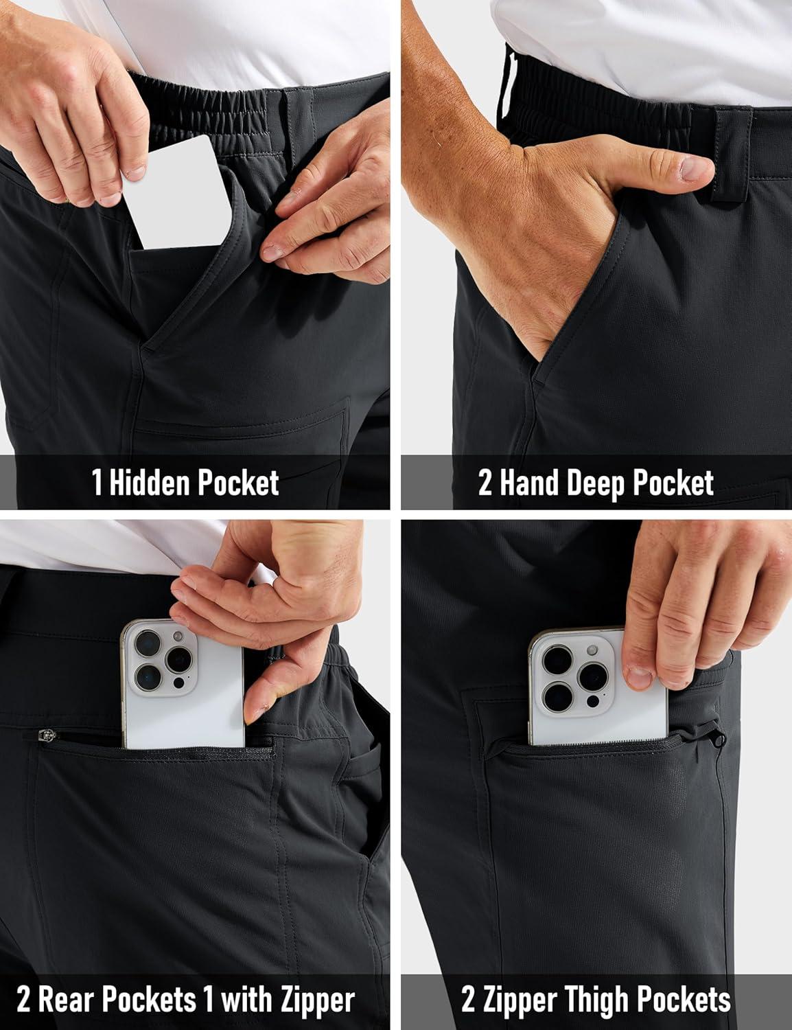 MAGCOMSEN Men’s Hiking Pants Lightweight Quick Dry 7 Pockets Travel Pants for Men Water Resistant Ripstop Work Fishing(Black)