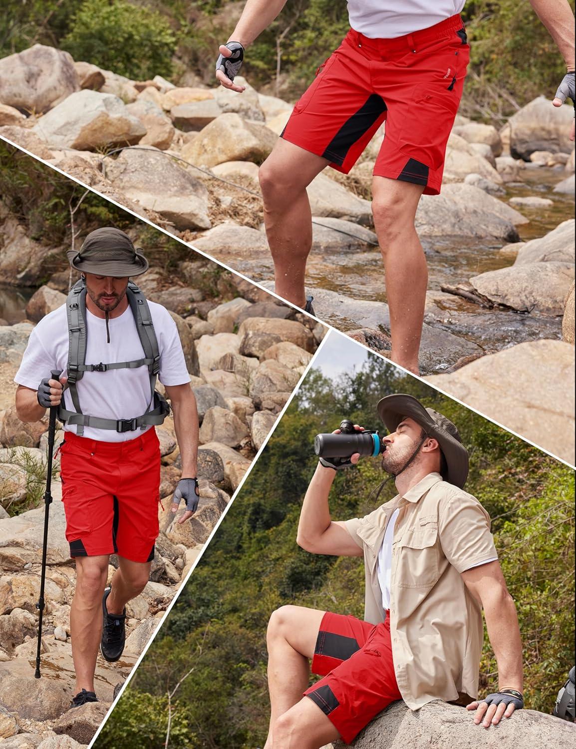 MAGCOMSEN Men’s Hiking Shorts 5 Pockets Ripstop, Quick Dry, Summer Athletic Shorts for Workout, Hiking, Cycling(Tomato Red)