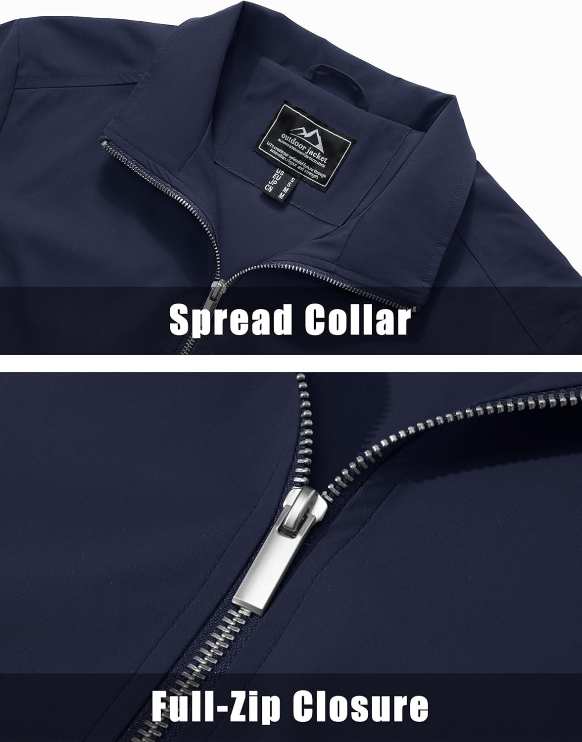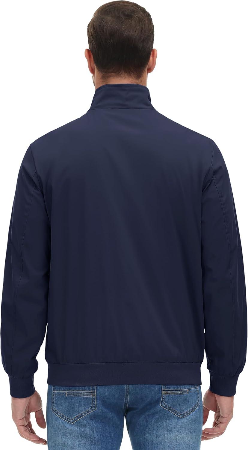 MAGCOMSEN Men’s Lightweight Bomber Jacket Windproof Water Resistant Zip Up Coat Stand Up Collar Windbreaker with 3 Pockets(Navy)