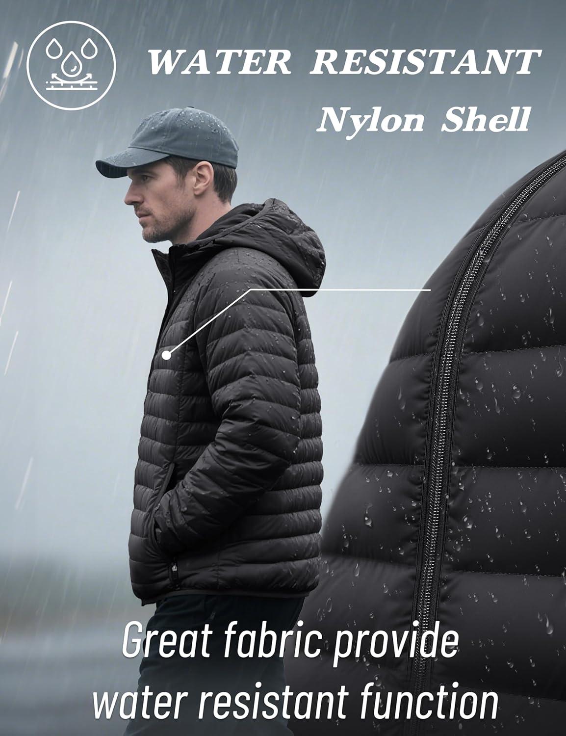 MAGCOMSEN Men’s Lightweight Puffer Jacket Hooded Warm Winter Coat Quilted Lined Water-Resistant Full Zip Bubble Jackets(Black)