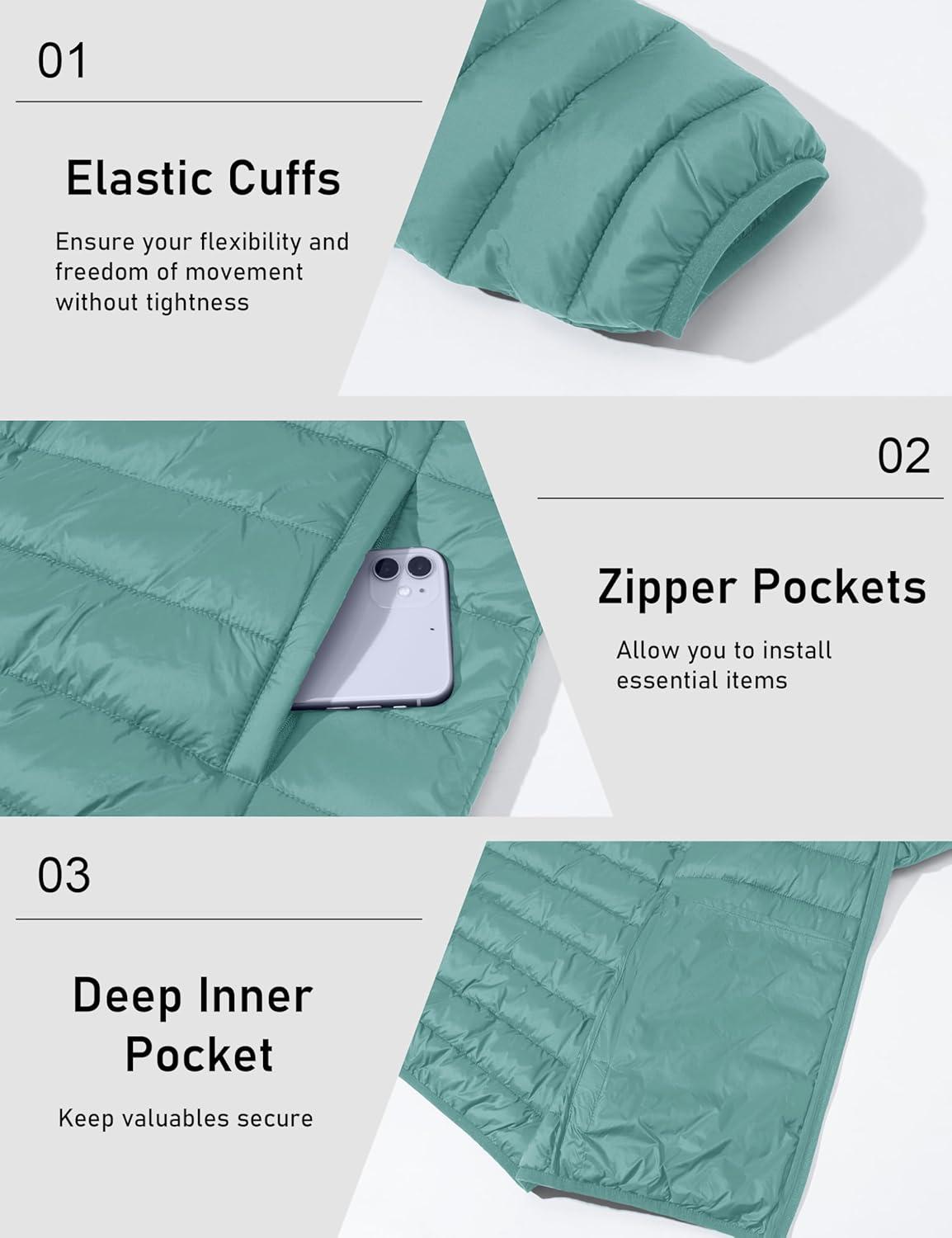 MAGCOMSEN Men’s Lightweight Puffer Jacket Hooded Warm Winter Coat Quilted Lined Water-Resistant Full Zip Bubble Jackets(Emerald Green)