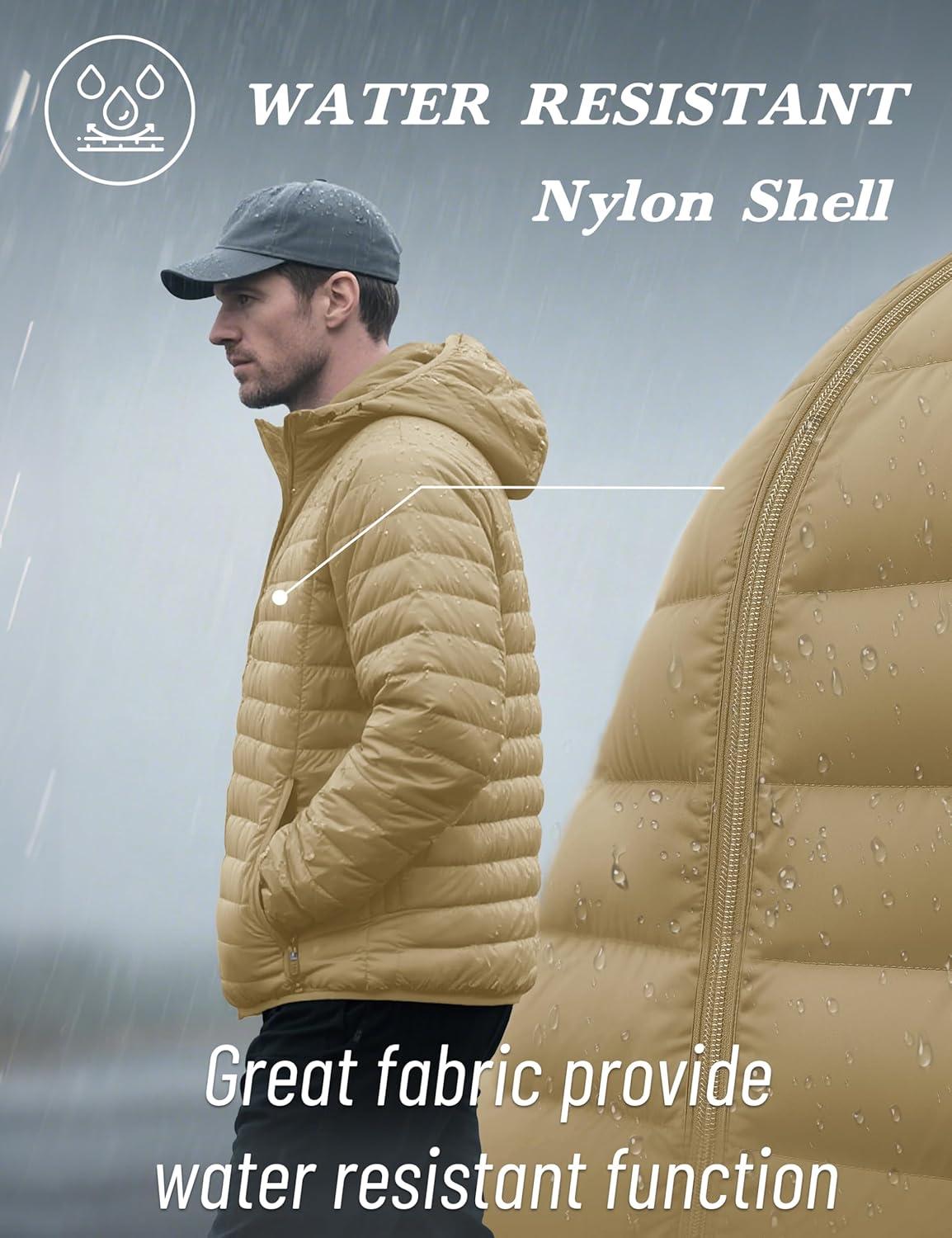 MAGCOMSEN Men’s Lightweight Puffer Jacket Hooded Warm Winter Coat Quilted Lined Water-Resistant Full Zip Bubble Jackets(Khaki)