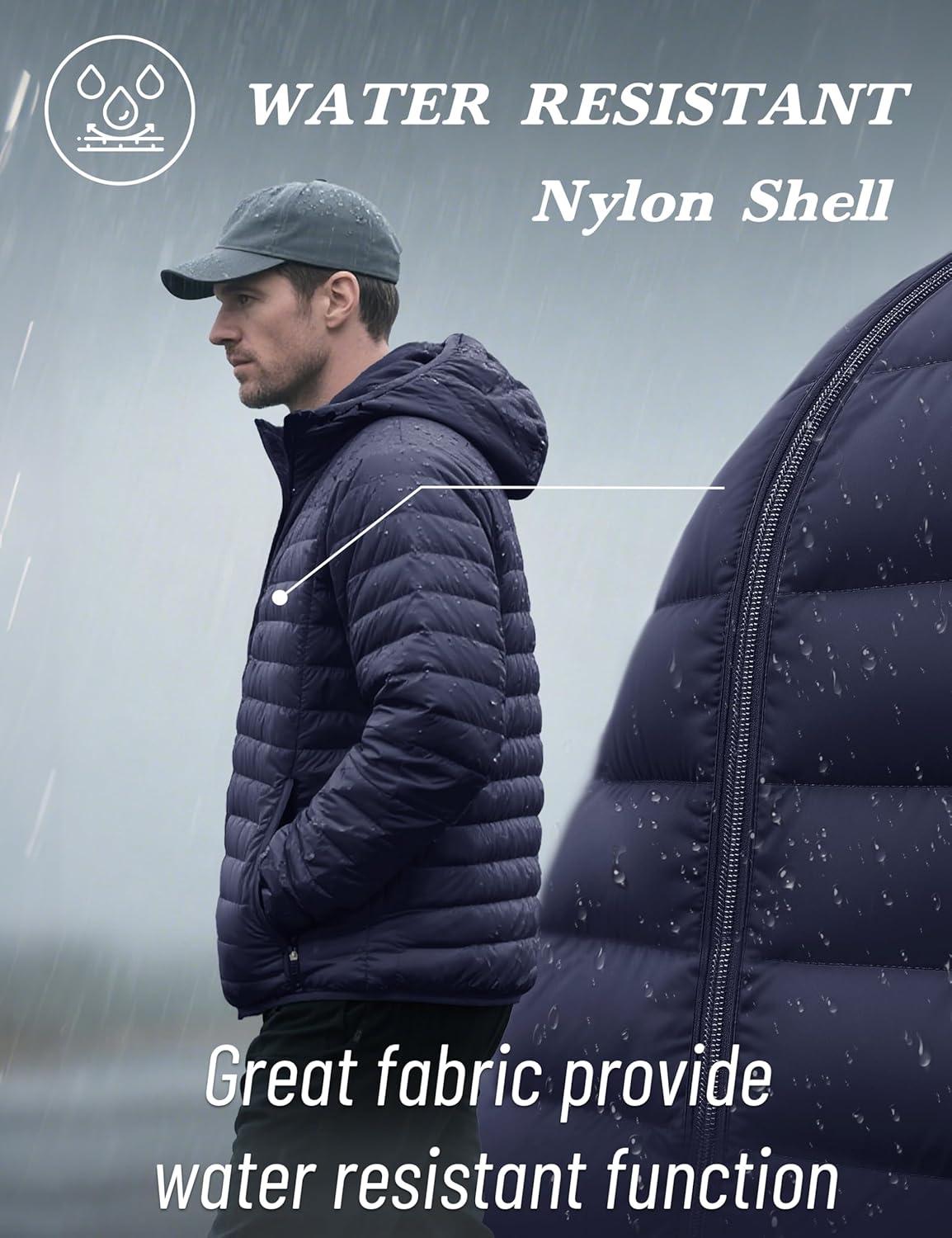 MAGCOMSEN Men’s Lightweight Puffer Jacket Hooded Warm Winter Coat Quilted Lined Water-Resistant Full Zip Bubble Jackets(Navy)