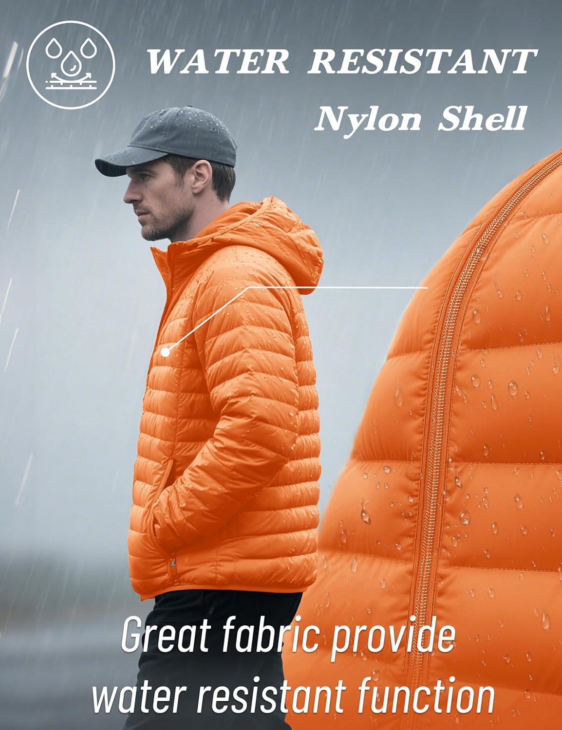 MAGCOMSEN Men’s Lightweight Puffer Jacket Hooded Warm Winter Coat Quilted Lined Water-Resistant Full Zip Bubble Jackets(Orange)