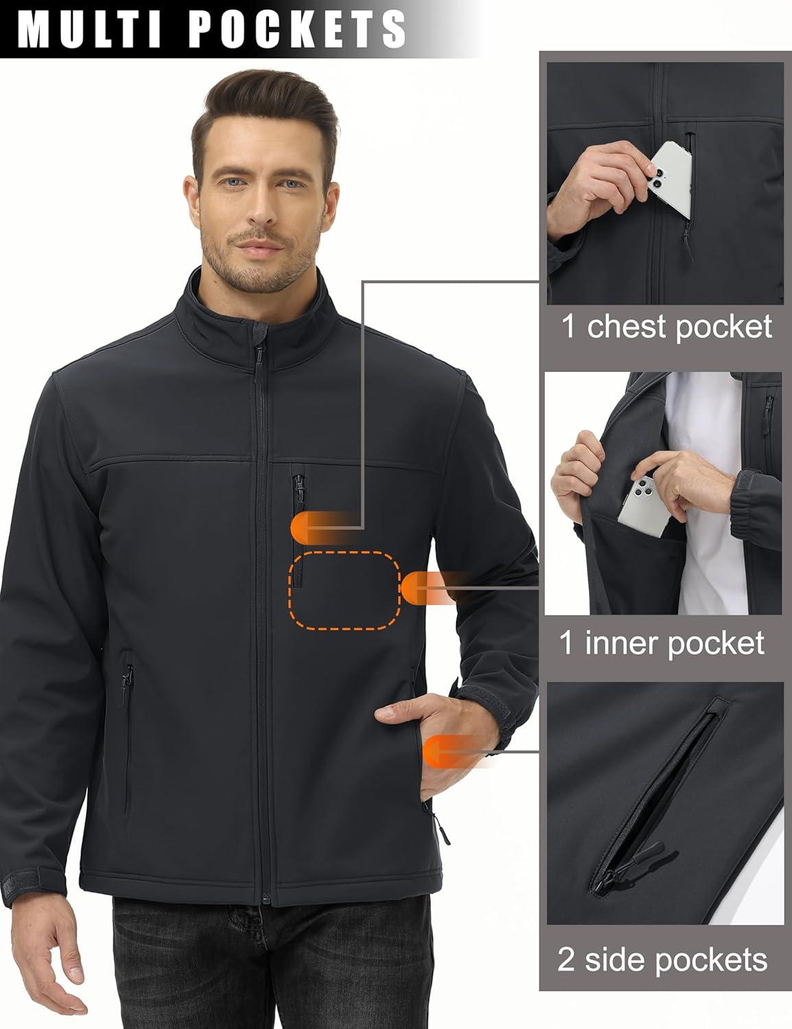 MAGCOMSEN Men’s Lightweight Softshell Jacket Fleece Lined Tactical Waterproof Windbreaker Rain Jacket for Outdoor Hiking(Black)