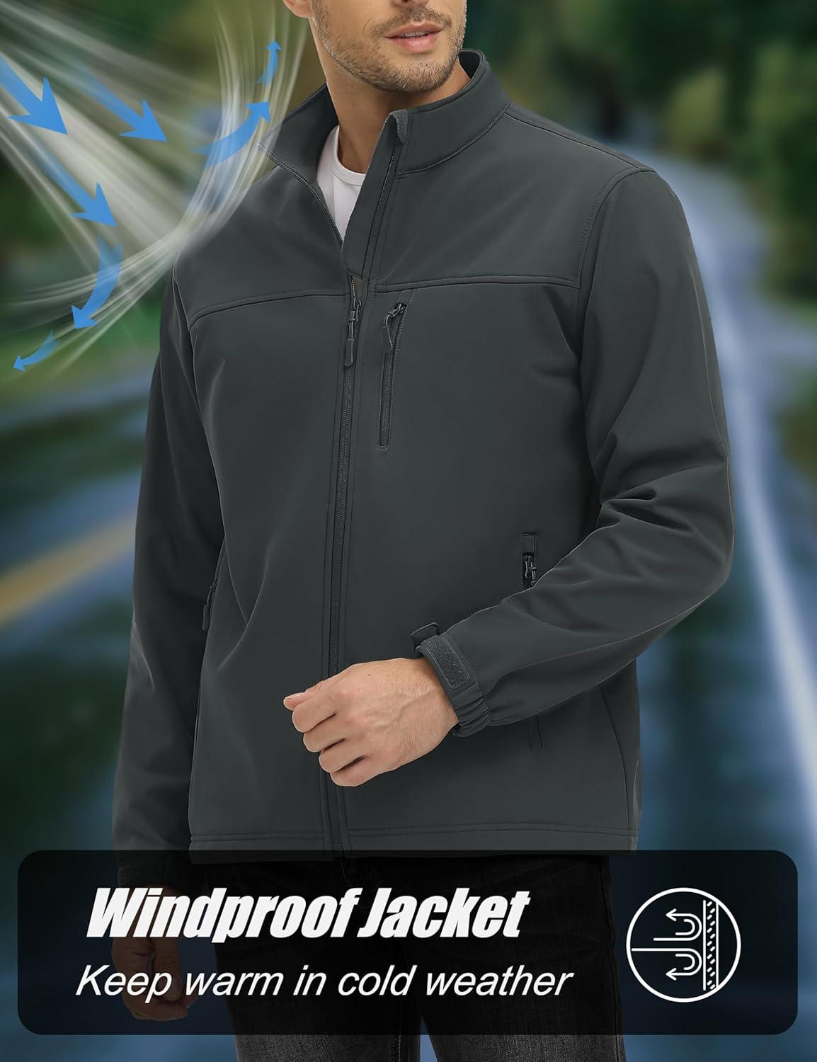 MAGCOMSEN Men’s Lightweight Softshell Jacket Fleece Lined Tactical Waterproof Windbreaker Rain Jacket for Outdoor Hiking(Dark Grey)