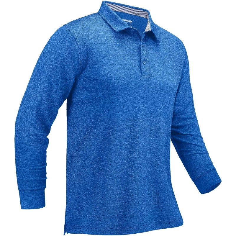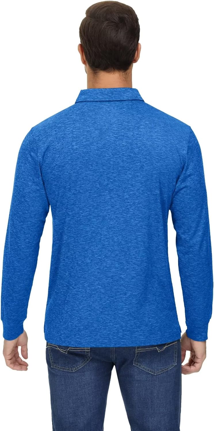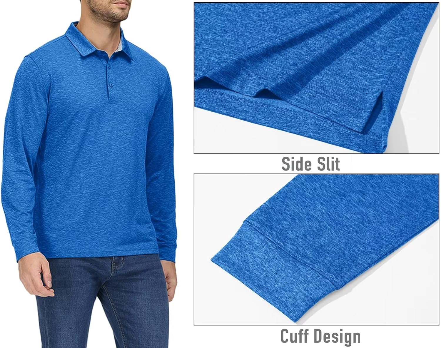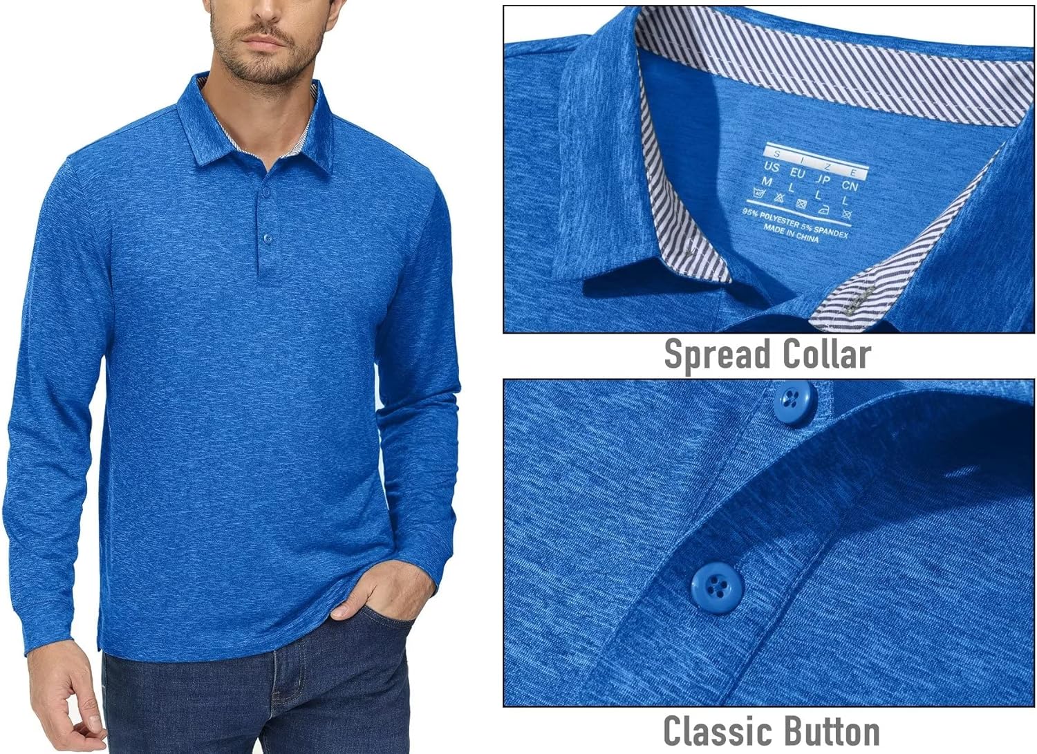 MAGCOMSEN Men’s Long Sleeve Golf Polo Shirts Collared Casual Athletic Quick Dry Shirts(Sea Blue)