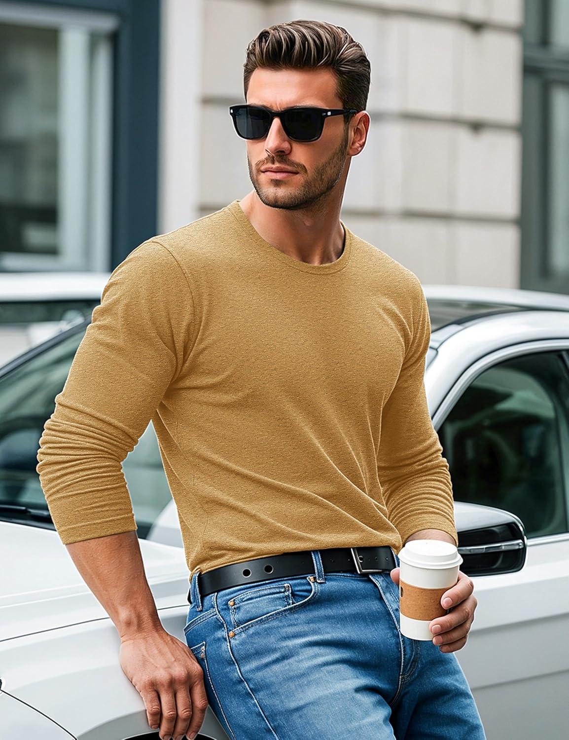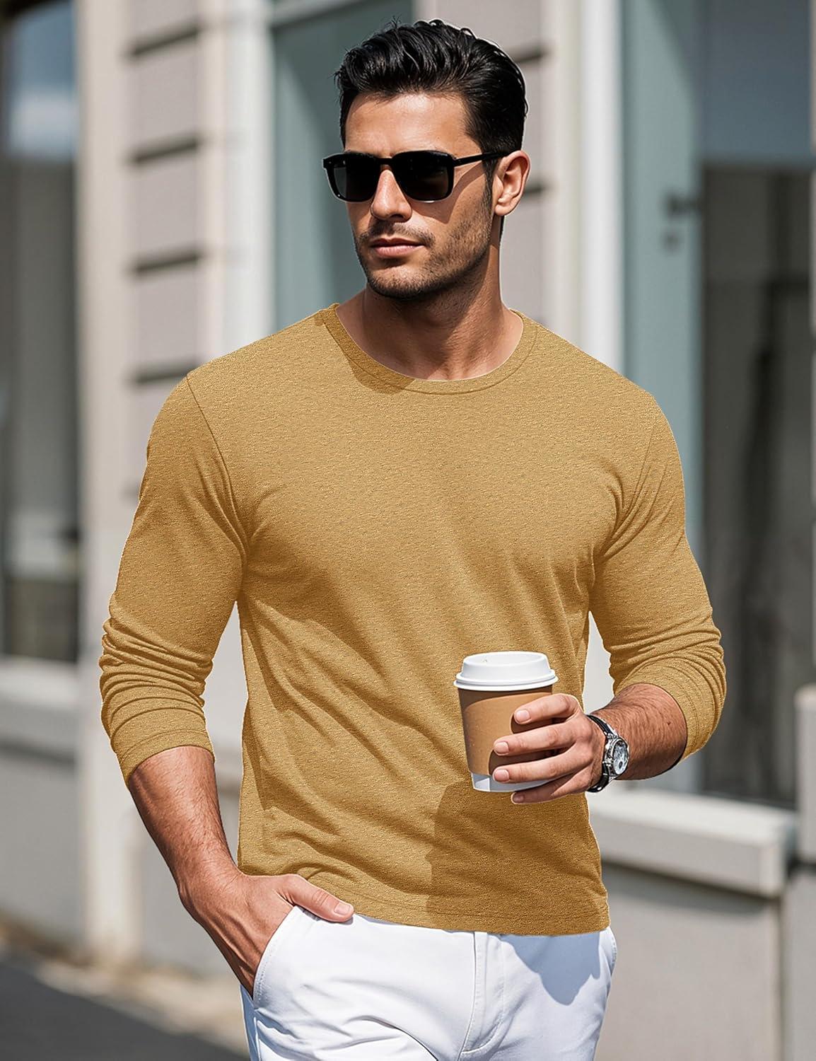 Get the MAGCOMSEN Men’s Long Sleeve Shirts Cotton Crew Neck T Shirt Solid Casual Shirt Lightweight Work Tee Shirts(Earthy Yellow) you want at a discounted price during our markdown sale event.